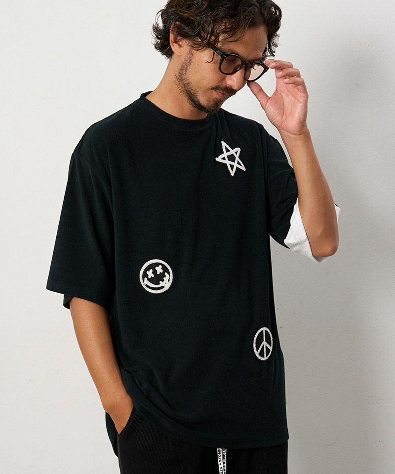 STUD MUFFIN 20%OFF【STUD MUFFIN(スタッドマフィン)】TCパイル-バイカラー切替 サガラワッペンパッチワークSS Tシャツ(514-02792)