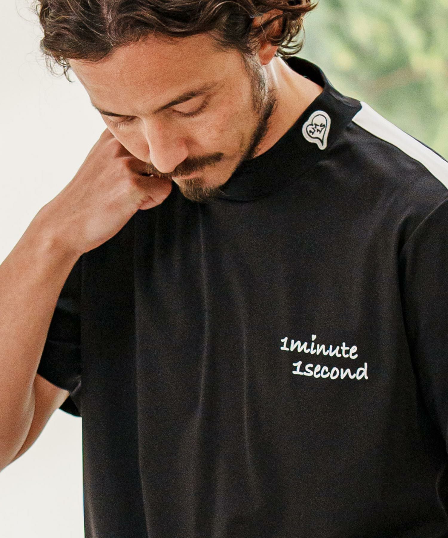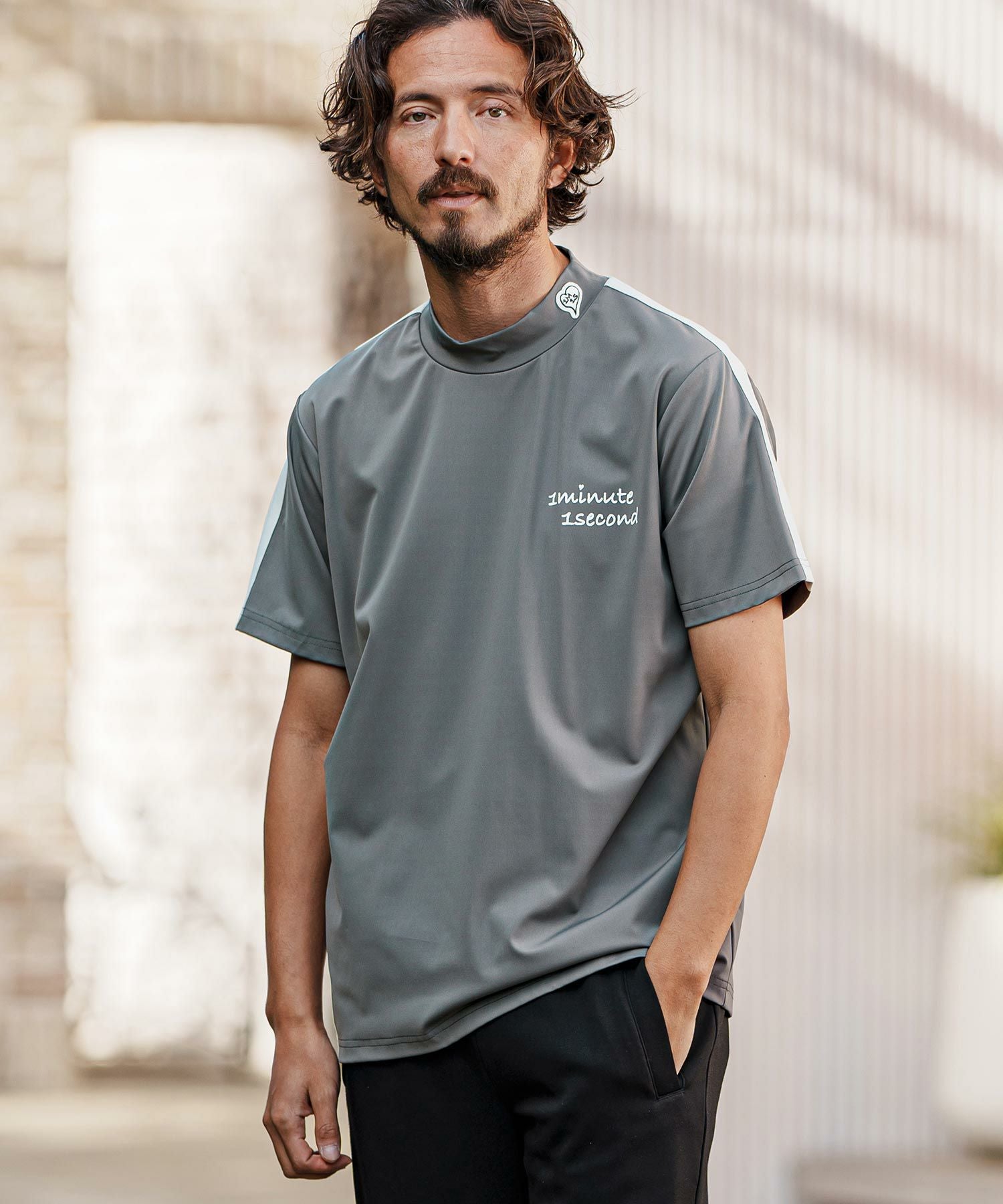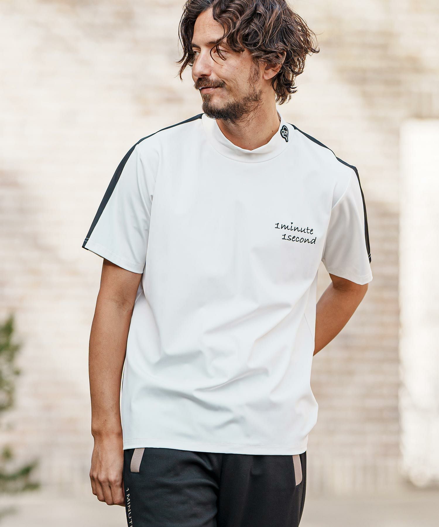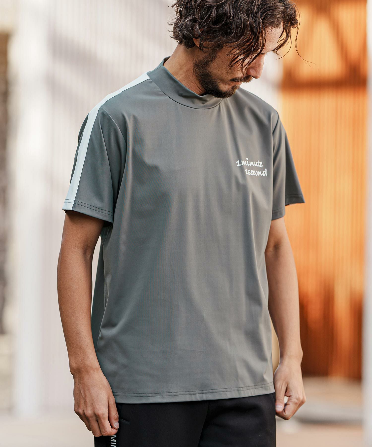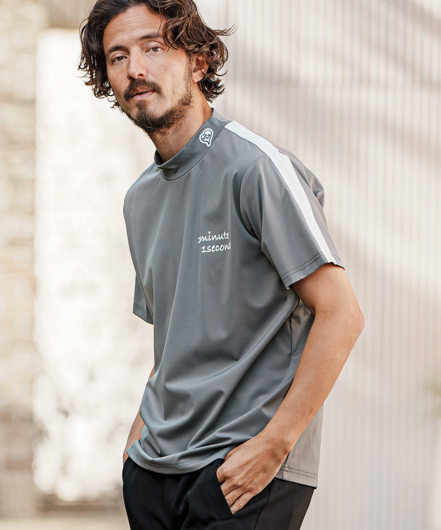 1minute 1second 【1minute 1second(ワンミニットワンセカンド)】color scheme line mock neck short sleeve cut&sew モックネック半袖シャツ(1M25H150)
