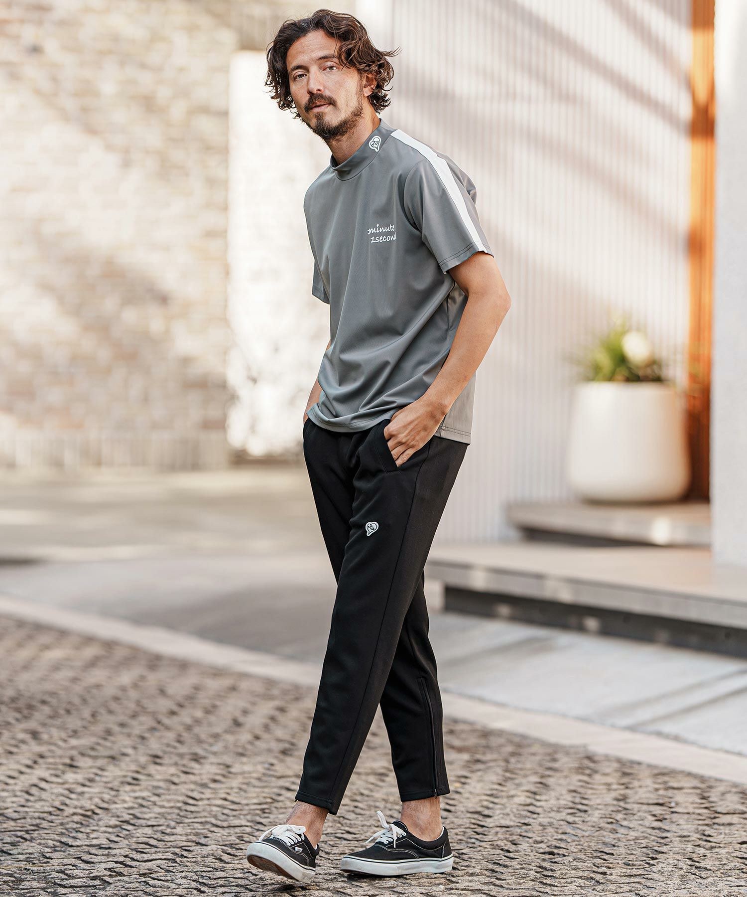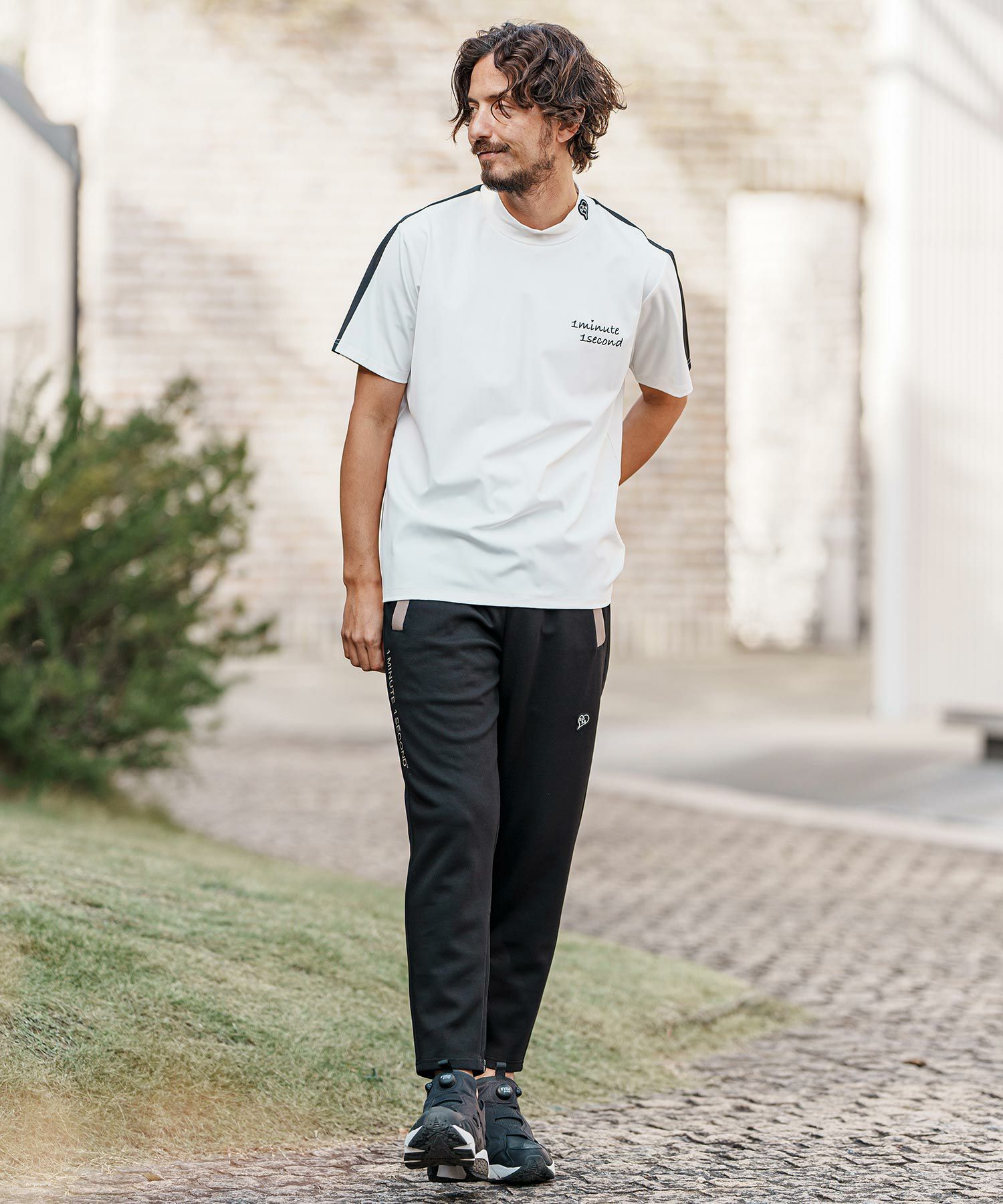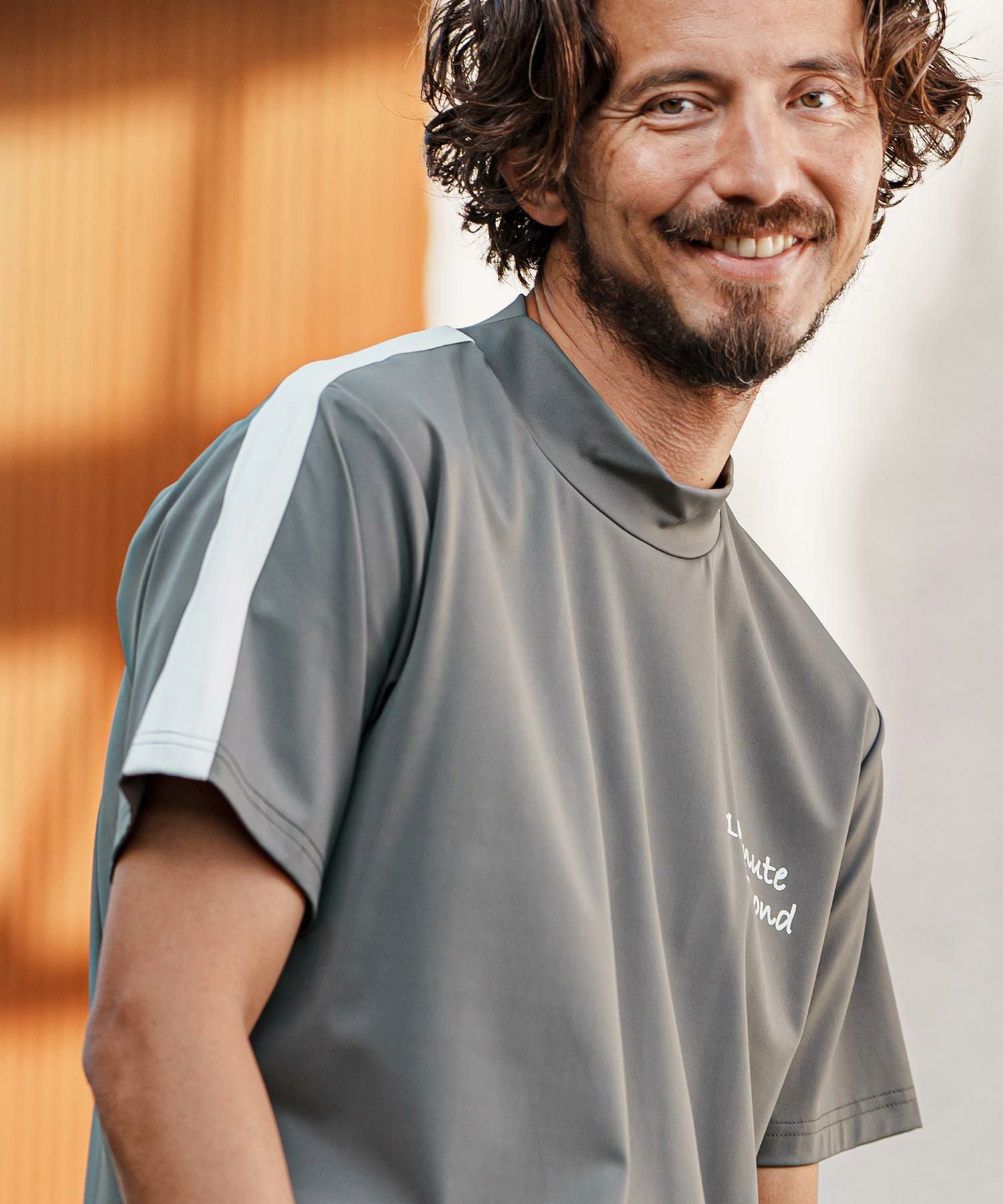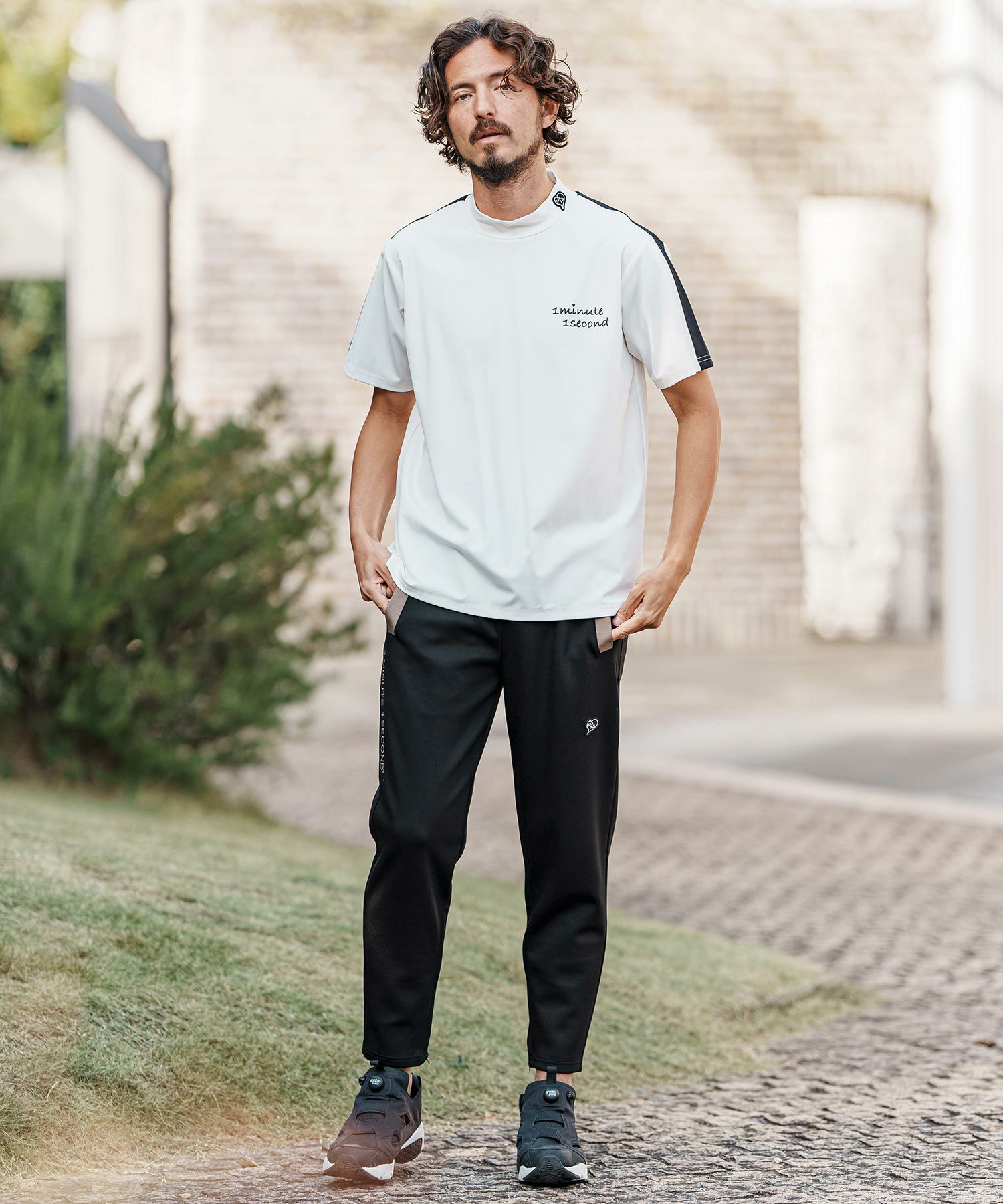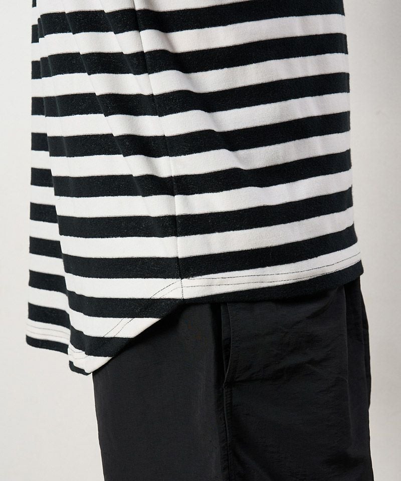 1minute 1second 【1minute 1second(ワンミニットワンセカンド)】color scheme line mock neck short sleeve cut&sew モックネック半袖シャツ(1M25H150)
