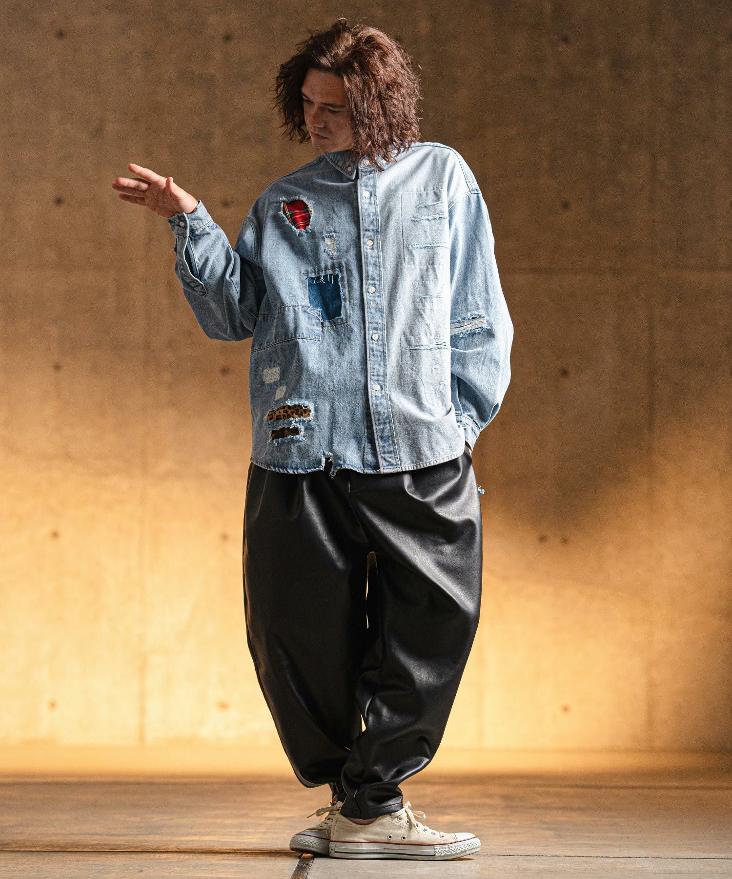 GLIMCLAP 【GLIMCLAP(グリムクラップ)】Synthetic leather balloon silhouette pants バルーンパンツ(18-007-gls-cf)