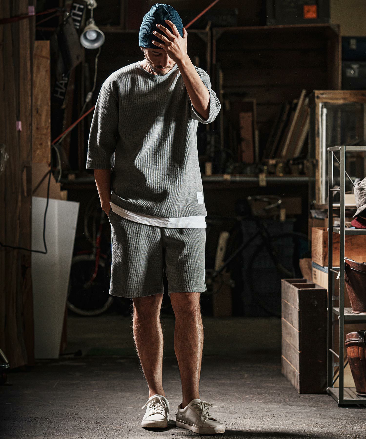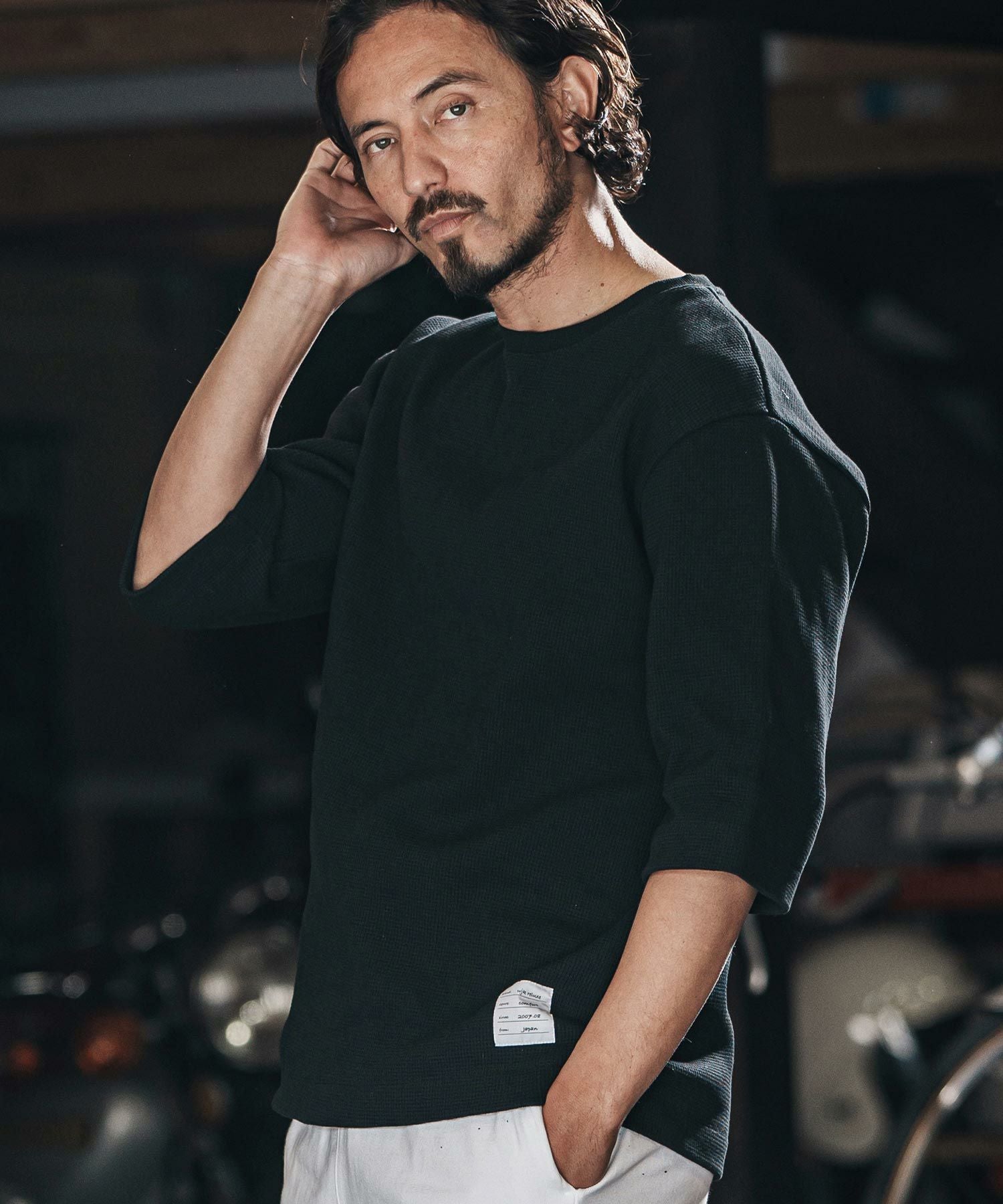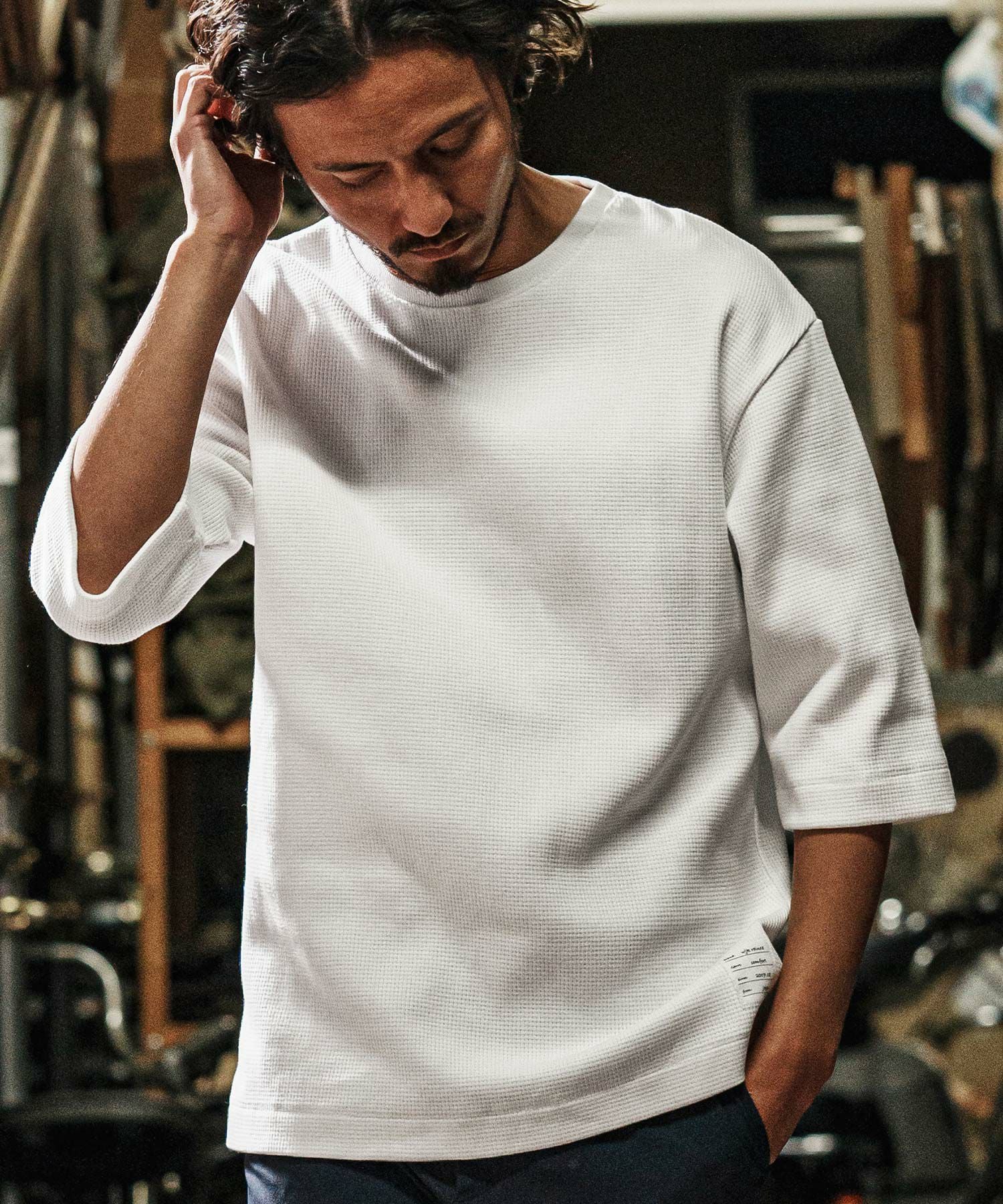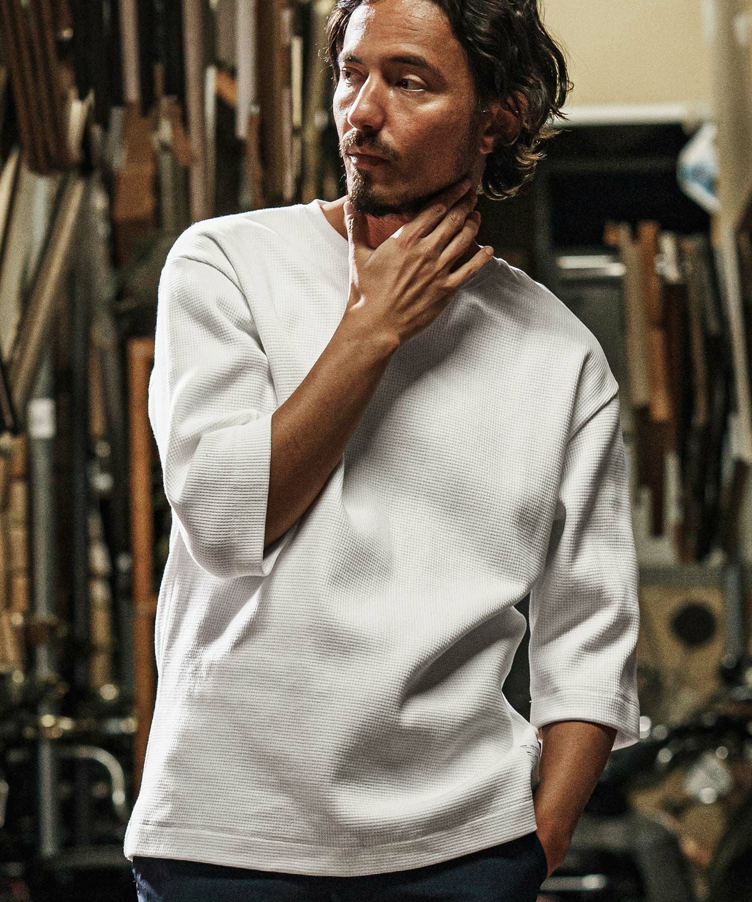 wjk reluxe 【wjk reluxe】tight heavy waffle 3-4 sleeve cut sew 七分袖カットソー(WR25S-19)