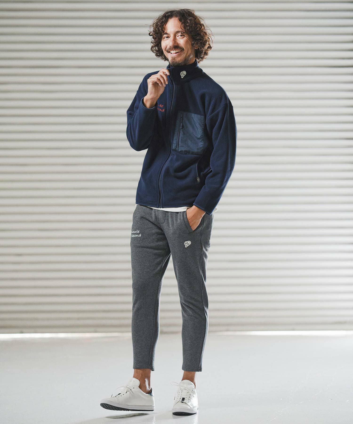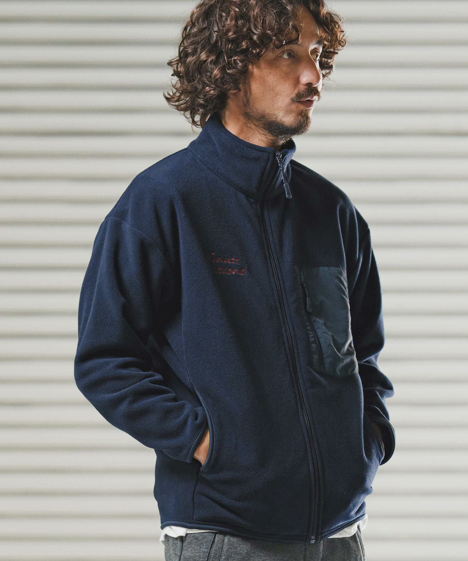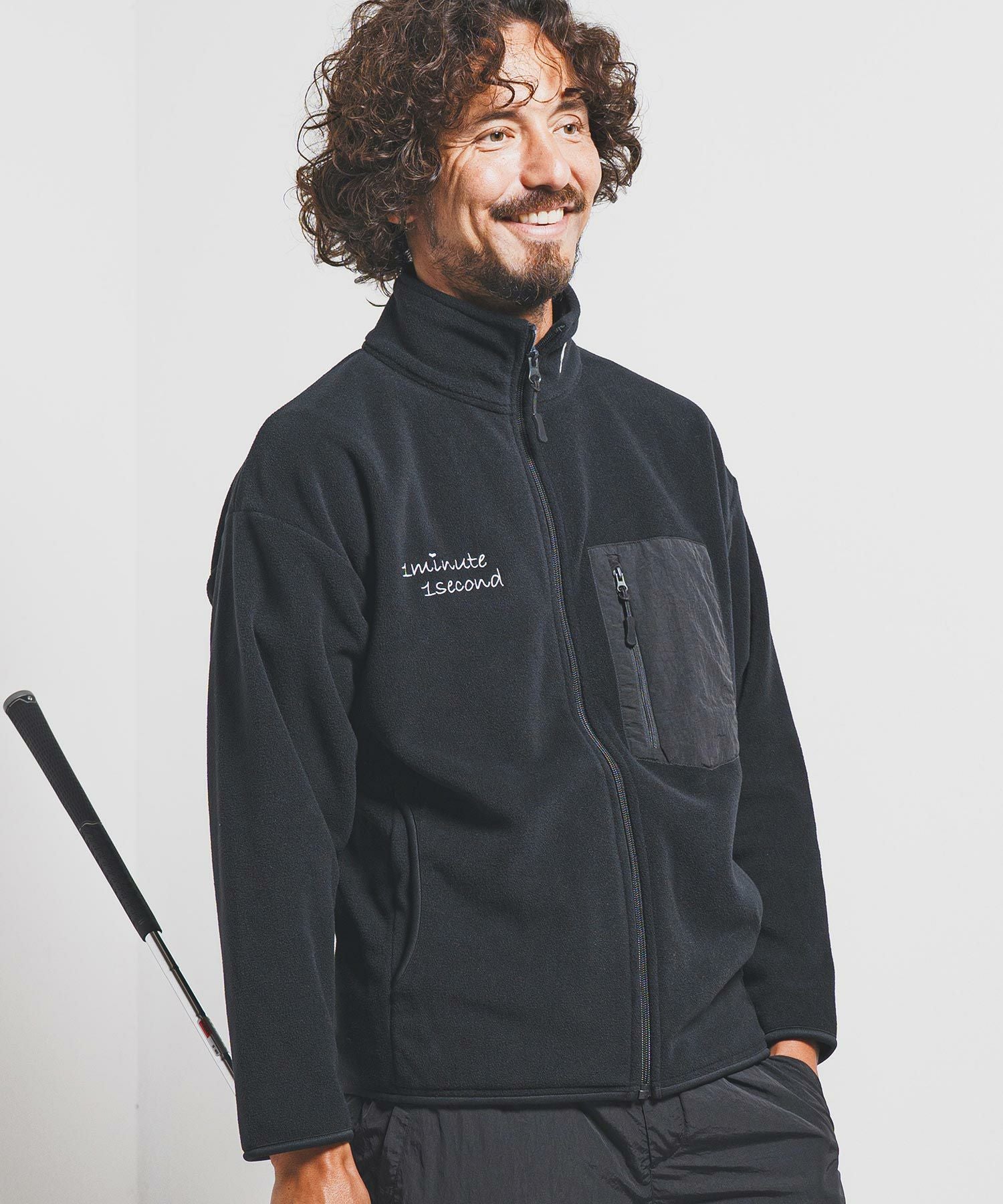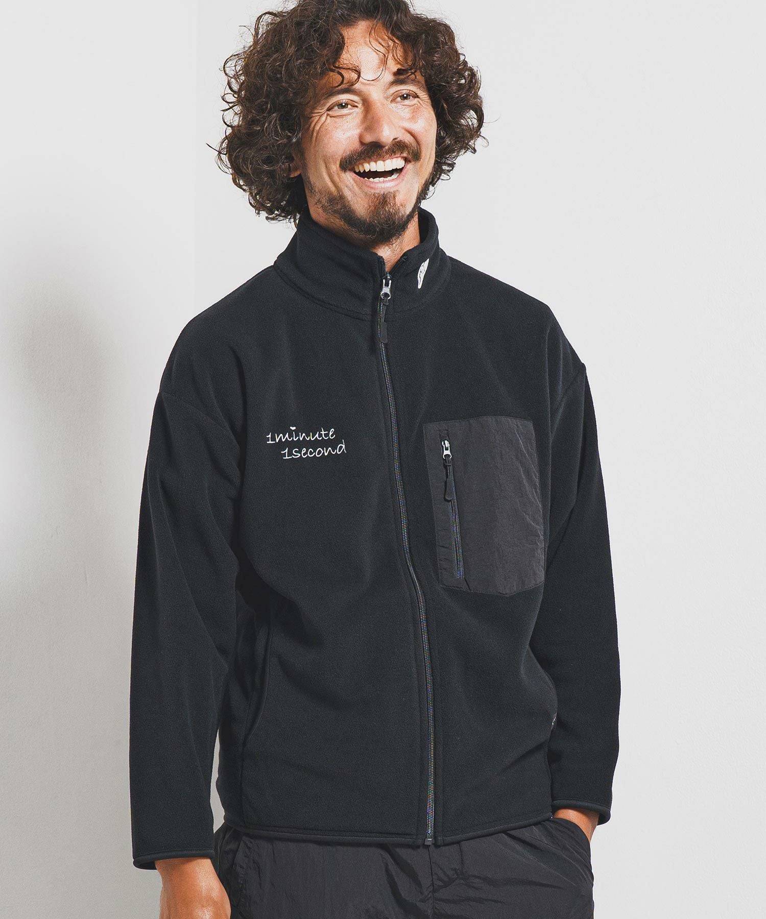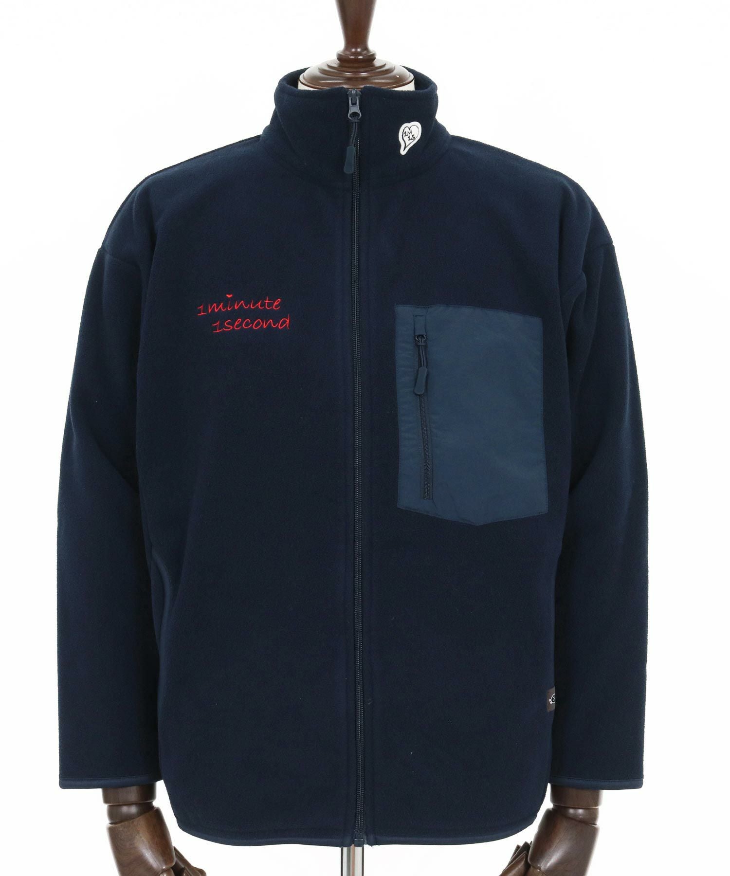 1minute 1second 【1minute 1second(ワンミニットワンセカンド)】microfleece zip jacket with 1M1S chenille embroidered patch フリースジャケット(1M25F280)
