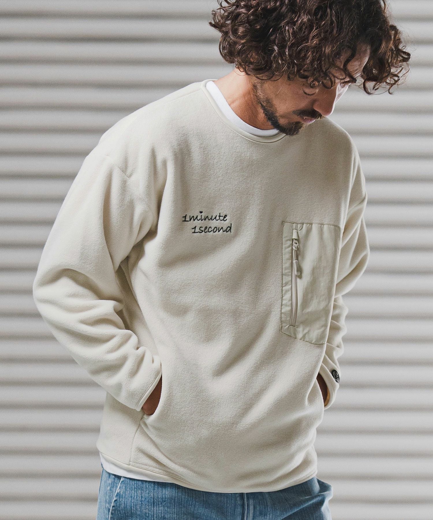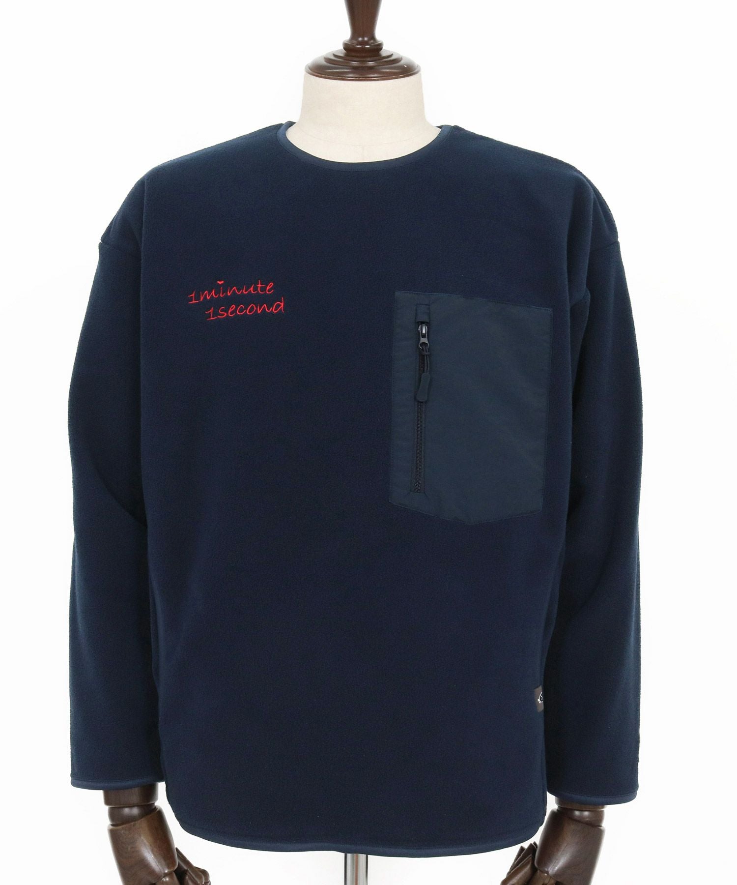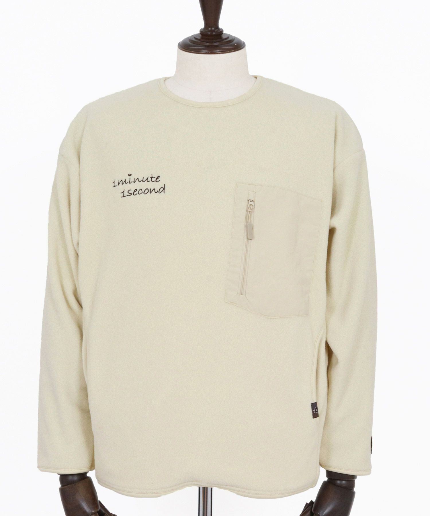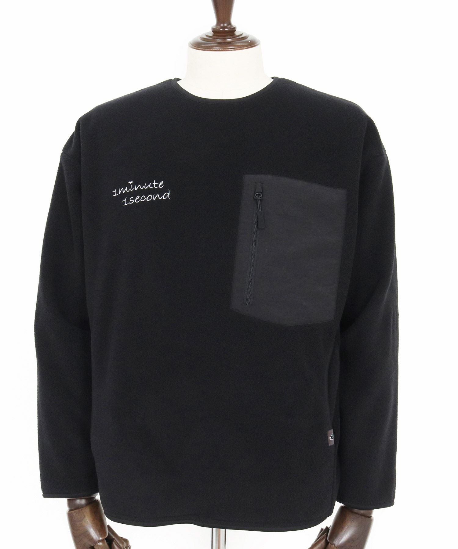 1minute 1second 【1minute 1second(ワンミニットワンセカンド)】microfleece sweatshirt with 1M1S chenille embroidered patch フリーストレーナー(1M25F290)