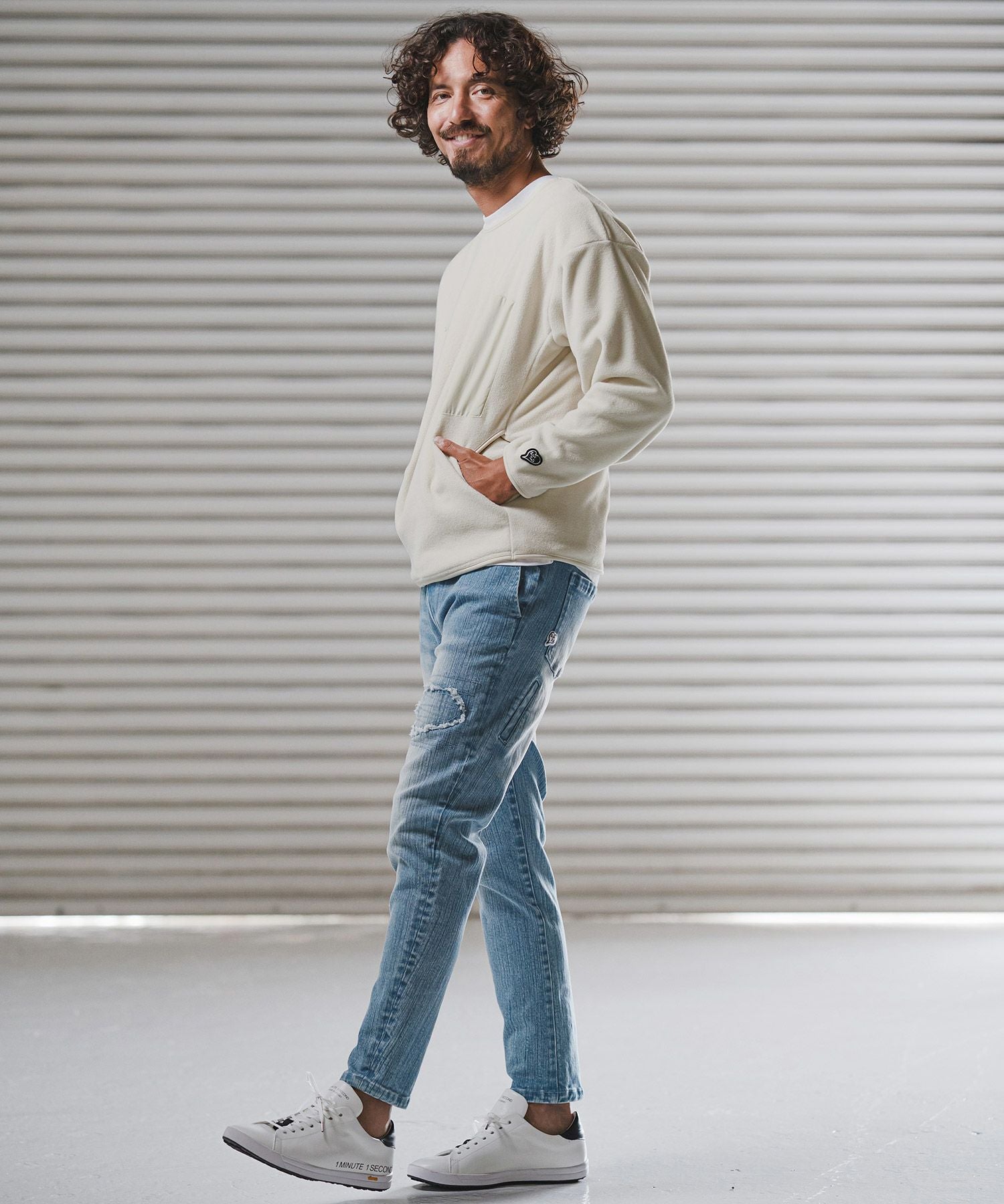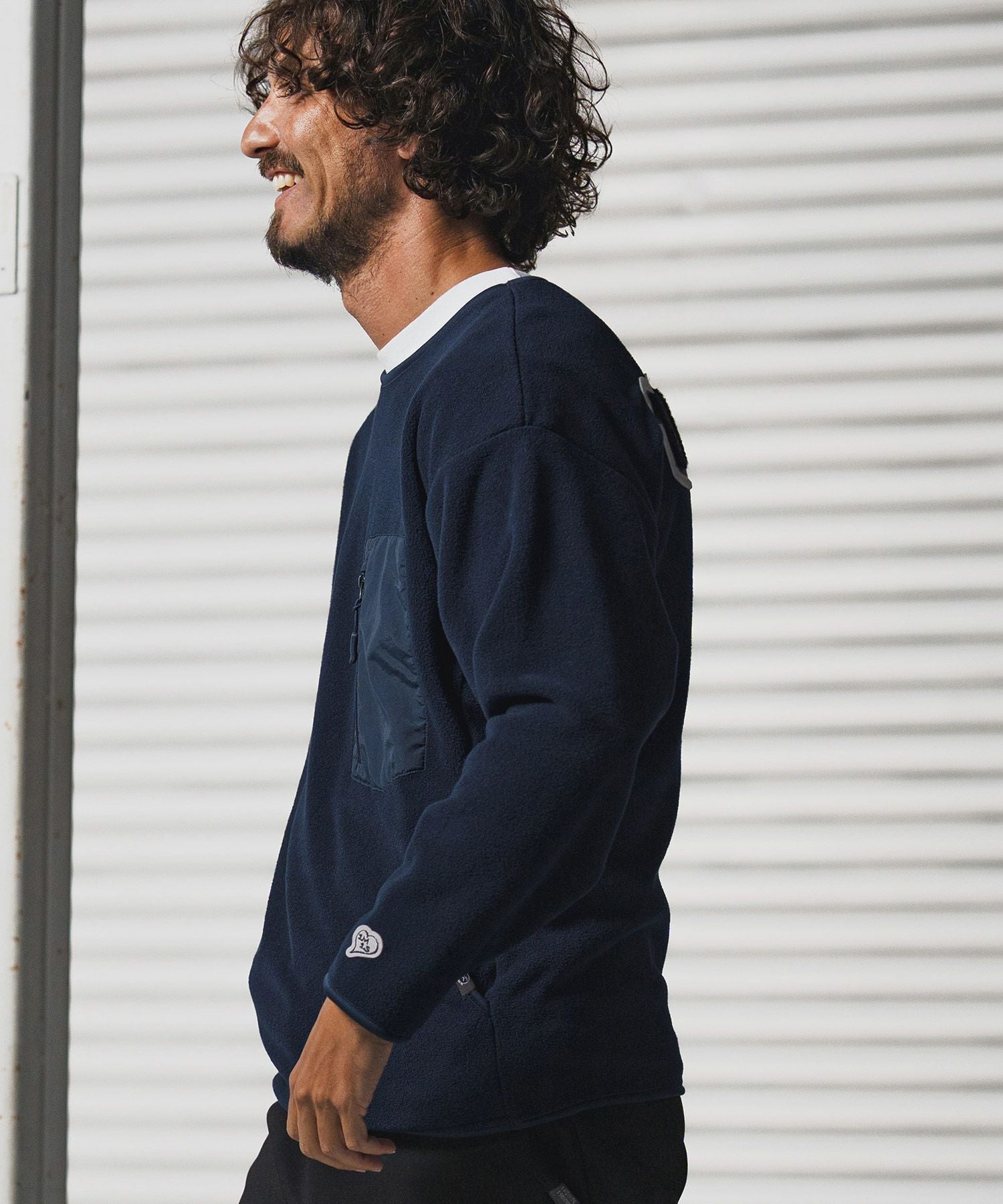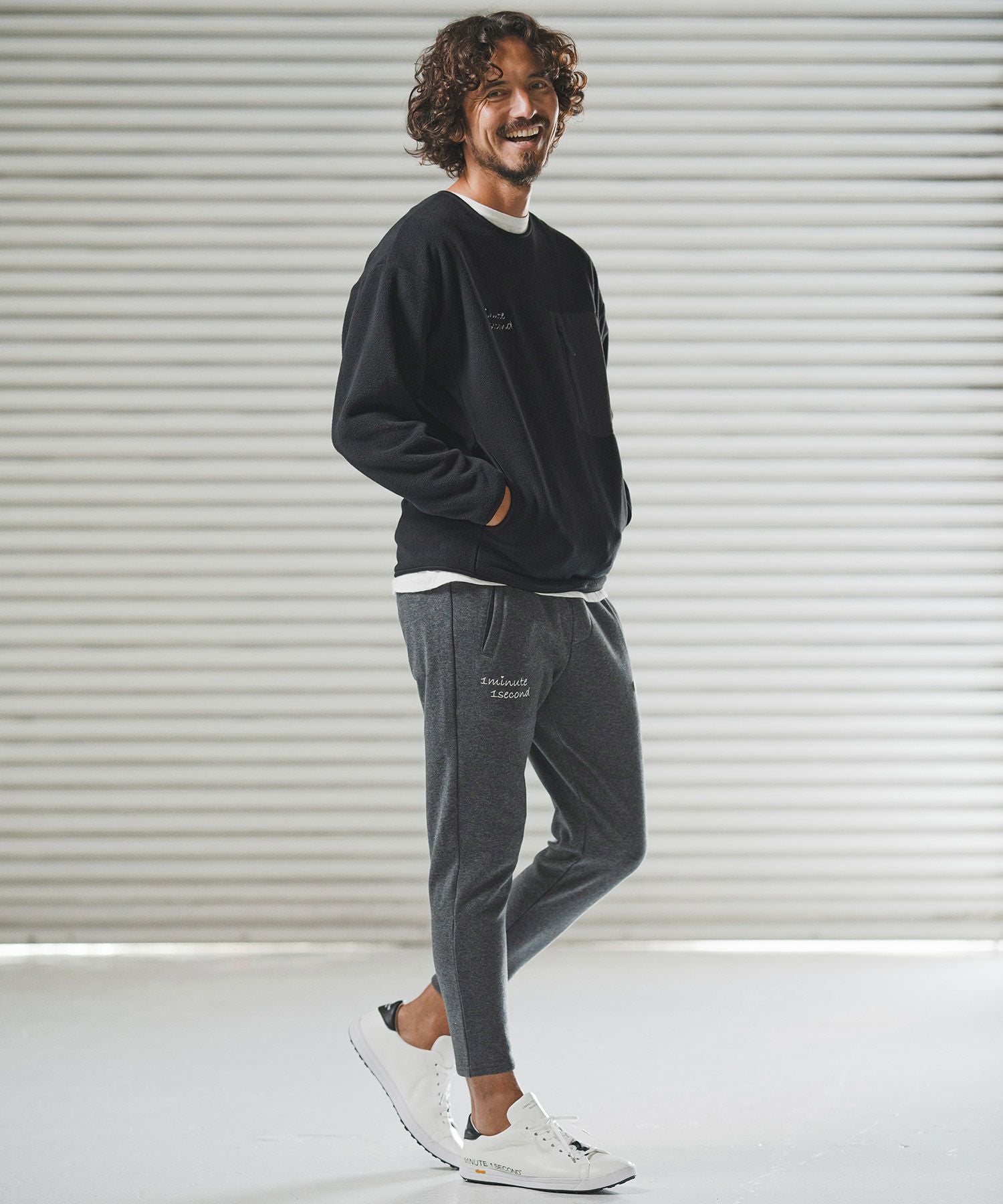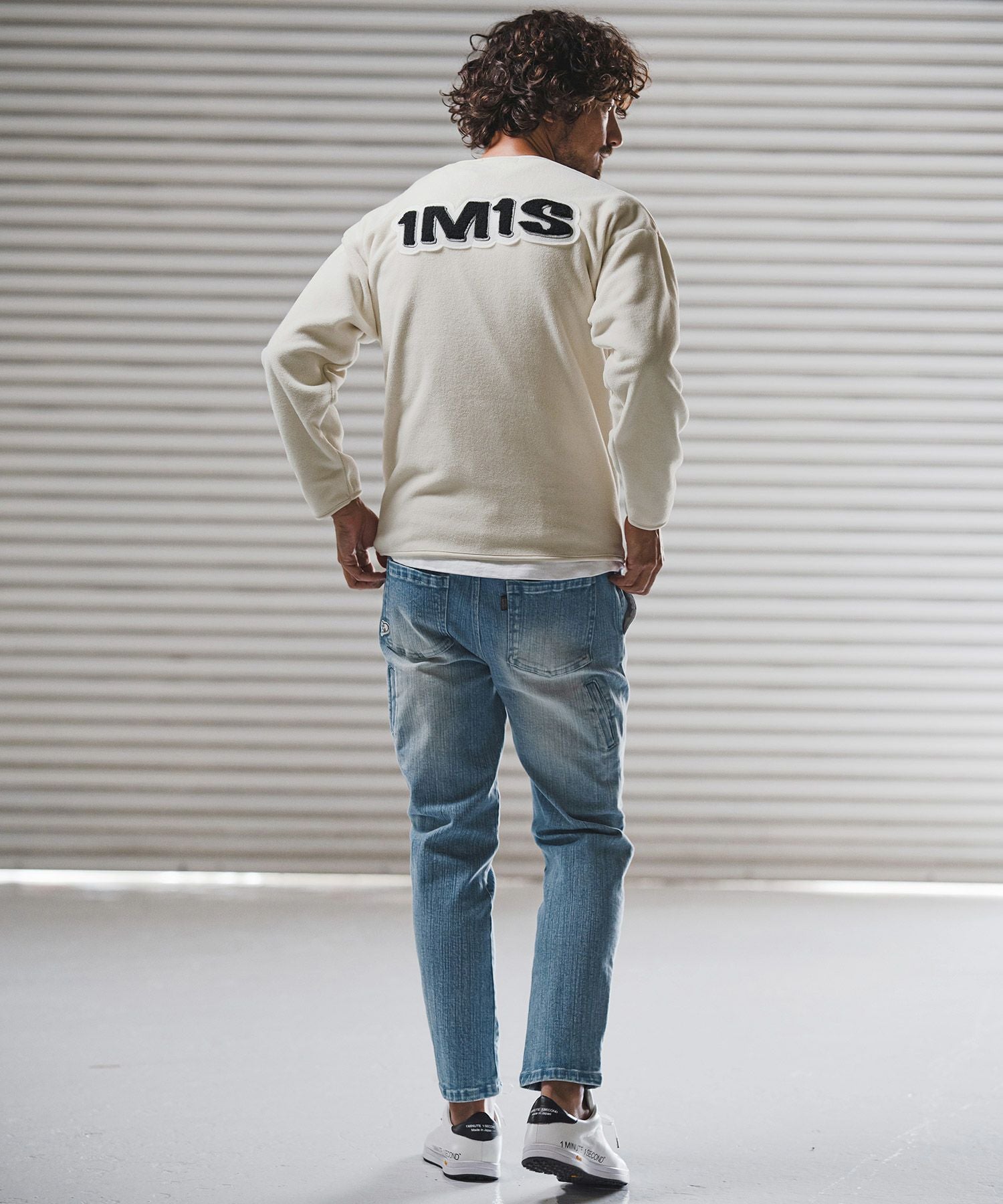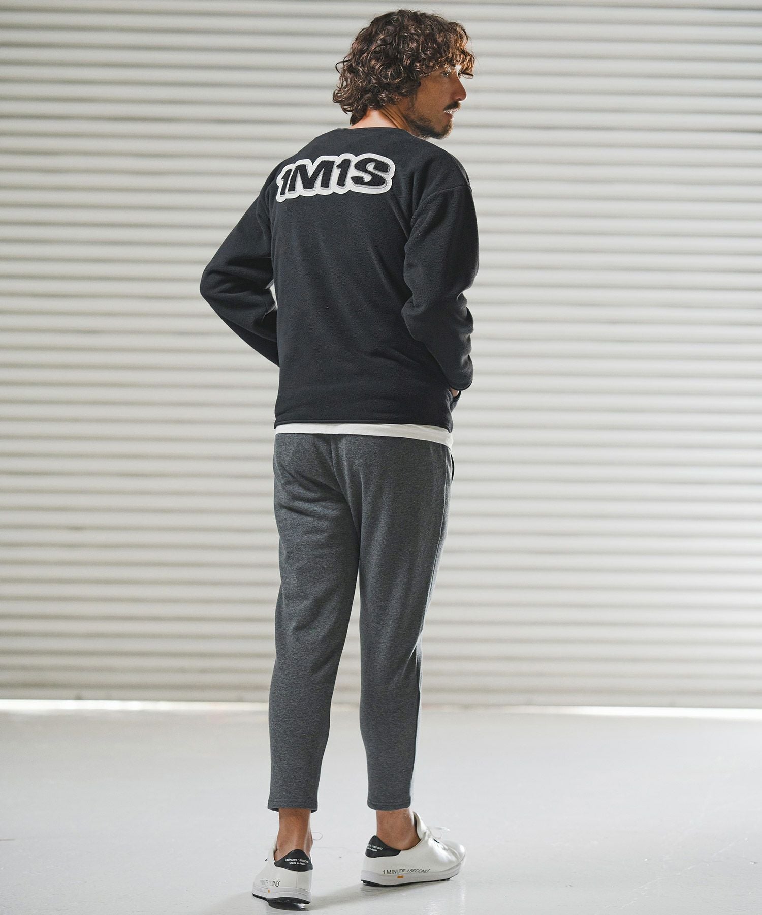 1minute 1second 【1minute 1second(ワンミニットワンセカンド)】microfleece sweatshirt with 1M1S chenille embroidered patch フリーストレーナー(1M25F290)