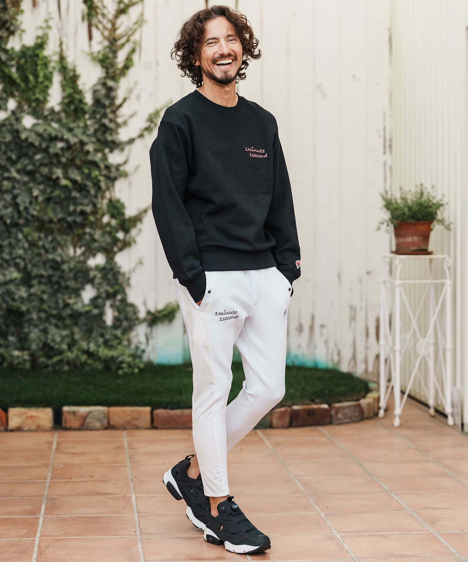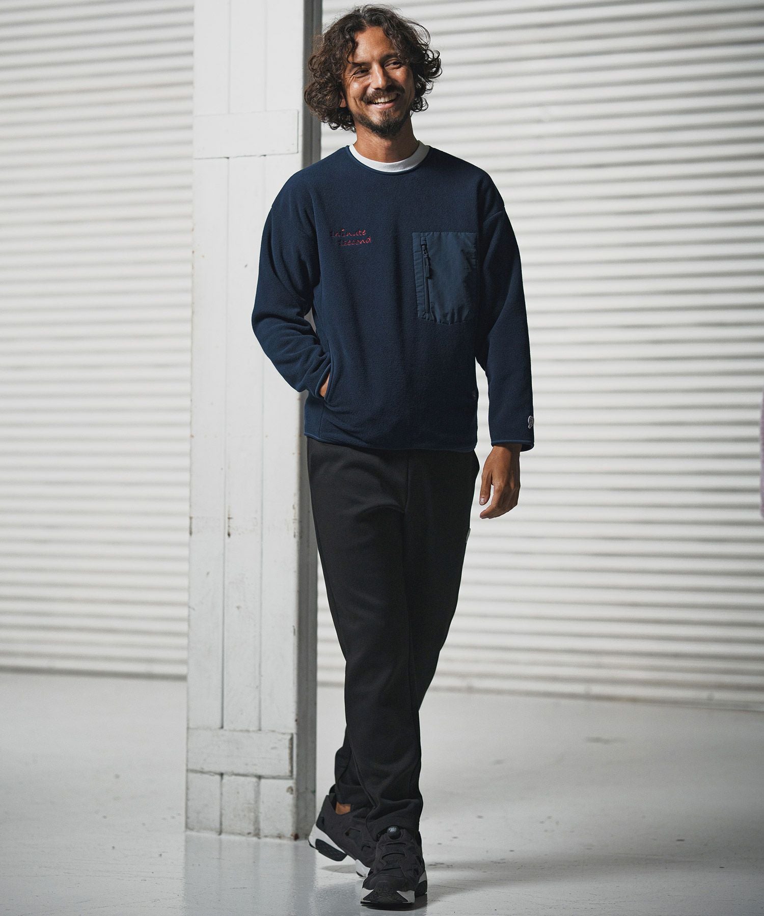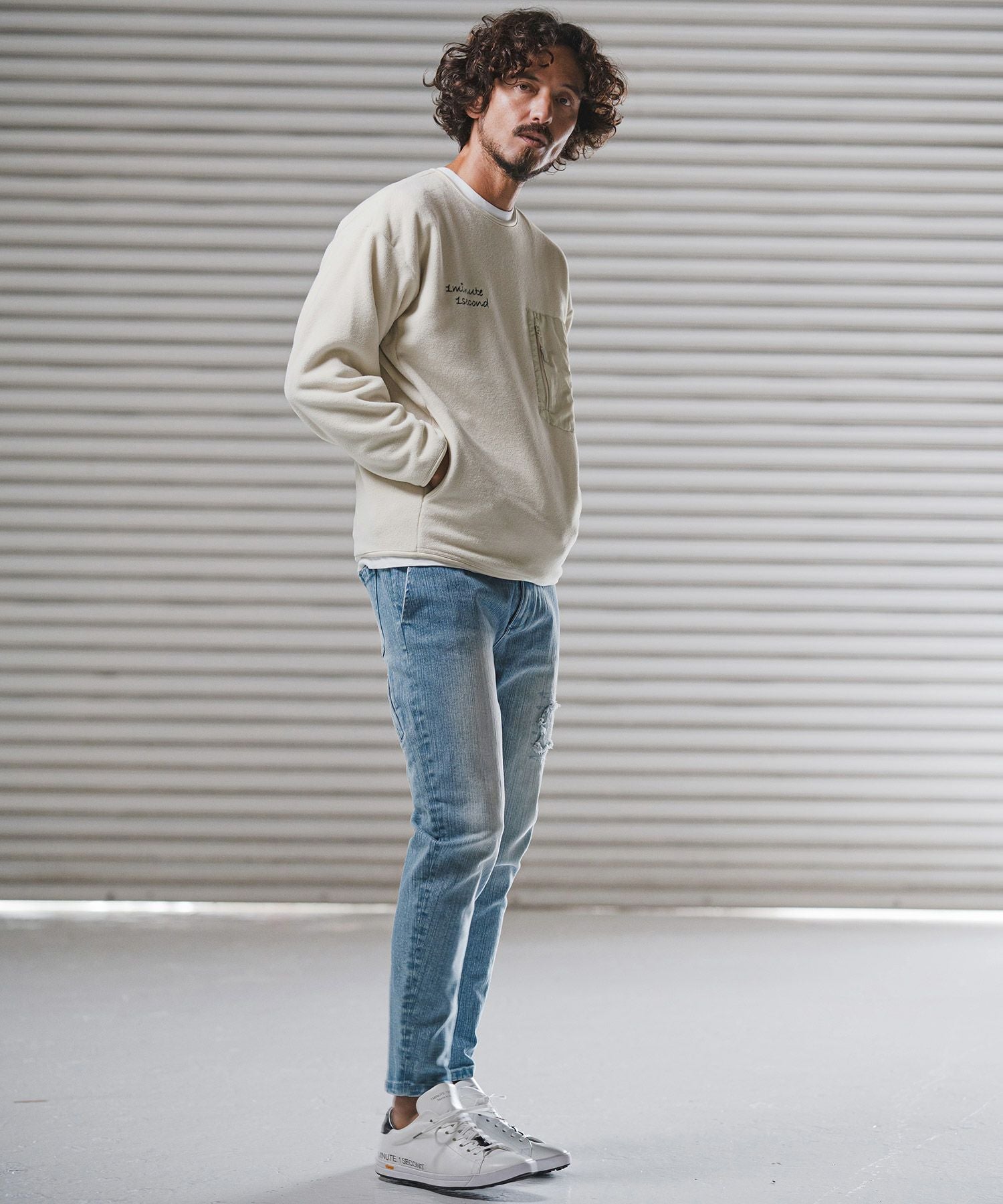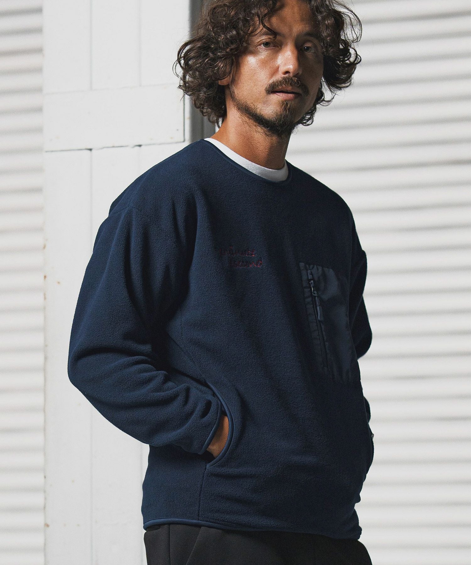 1minute 1second 【1minute 1second(ワンミニットワンセカンド)】microfleece sweatshirt with 1M1S chenille embroidered patch フリーストレーナー(1M25F290)