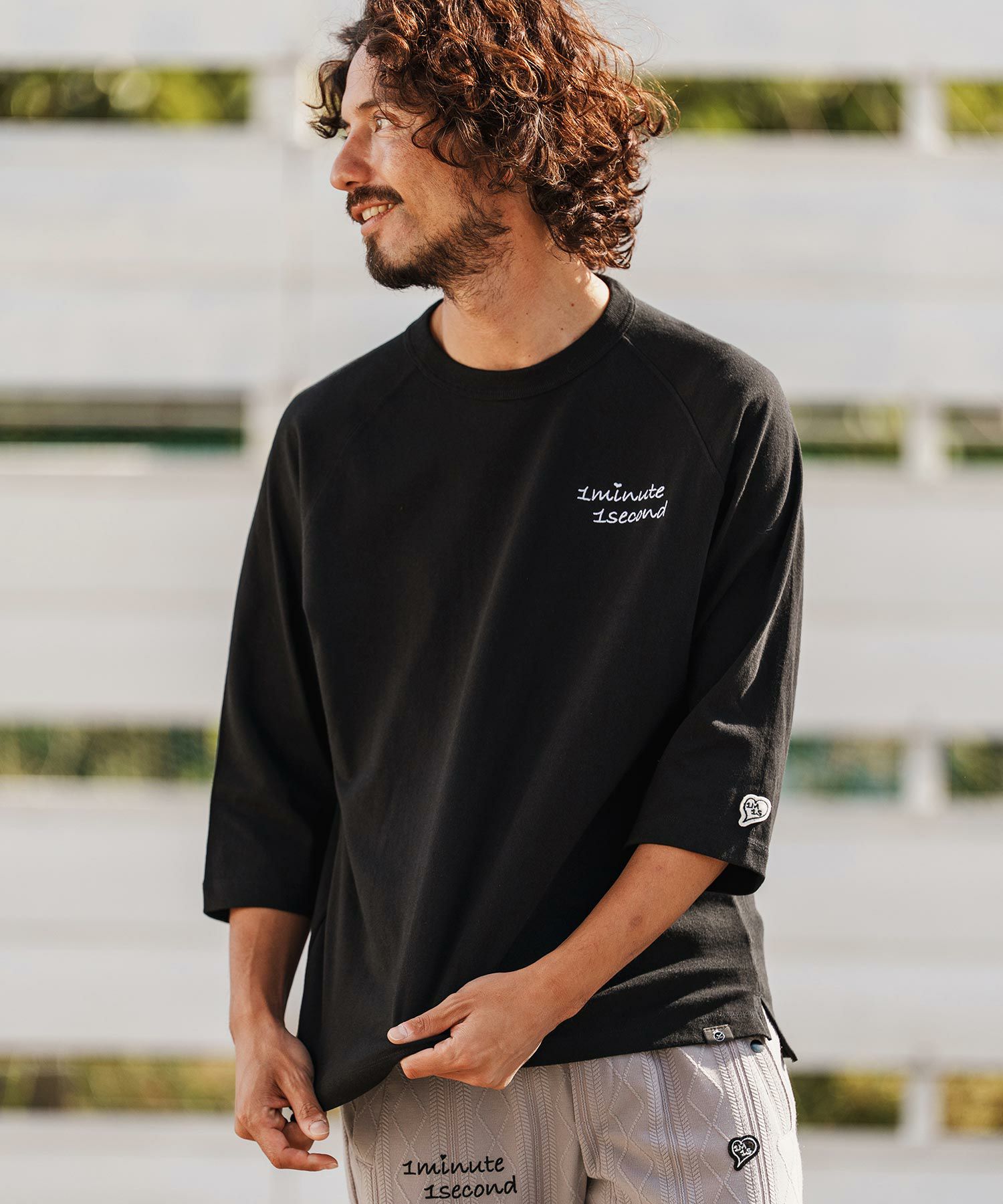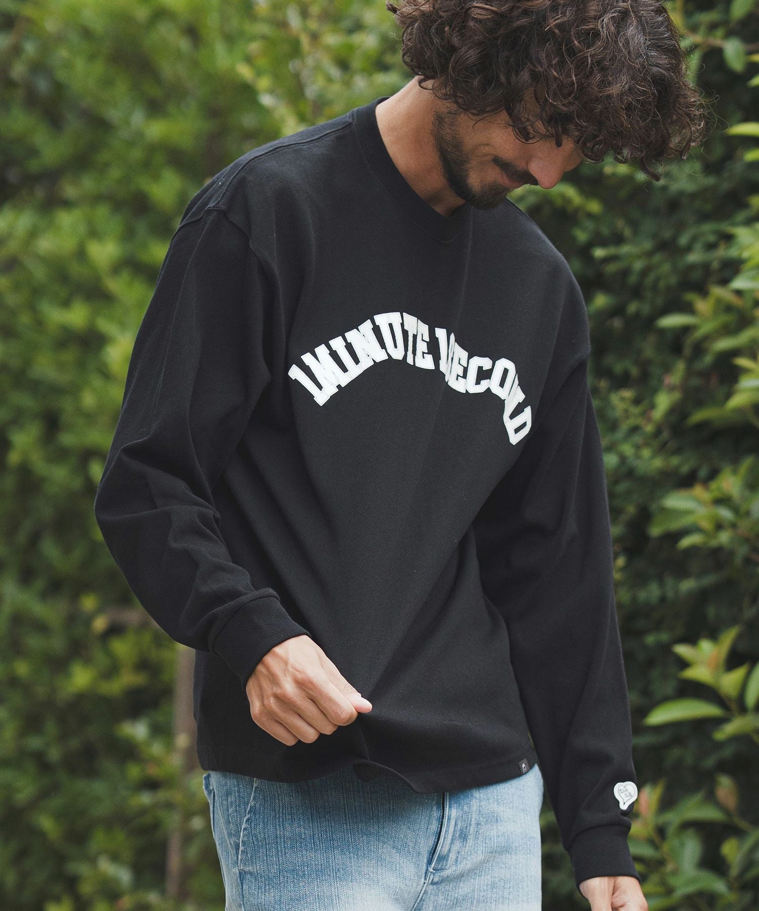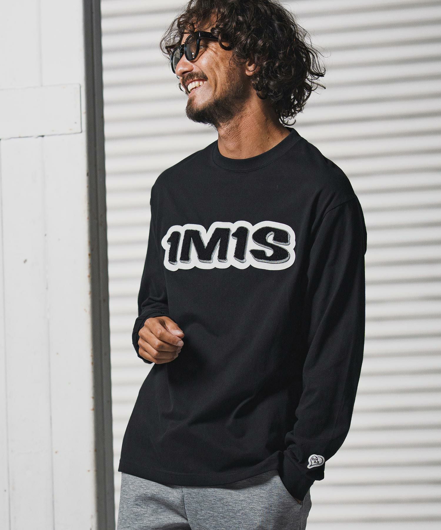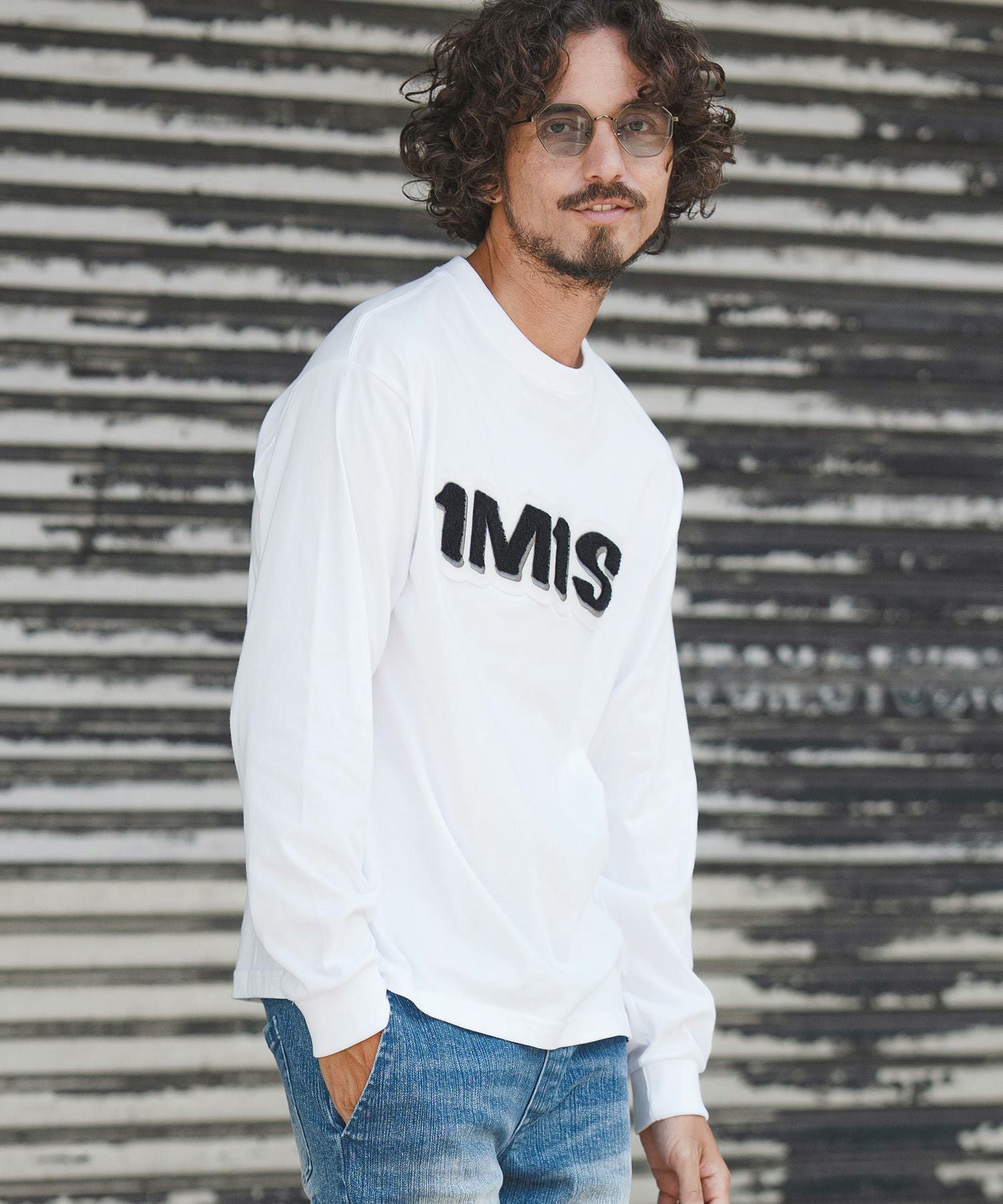 1minute 1second 【1minute 1second(ワンミニットワンセカンド)】1M1S chenille embroidered patch long sleeve cut&sewn ロングスリーブカットソー(1M25F360)