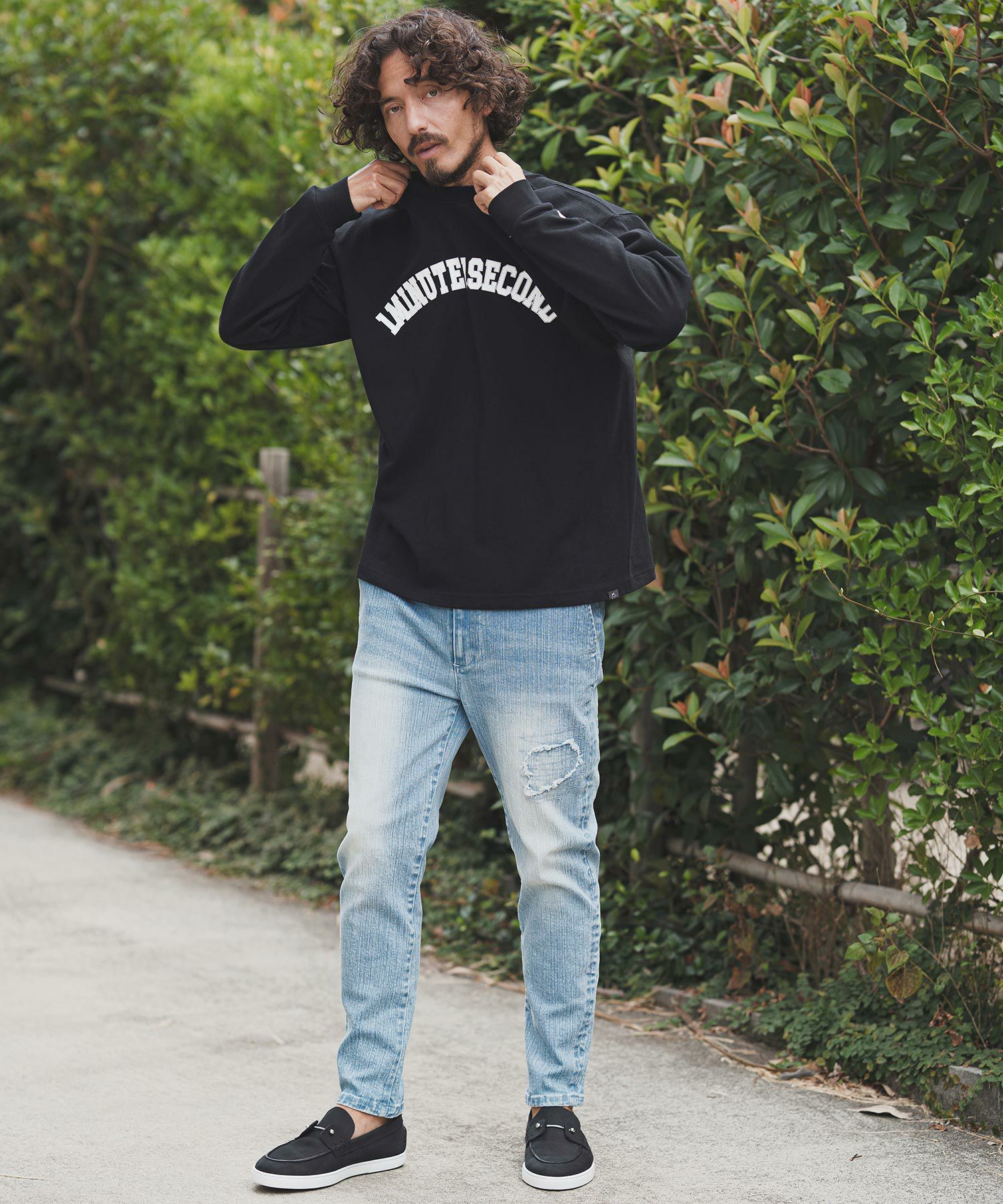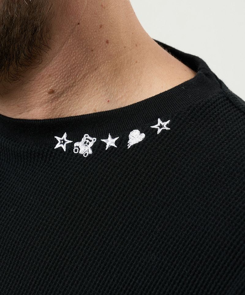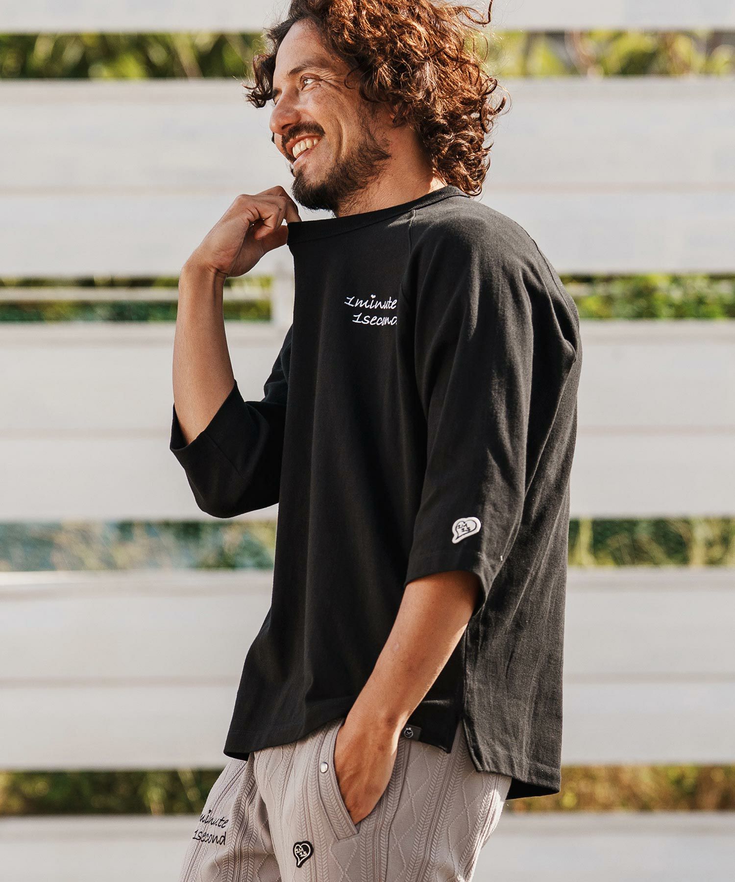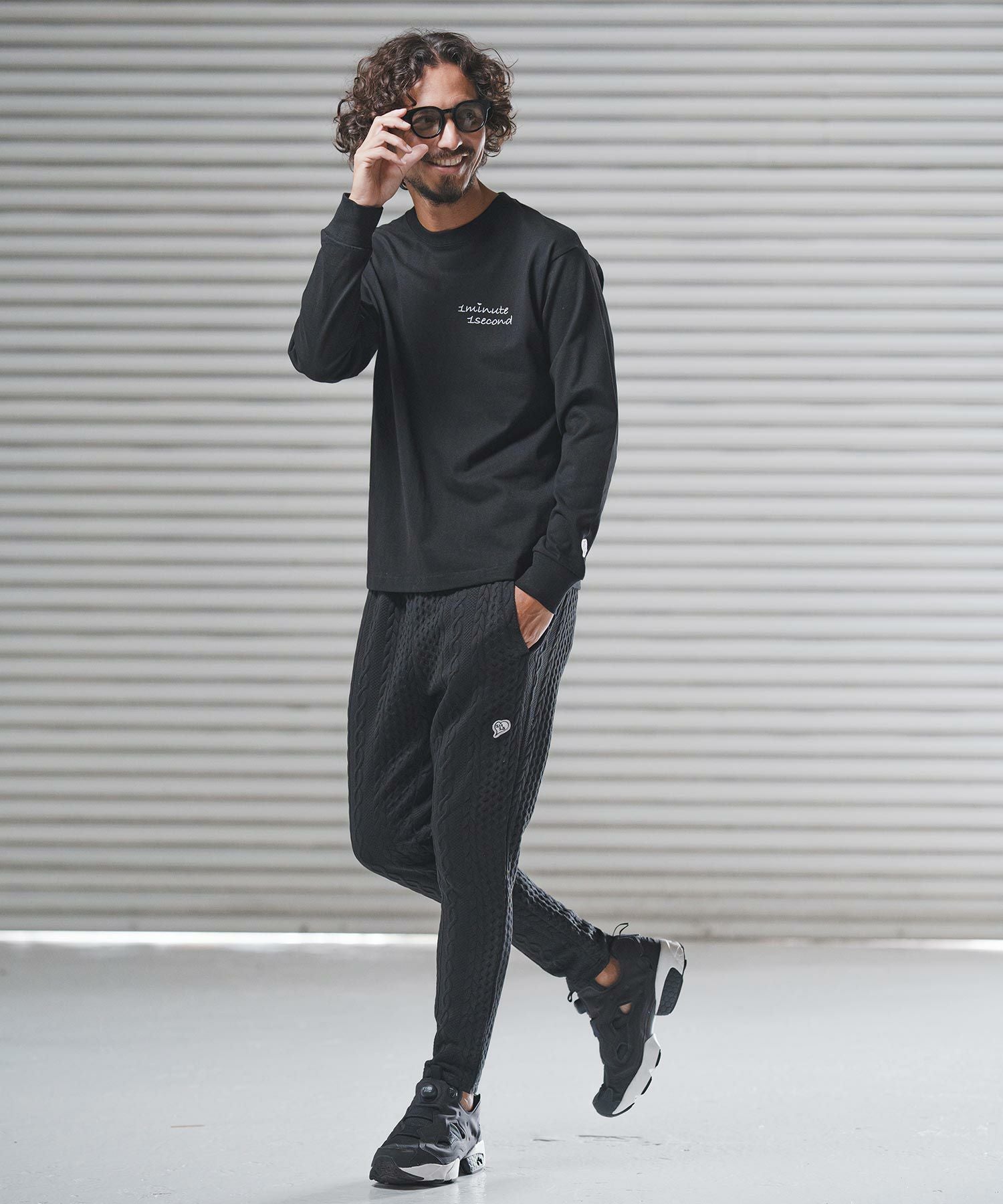 1minute 1second 【1minute 1second(ワンミニットワンセカンド)】1M1S chenille embroidered patch long sleeve cut&sewn ロングスリーブカットソー(1M25F360)