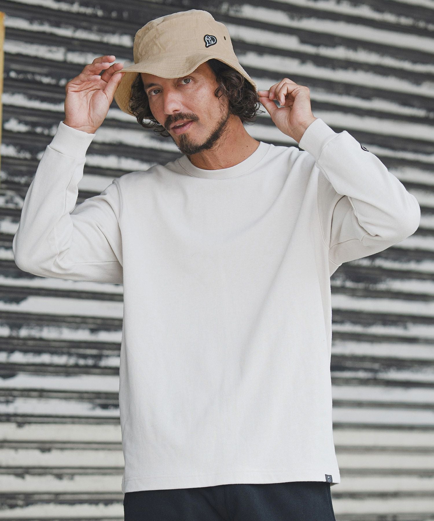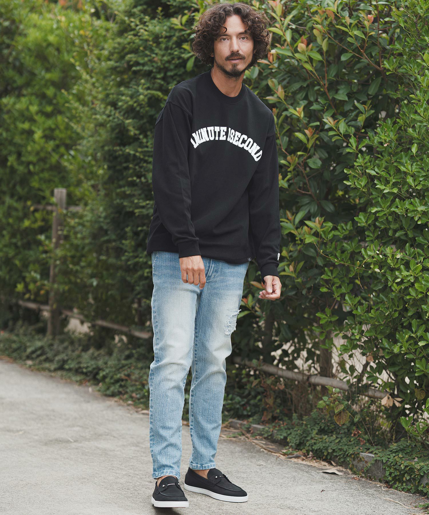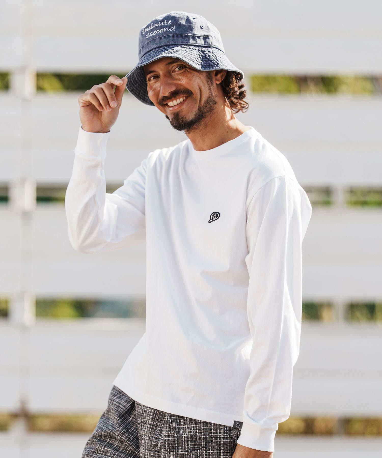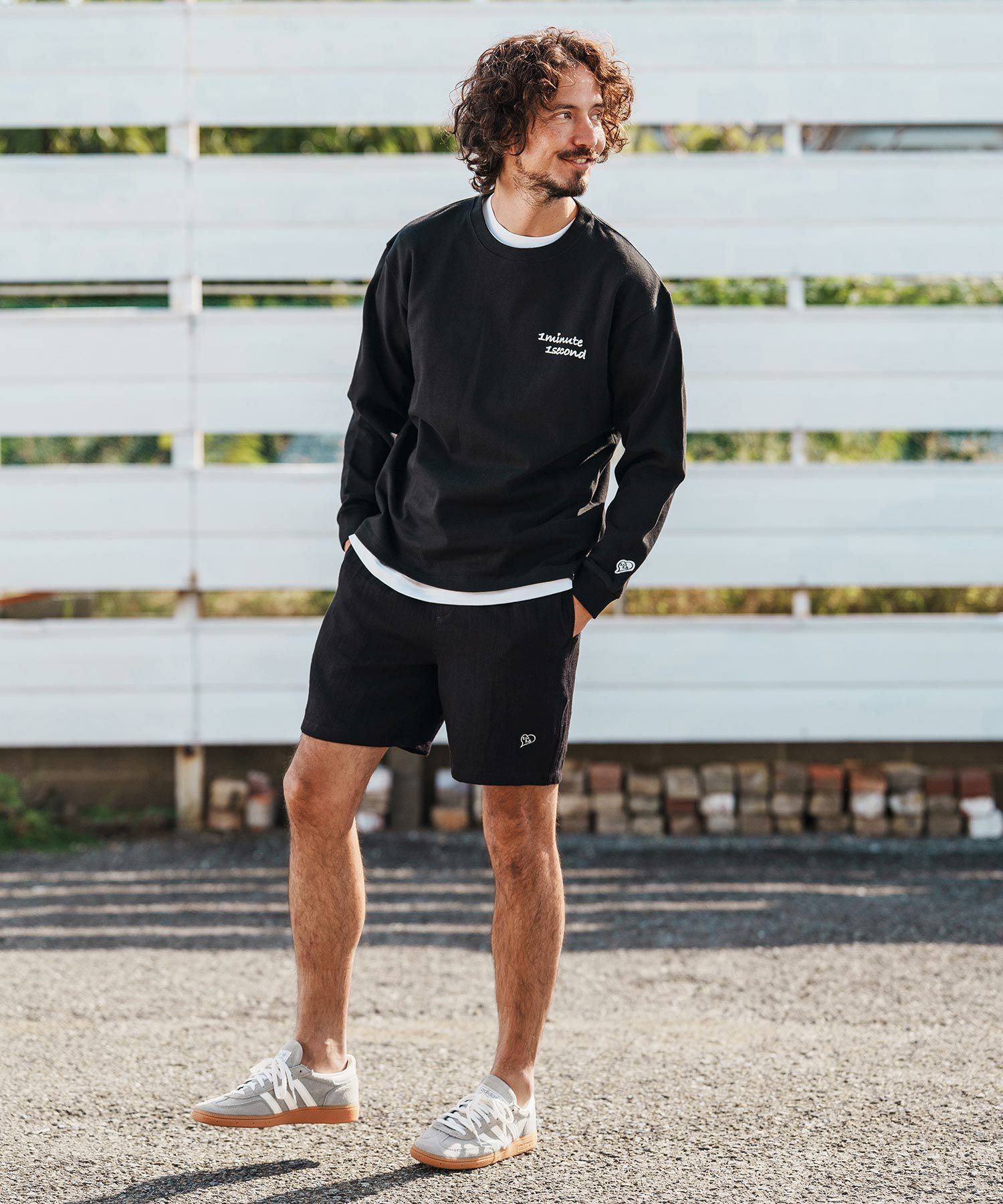 1minute 1second 【1minute 1second(ワンミニットワンセカンド)】1M1S chenille embroidered patch long sleeve cut&sewn ロングスリーブカットソー(1M25F360)