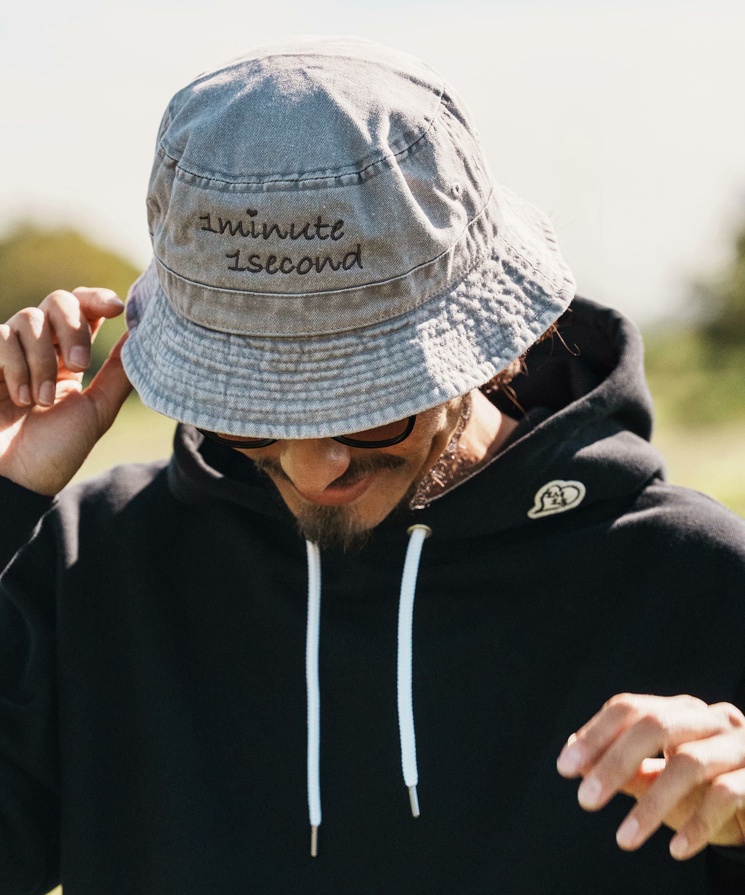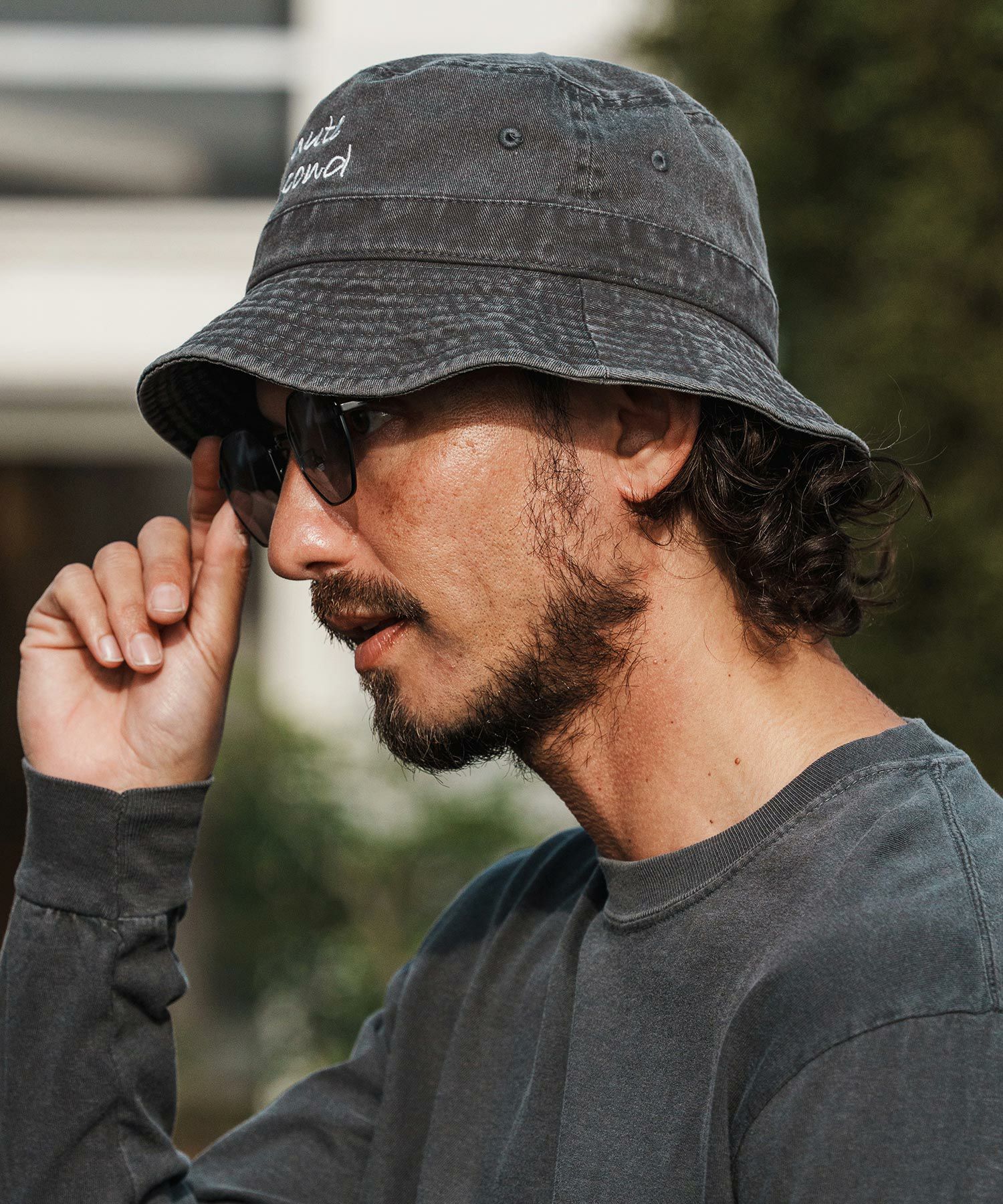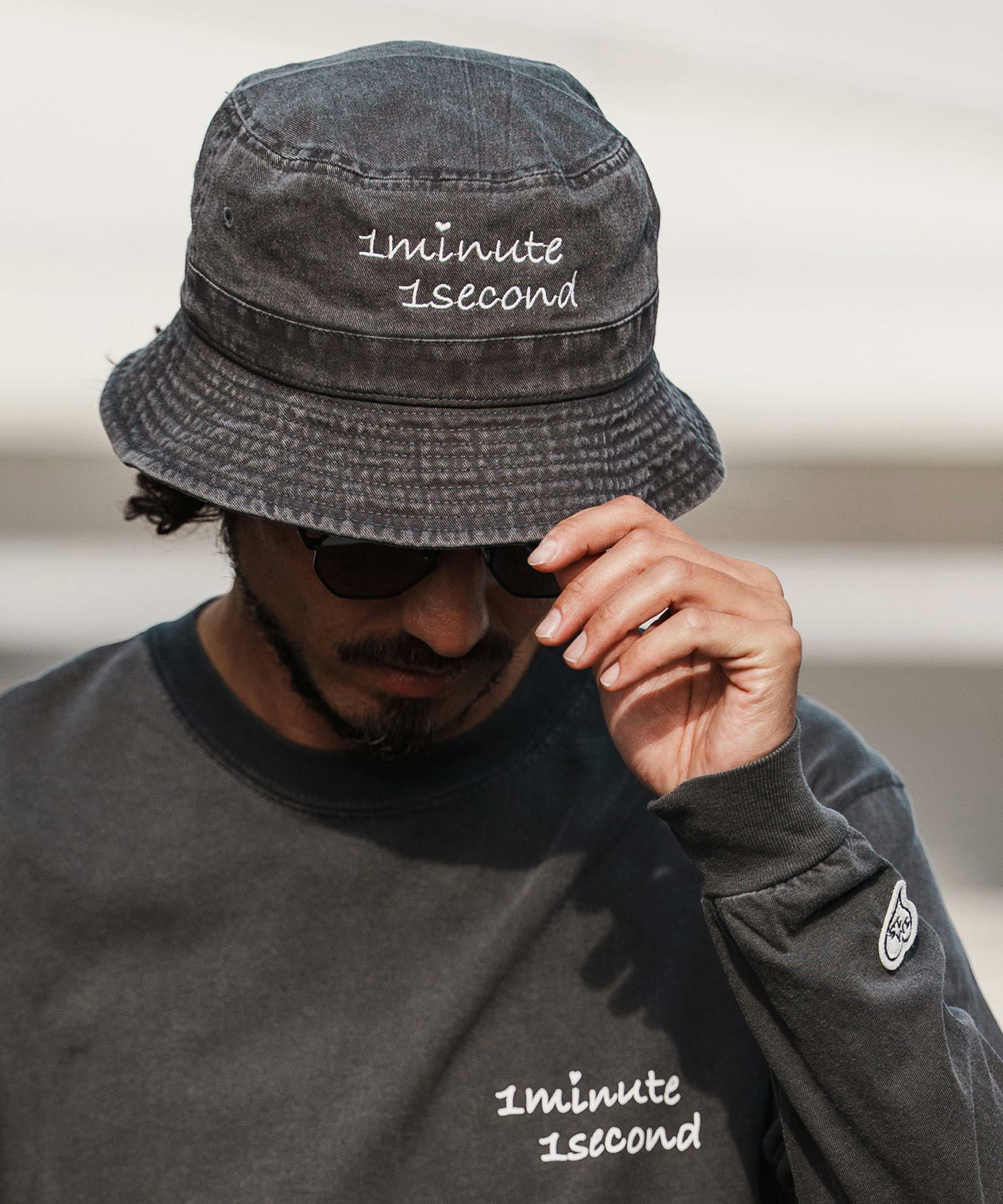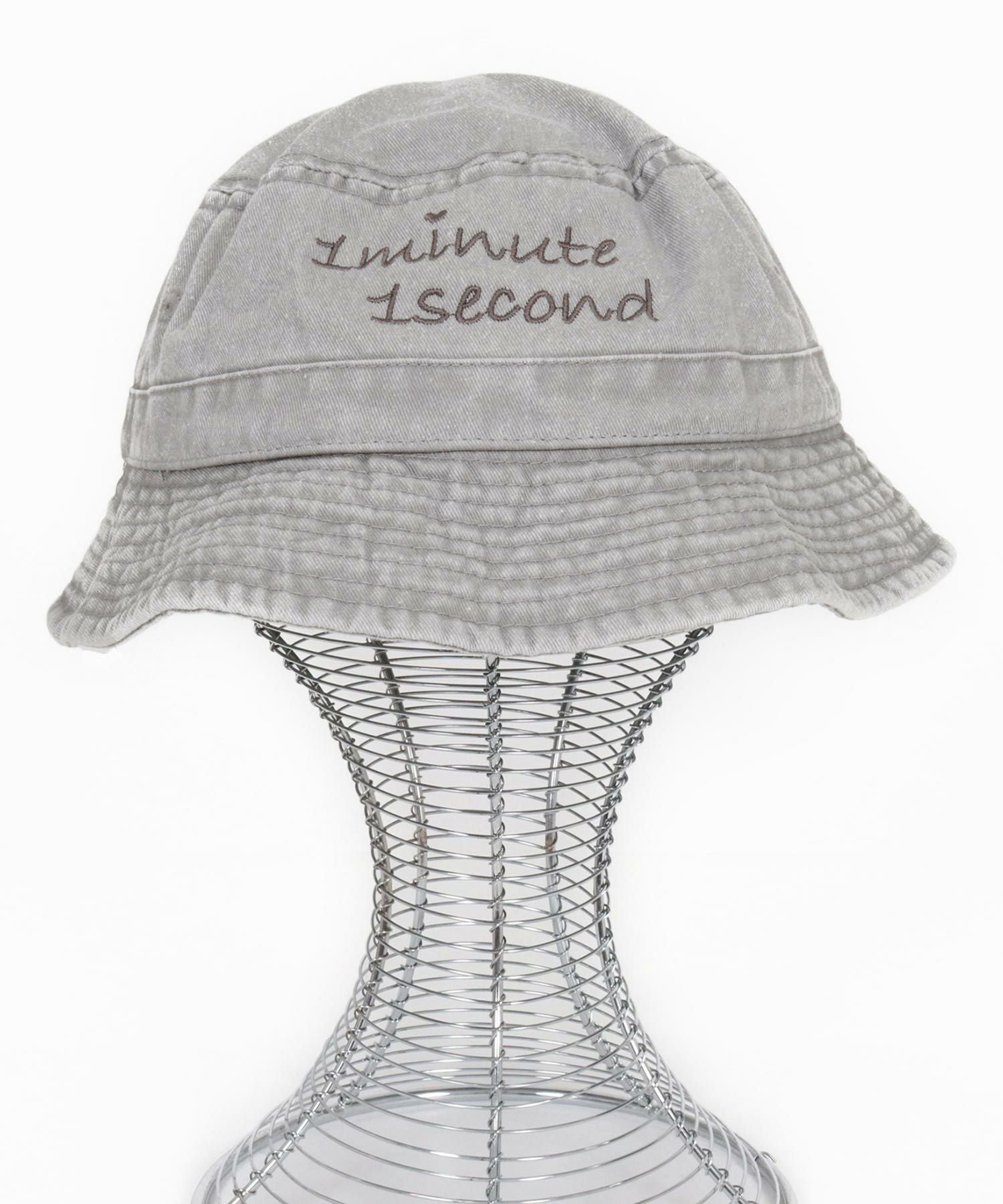 1minute 1second 【1minute 1second(ワンミニットワンセカンド)】cursive embroidery pigment bucket hat バケットハット(1M26H350)
