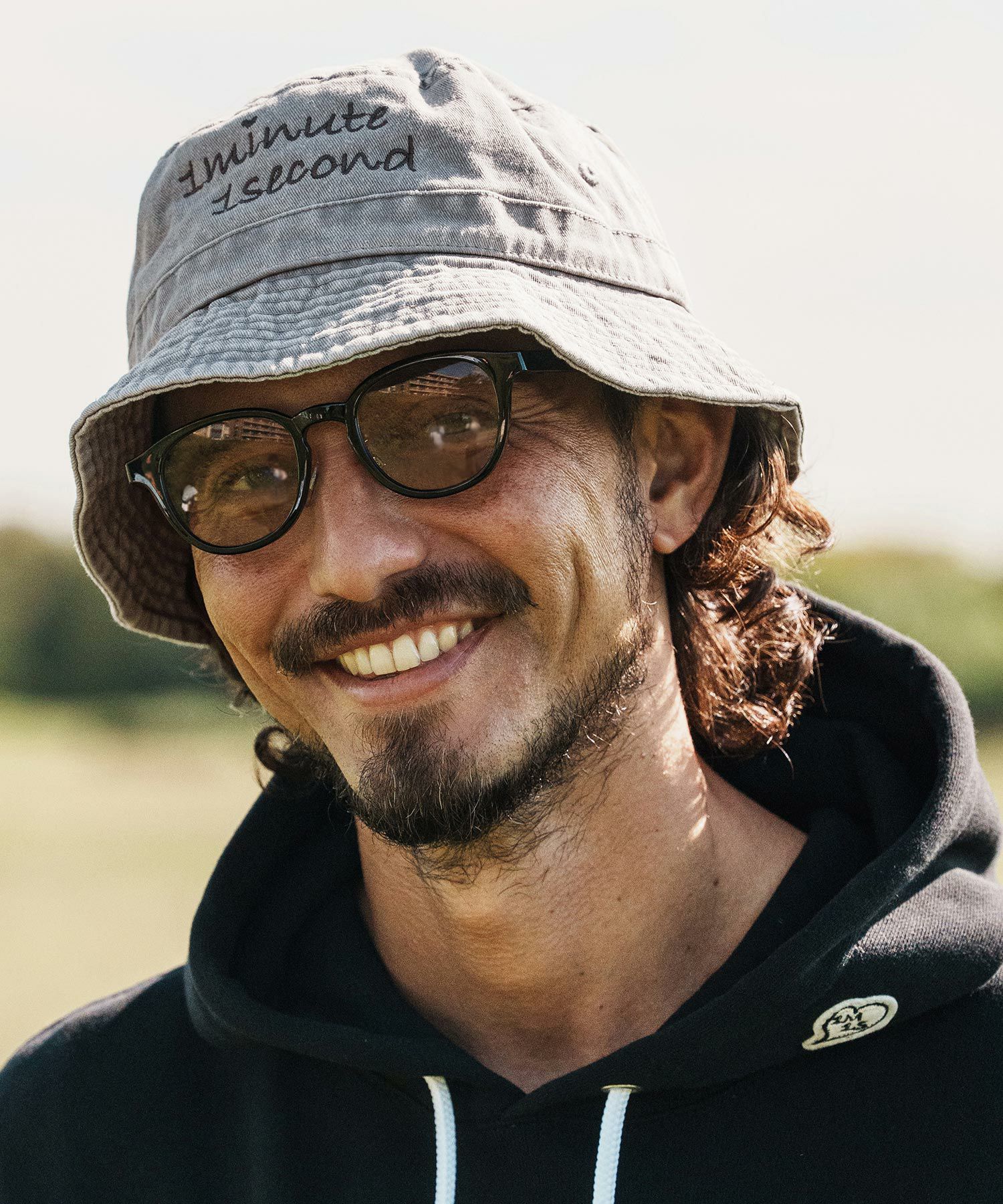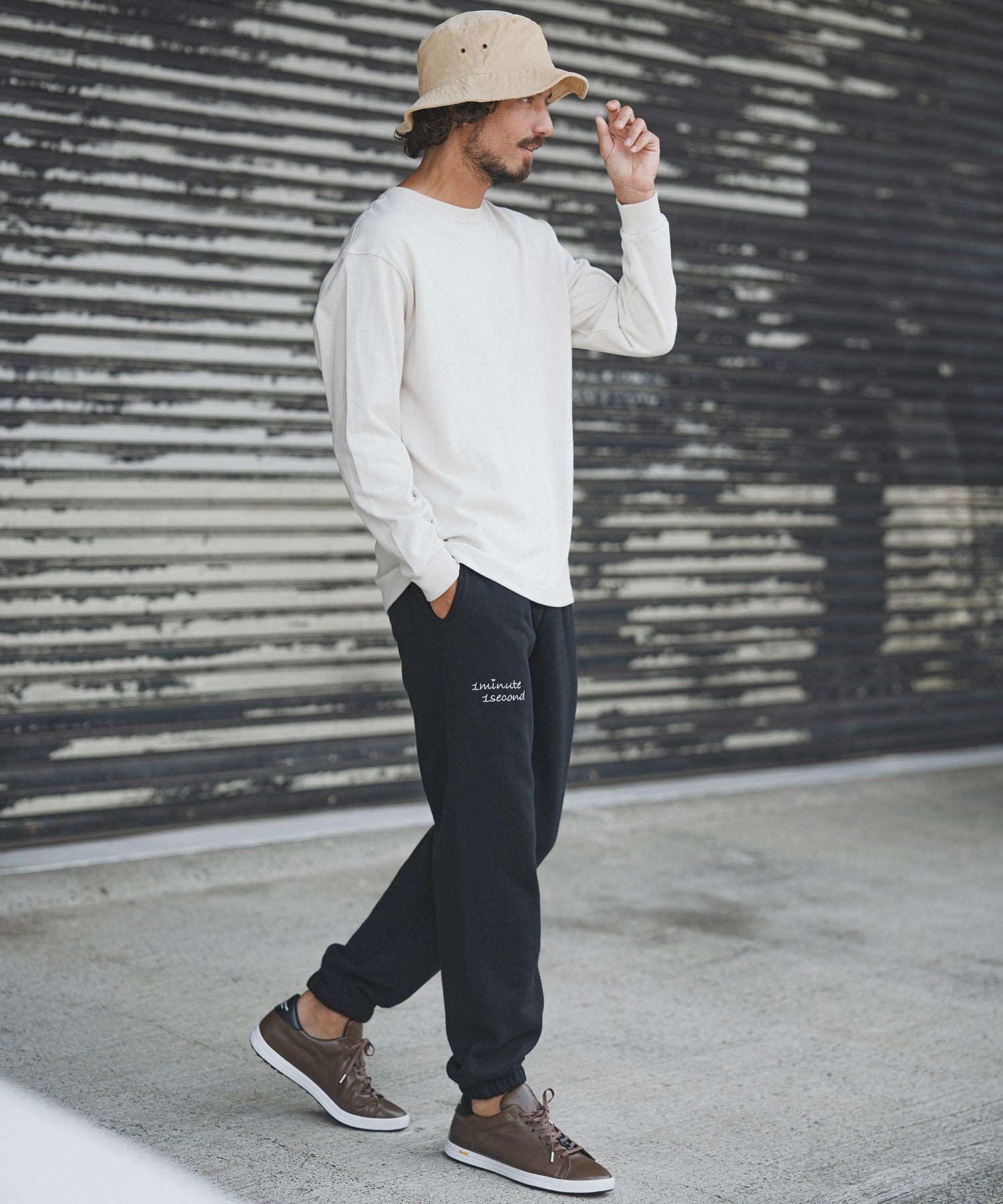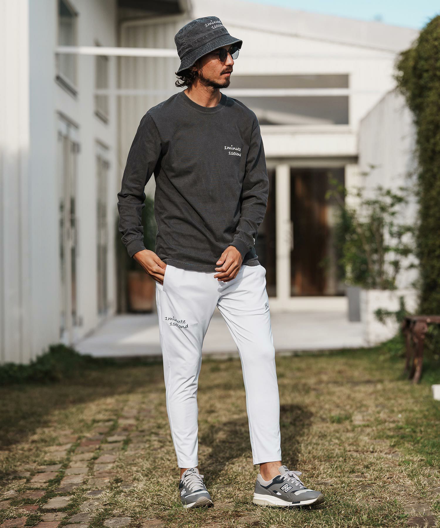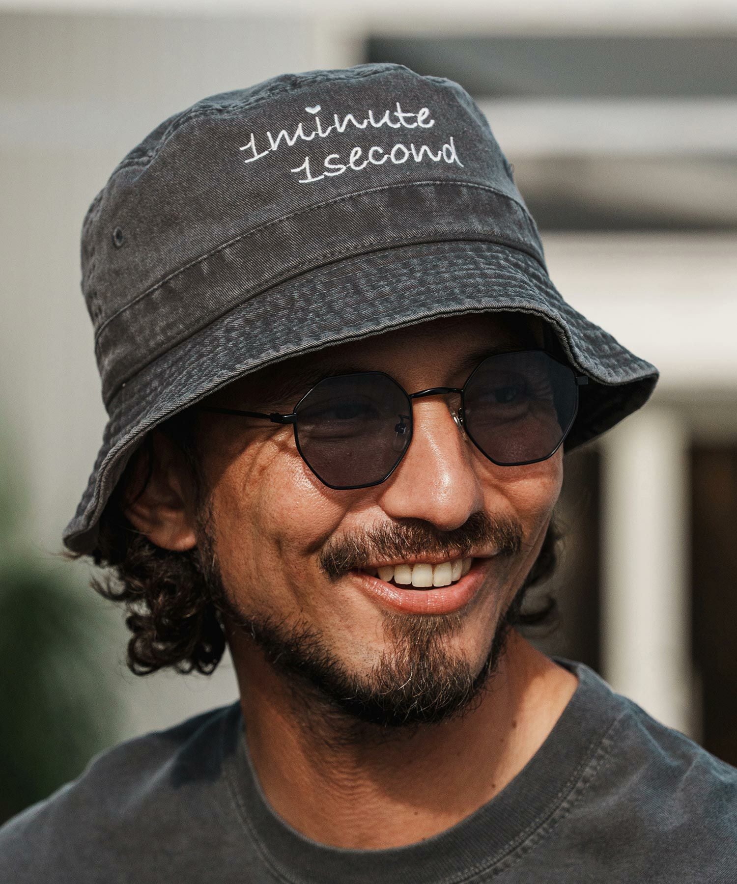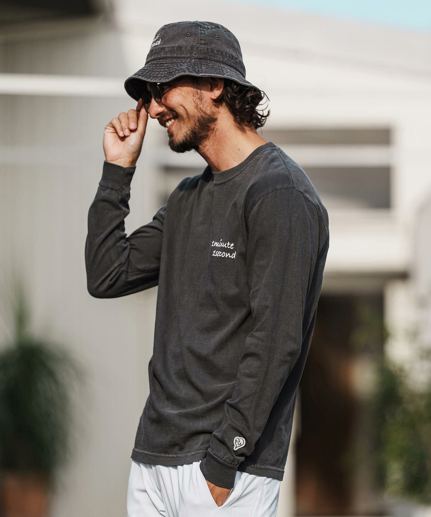 1minute 1second 【1minute 1second(ワンミニットワンセカンド)】cursive embroidery pigment bucket hat バケットハット(1M26H350)