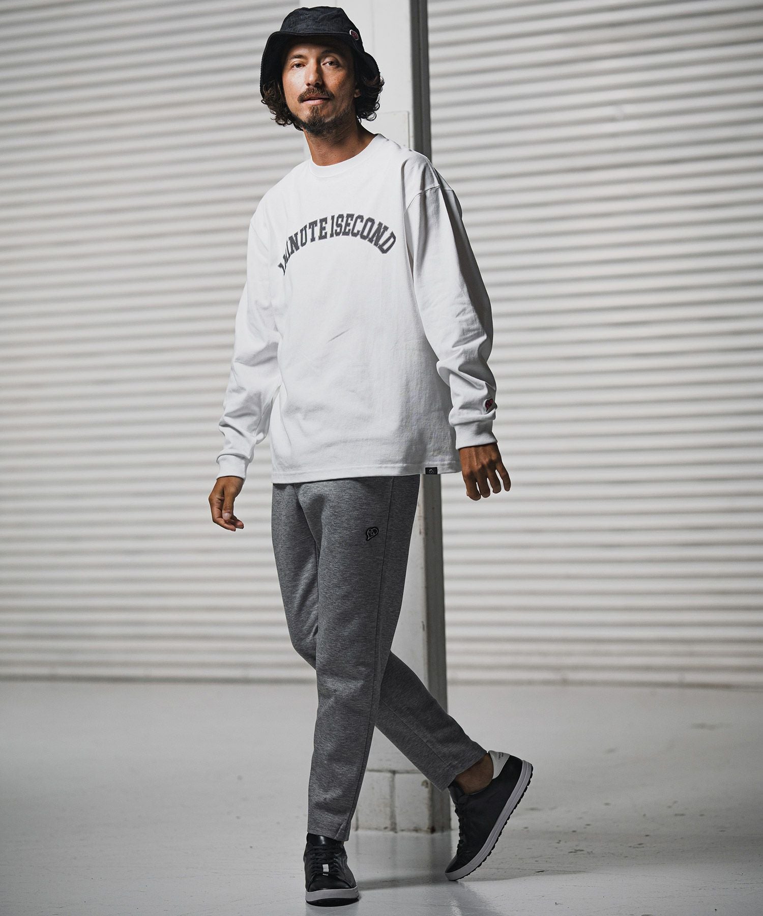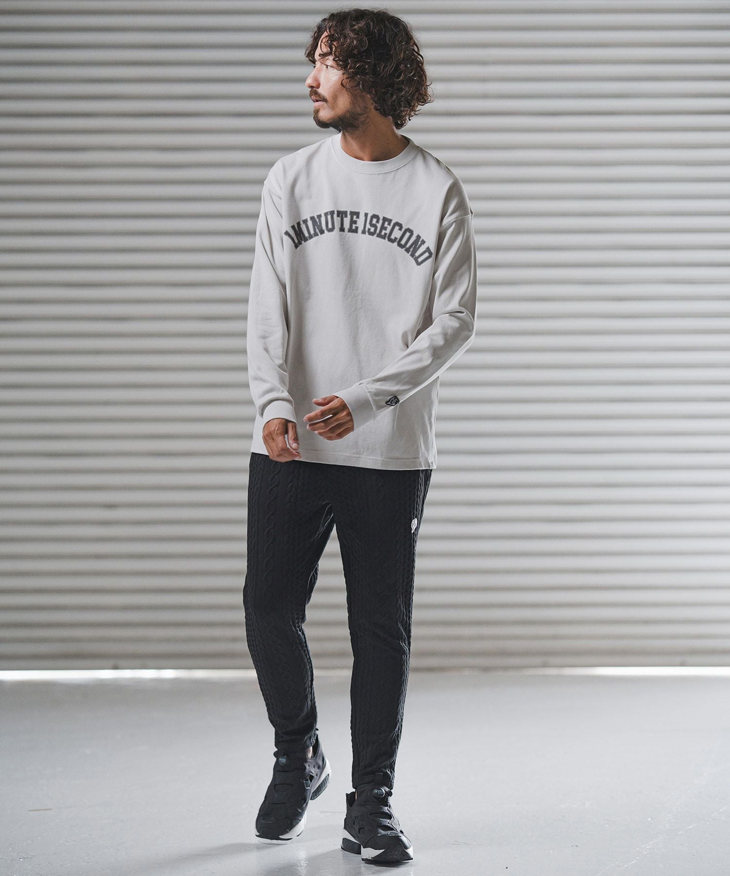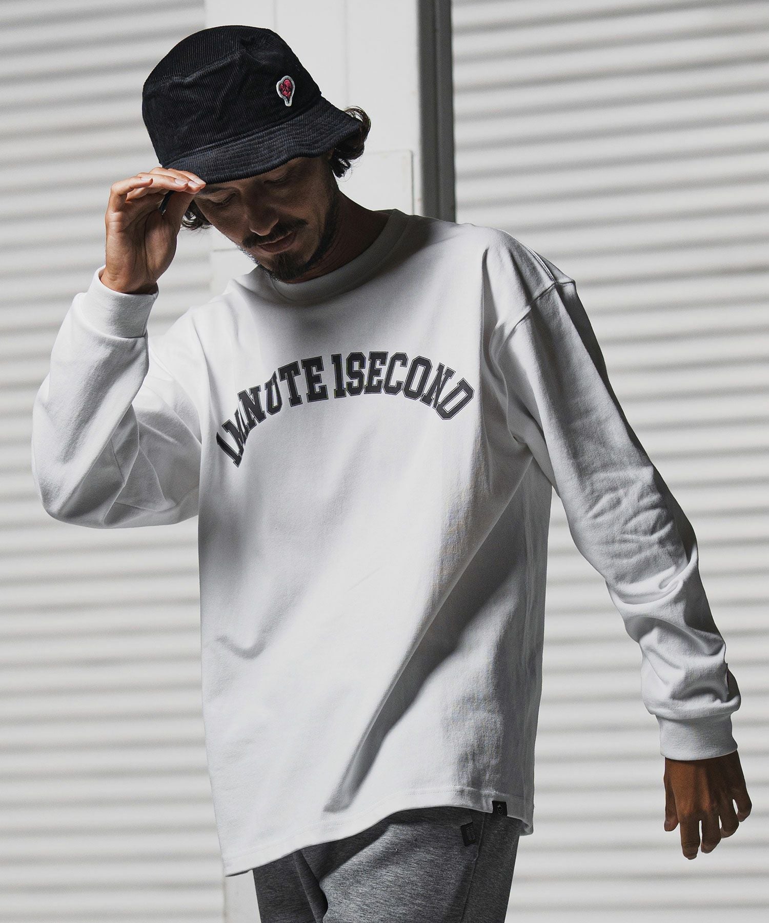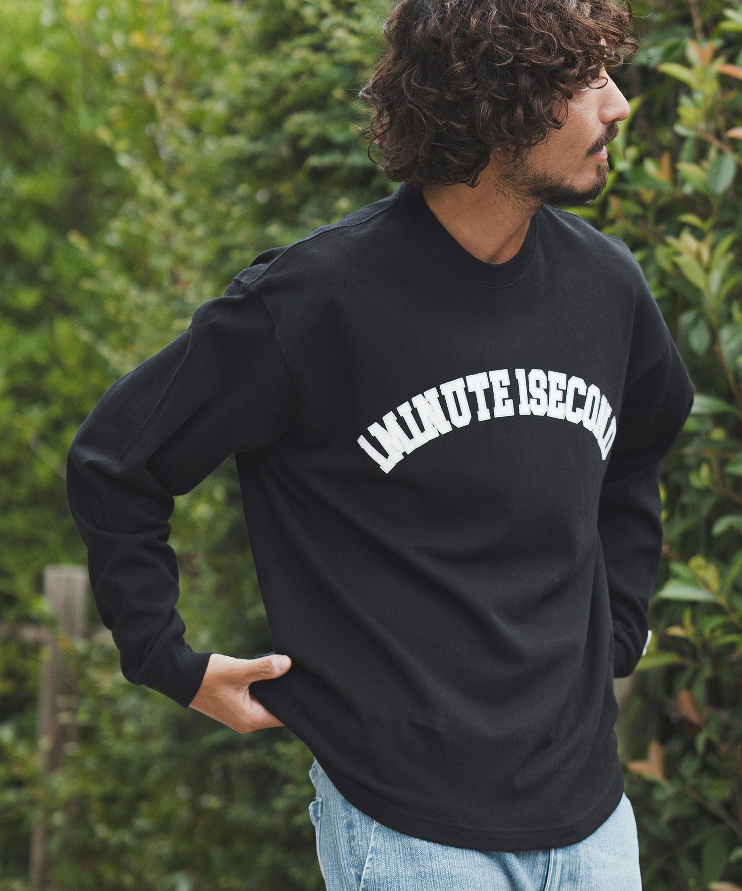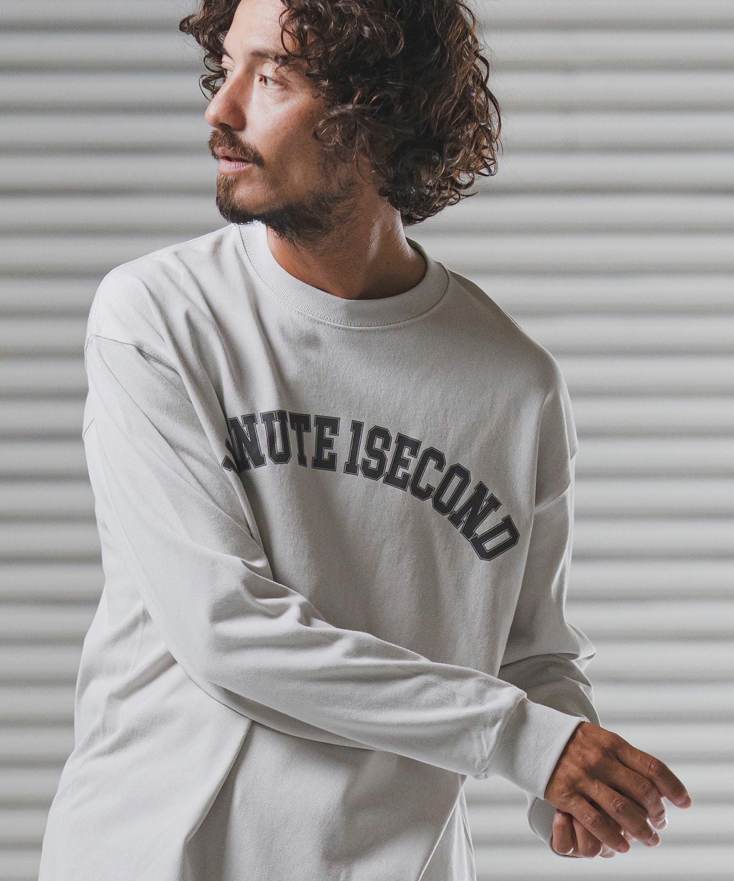 1minute 1second 【1minute 1second(ワンミニットワンセカンド)】big silhouette college logo long cut&sewn ロングスリーブTシャツ(1M25F350)