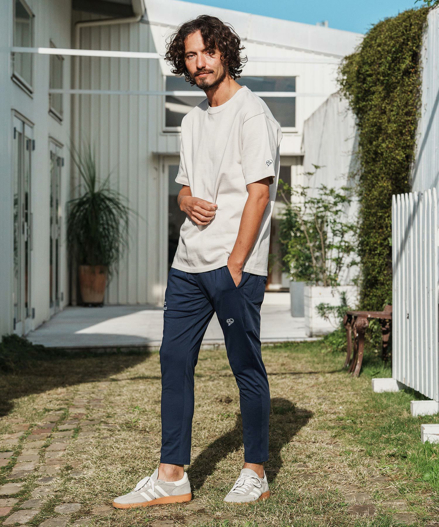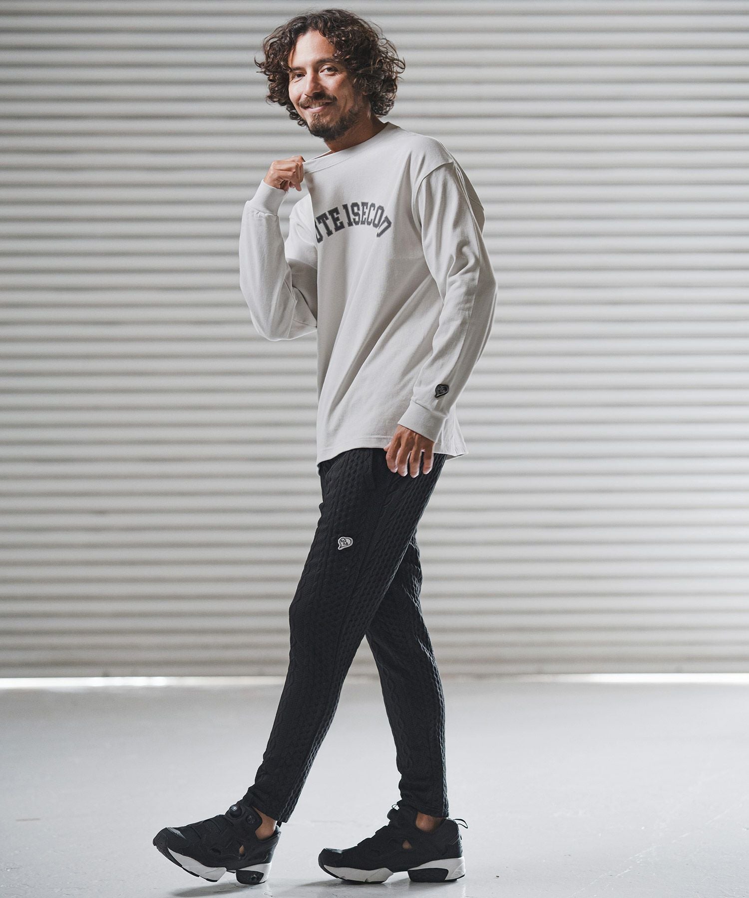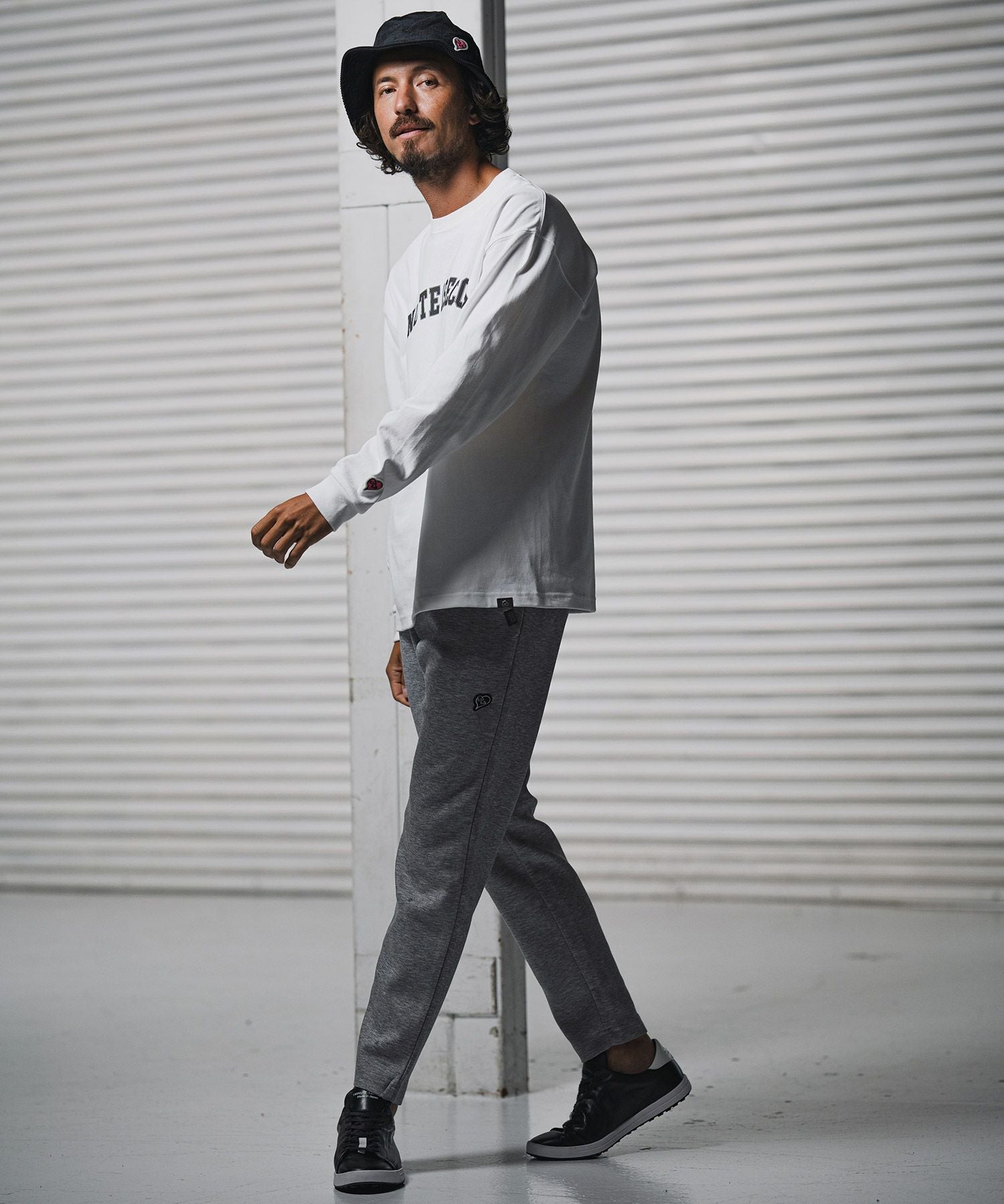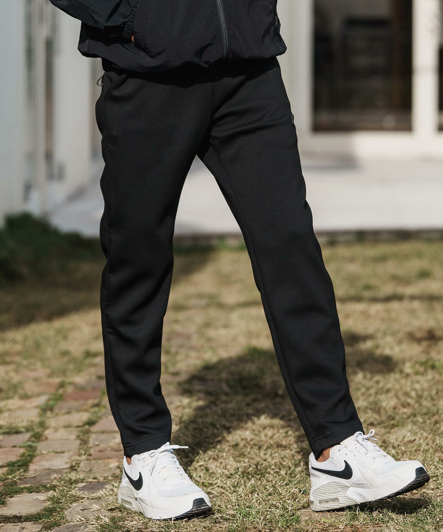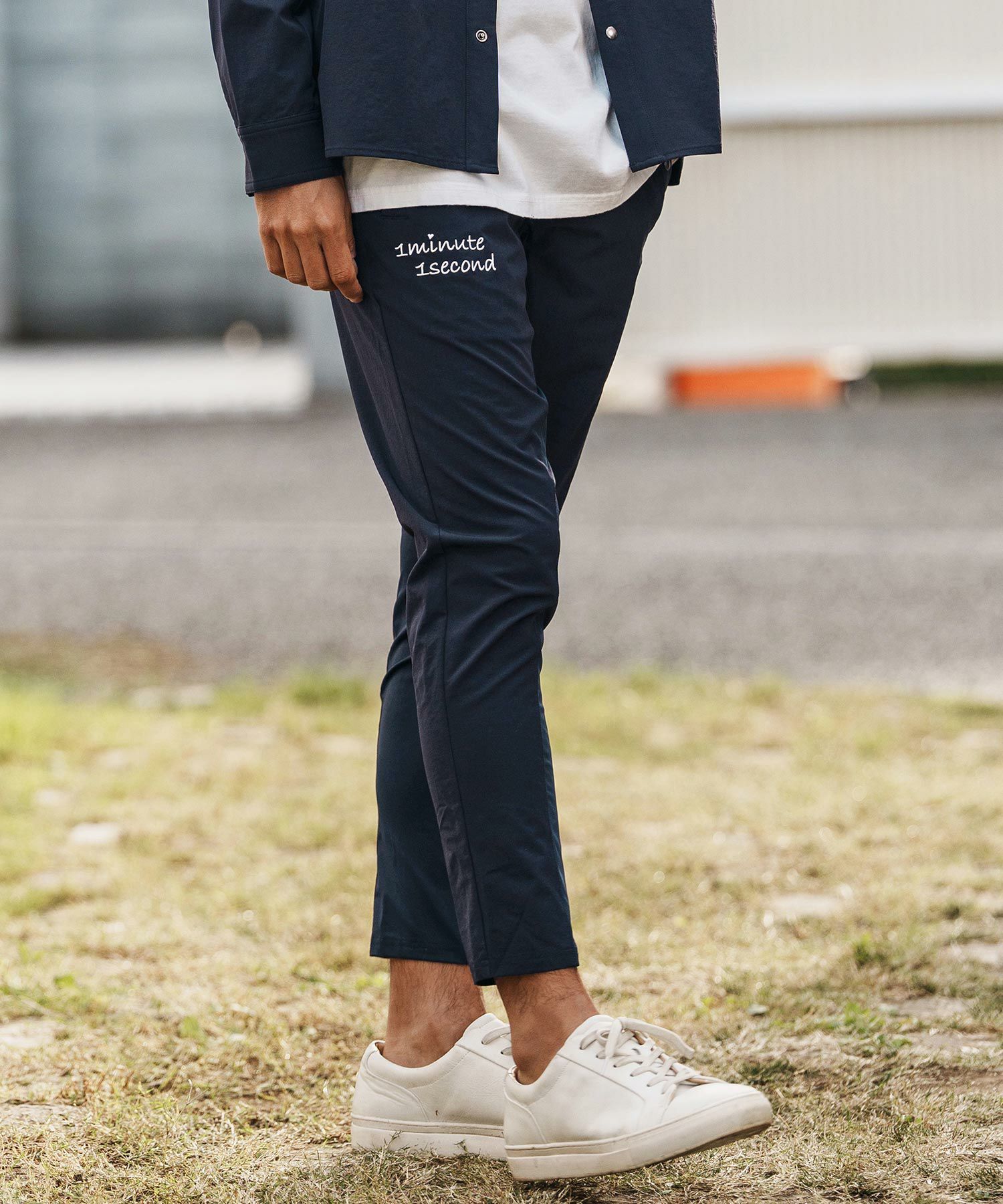 1minute 1second 【1minute 1second(ワンミニットワンセカンド)】cursive embroidery cardboard knit nylon pants イージーパンツ(1M26H050)