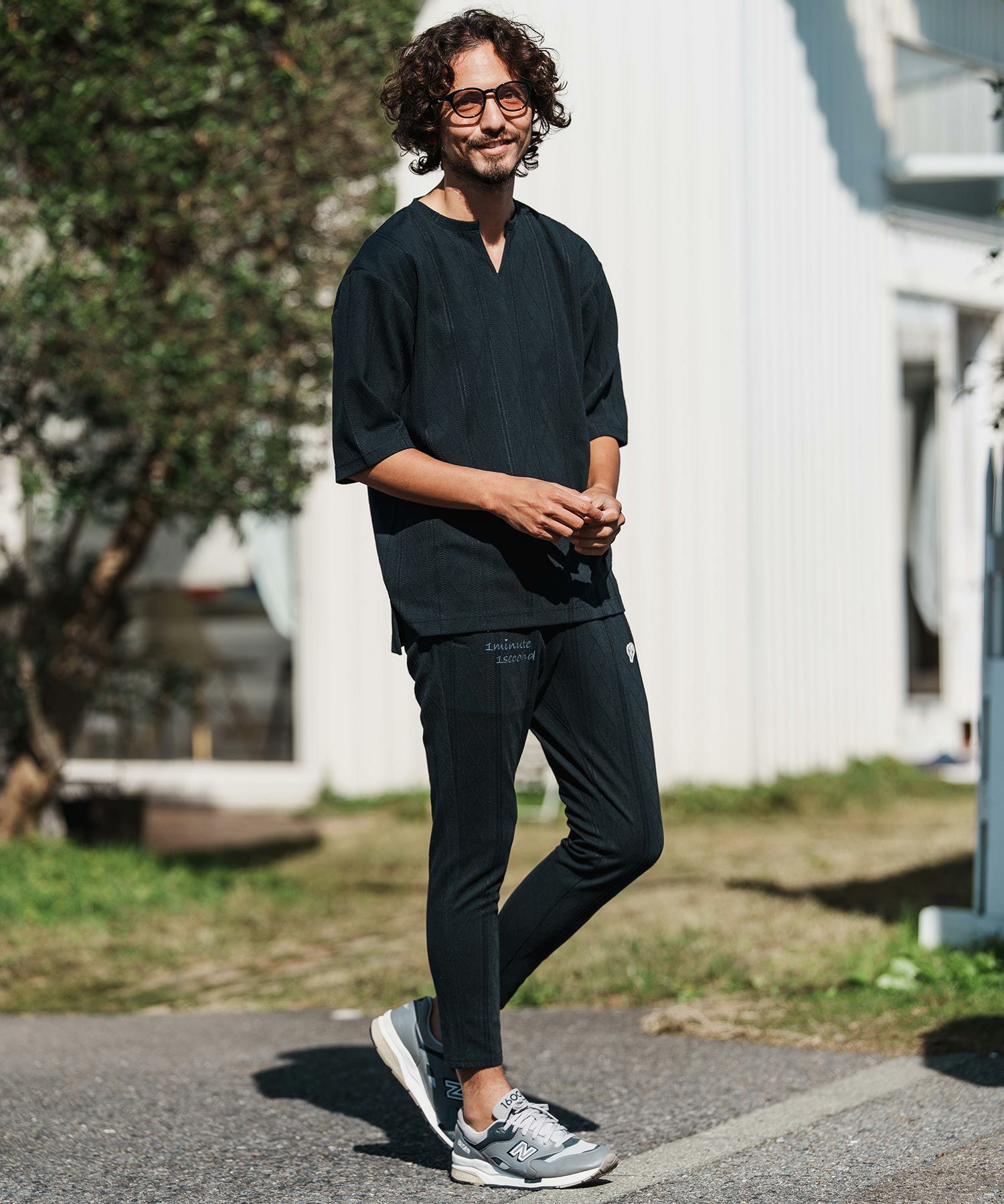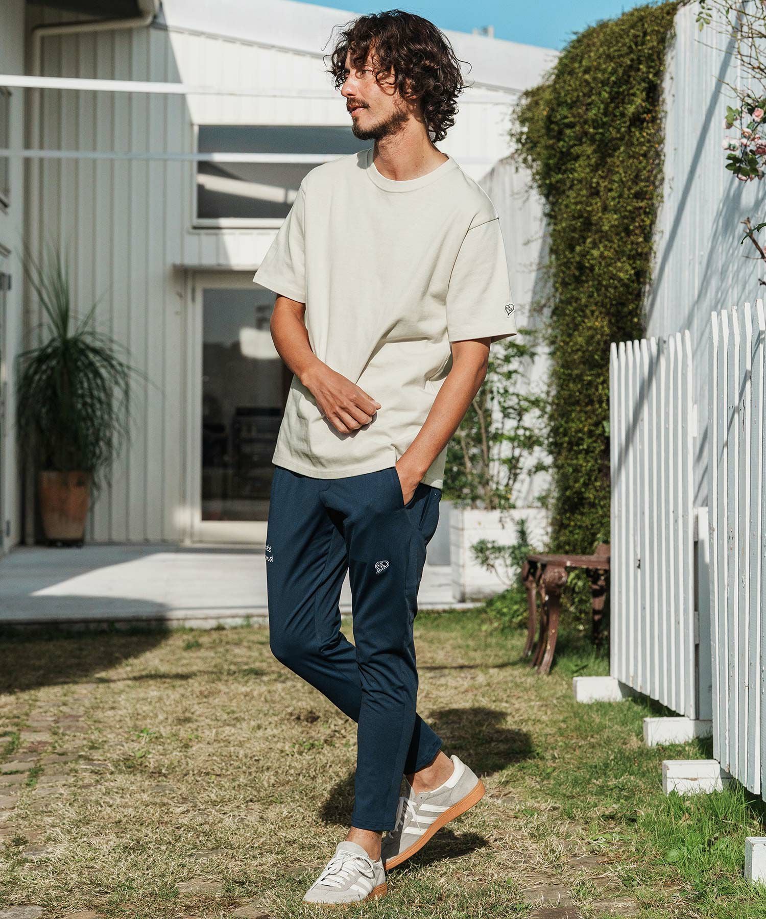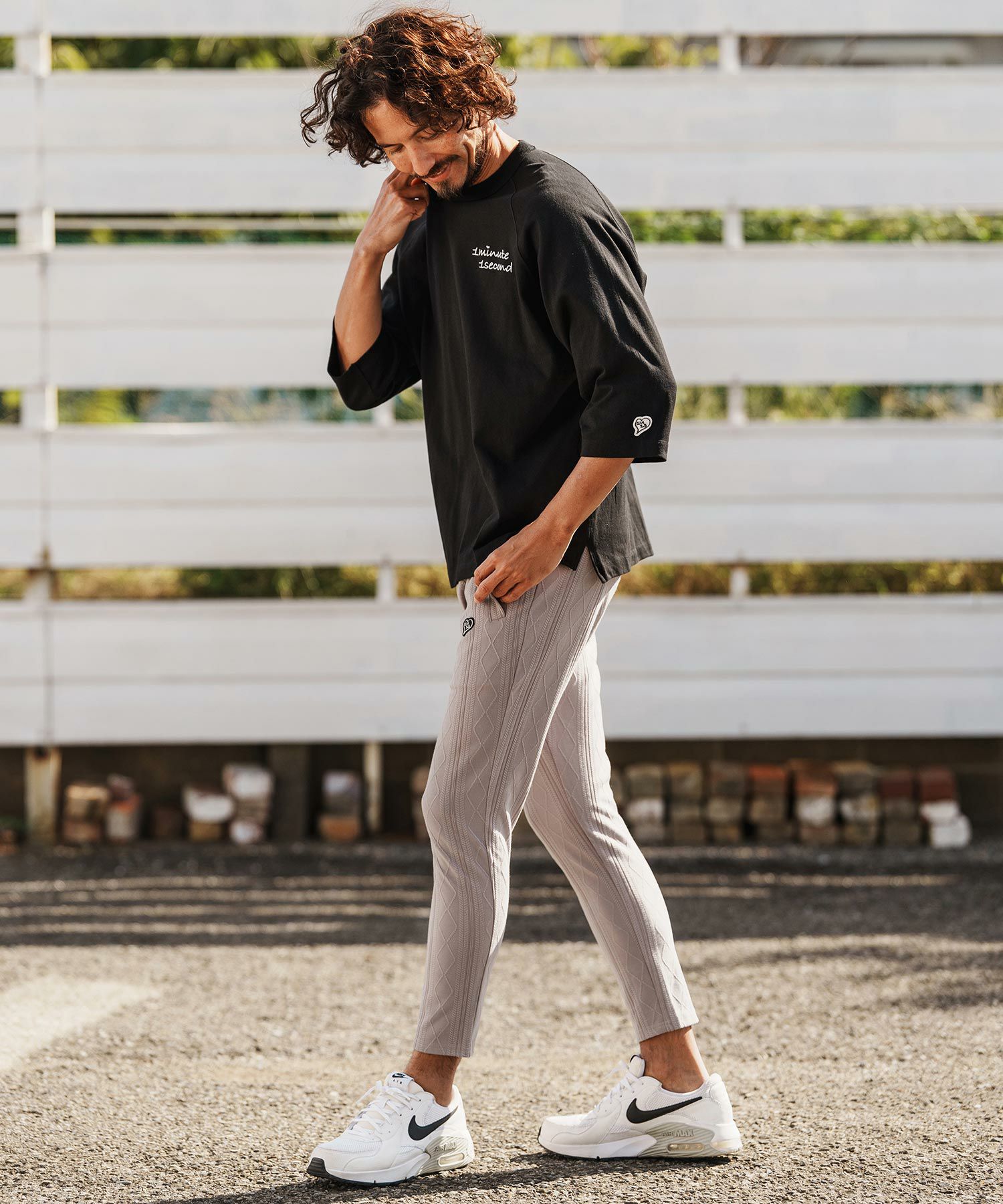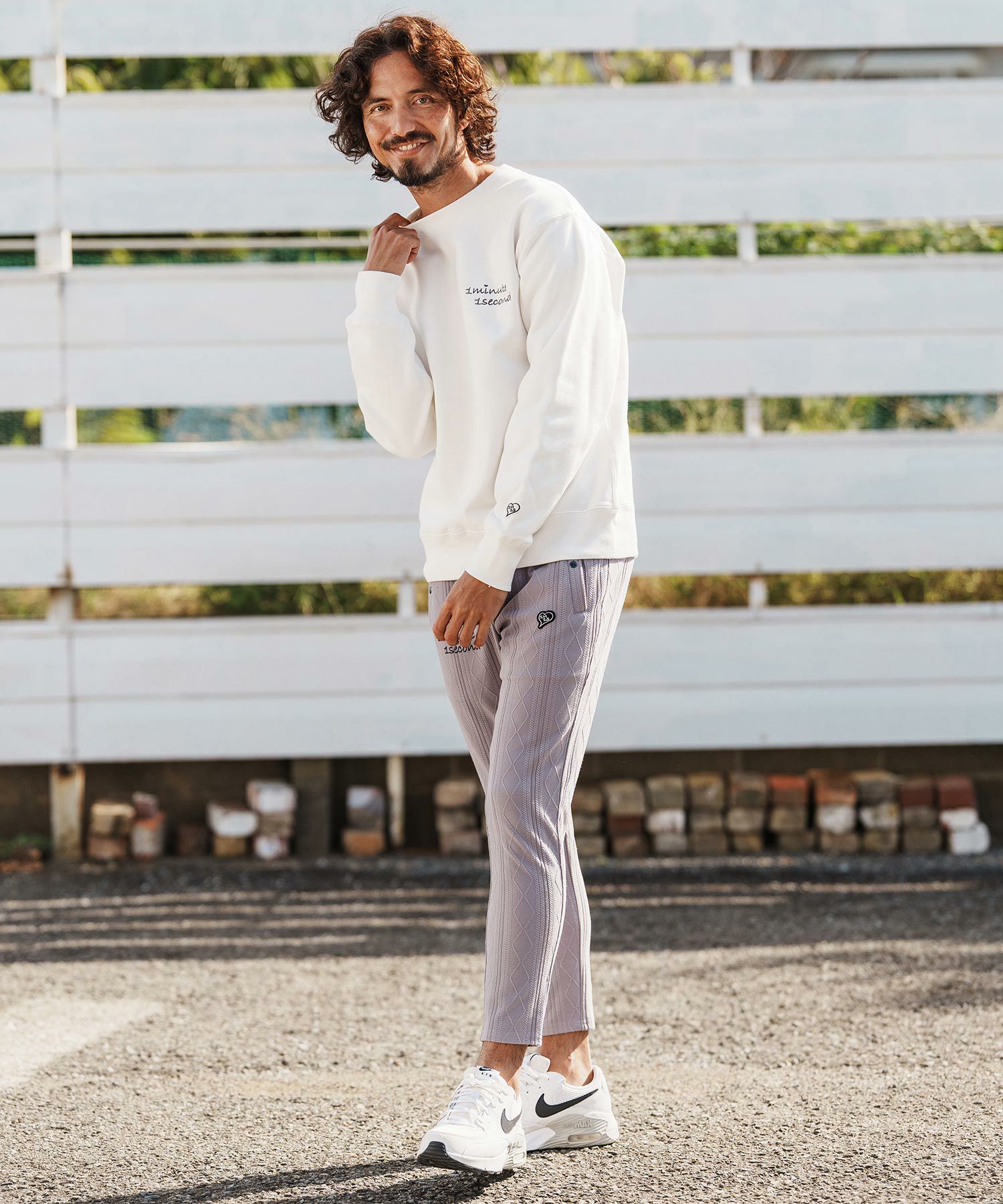 1minute 1second 【1minute 1second(ワンミニットワンセカンド)】cursive embroidery cardboard knit nylon pants イージーパンツ(1M26H050)