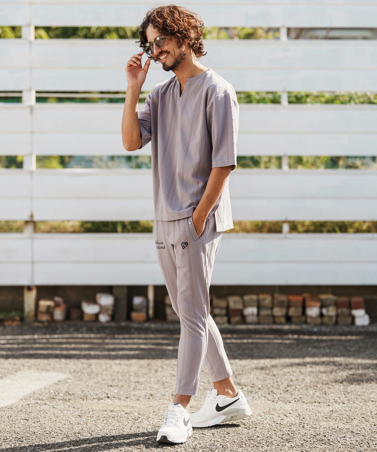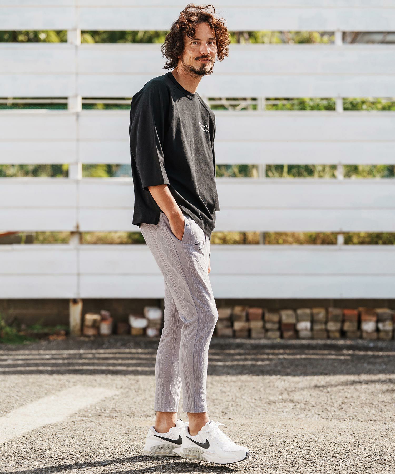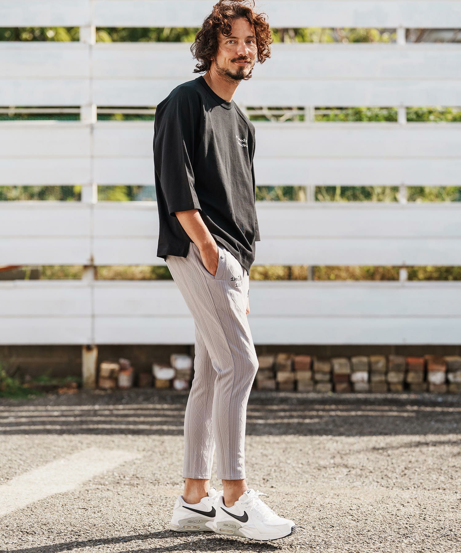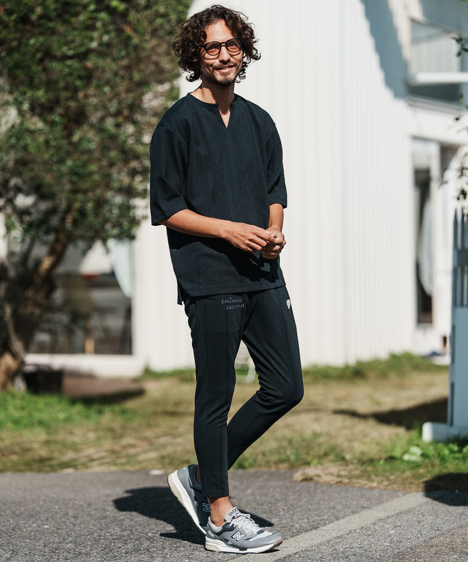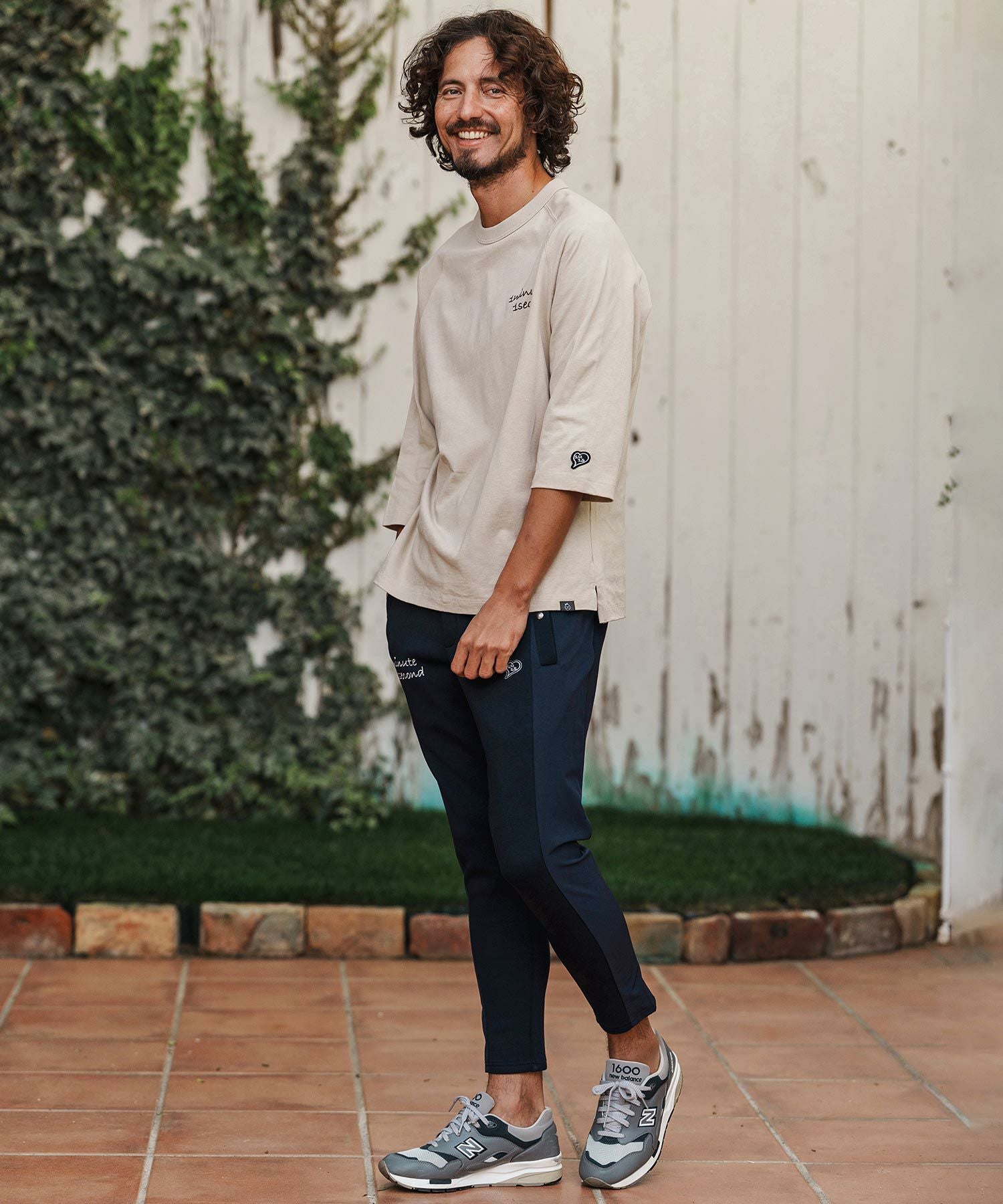 1minute 1second 【1minute 1second(ワンミニットワンセカンド)】cursive embroidery cardboard knit nylon pants イージーパンツ(1M26H050)