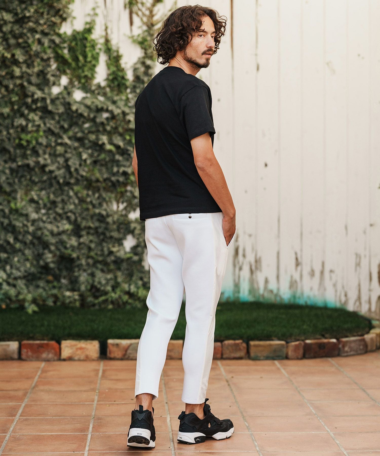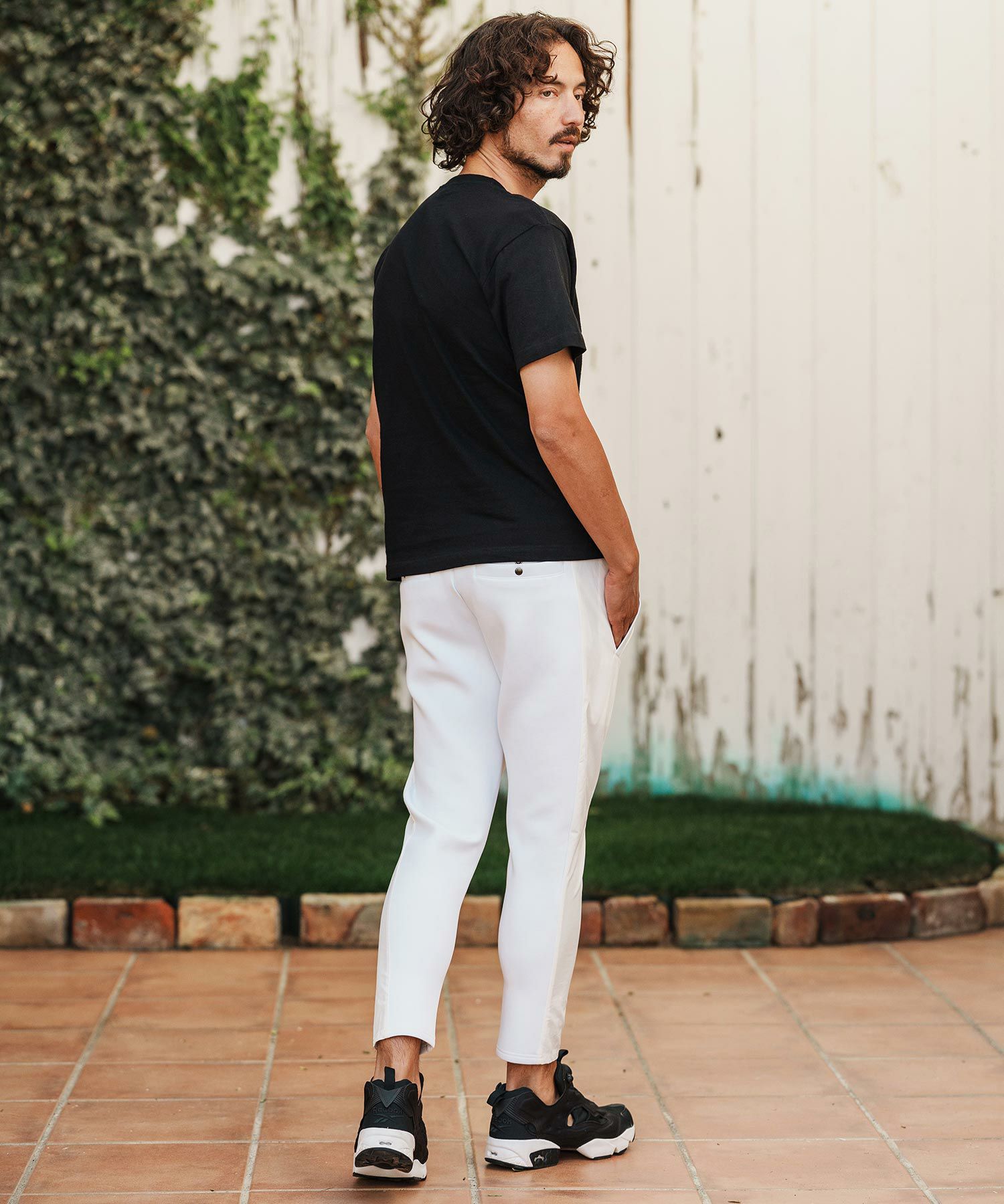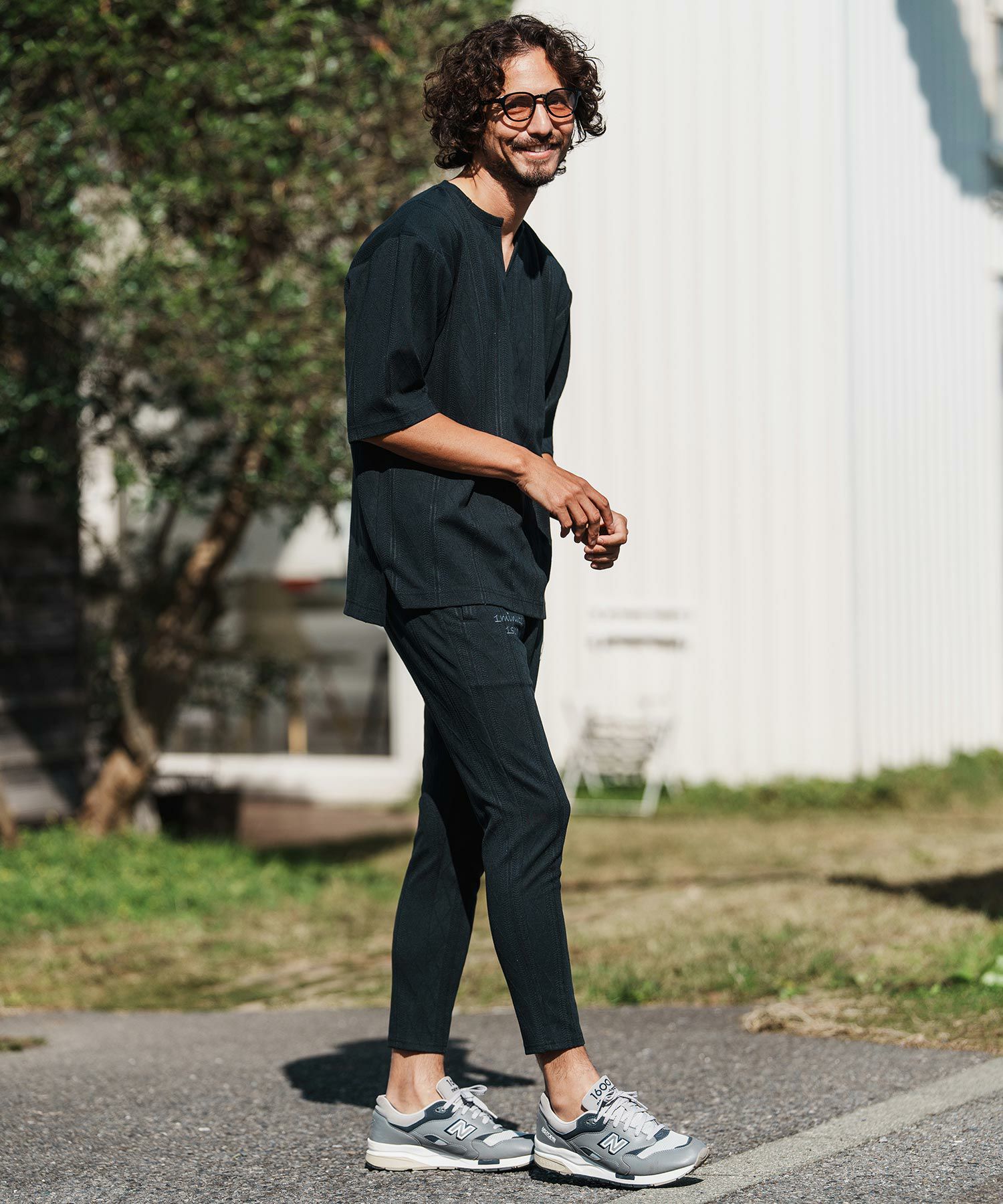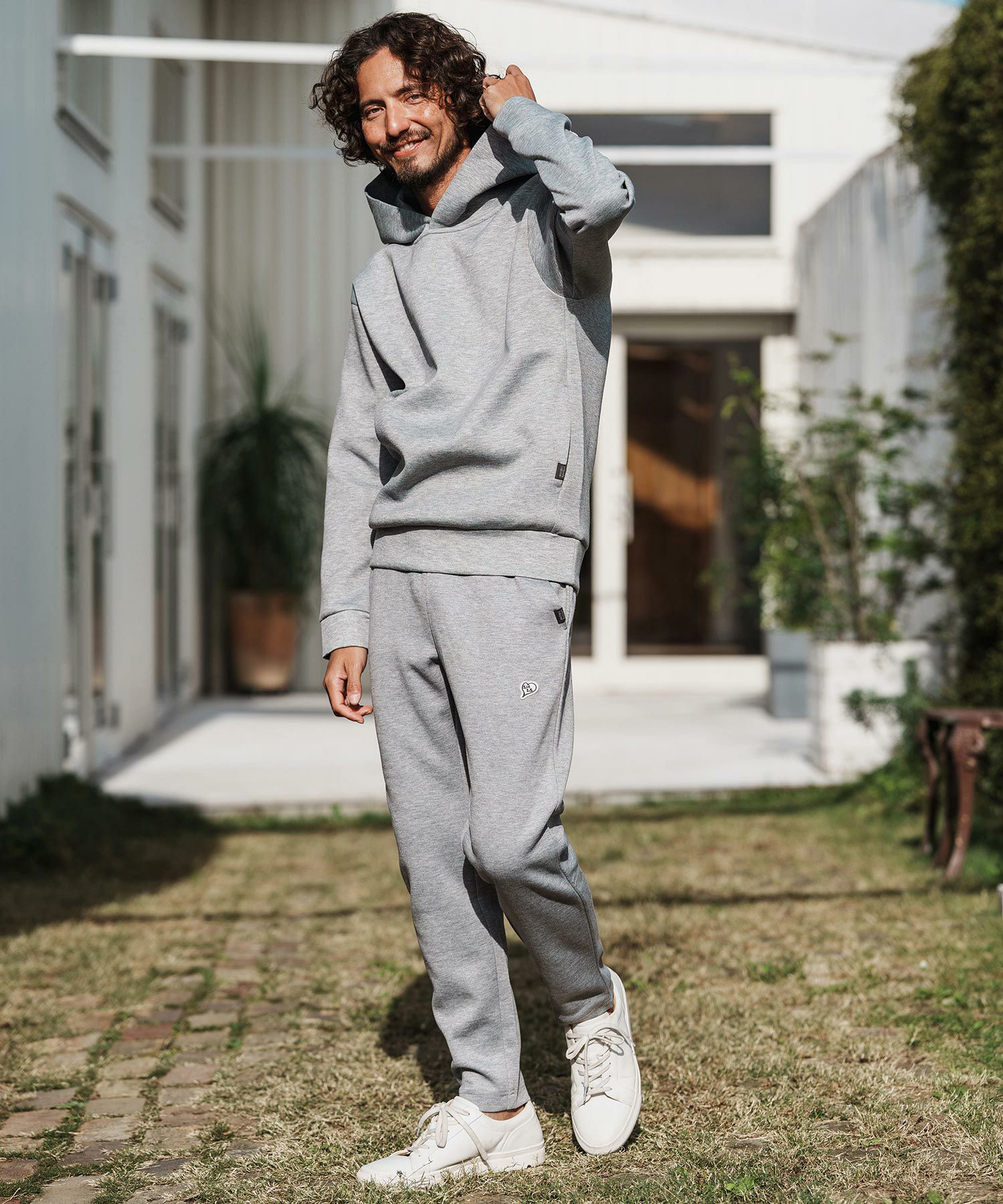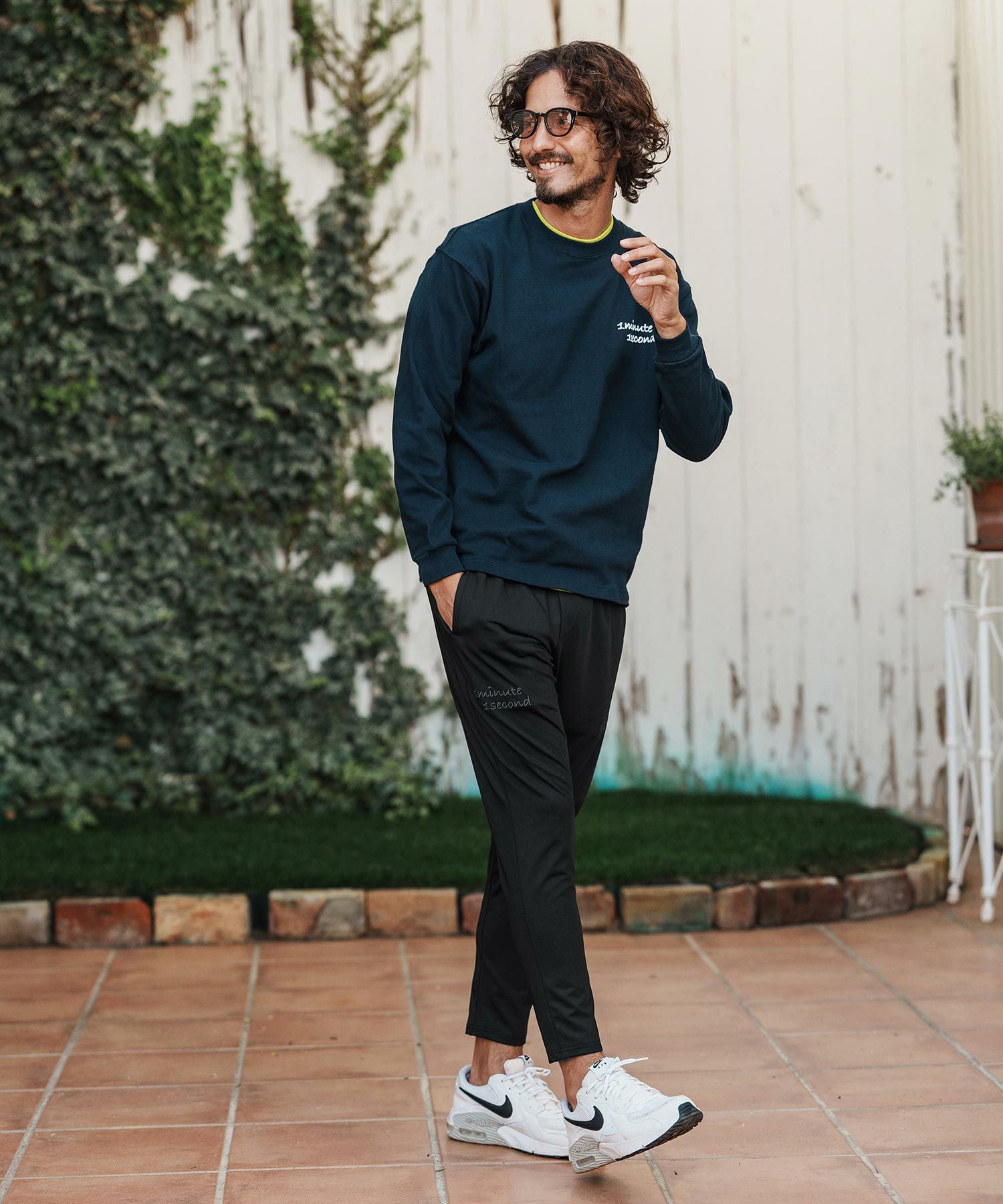 1minute 1second 【1minute 1second(ワンミニットワンセカンド)】cursive embroidery cardboard knit nylon pants イージーパンツ(1M26H050)