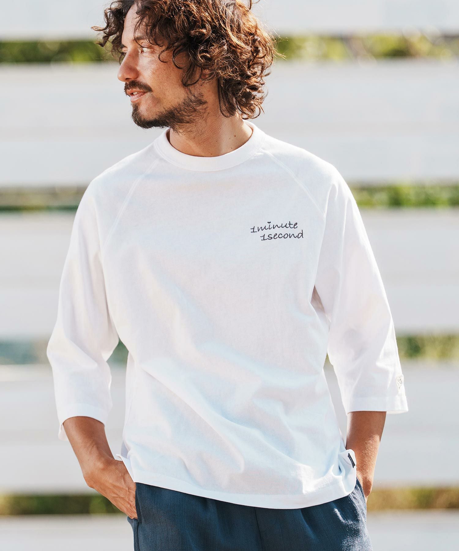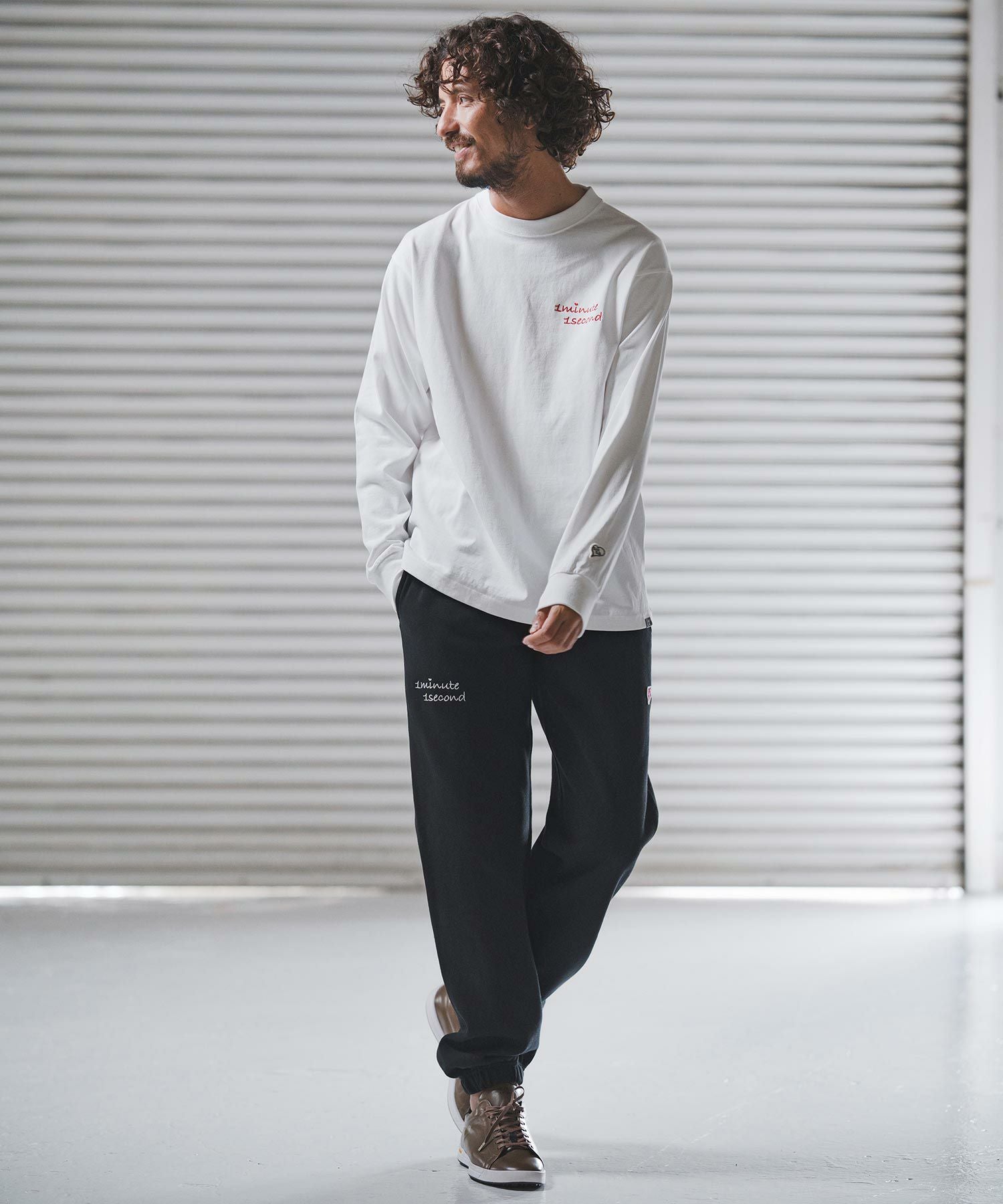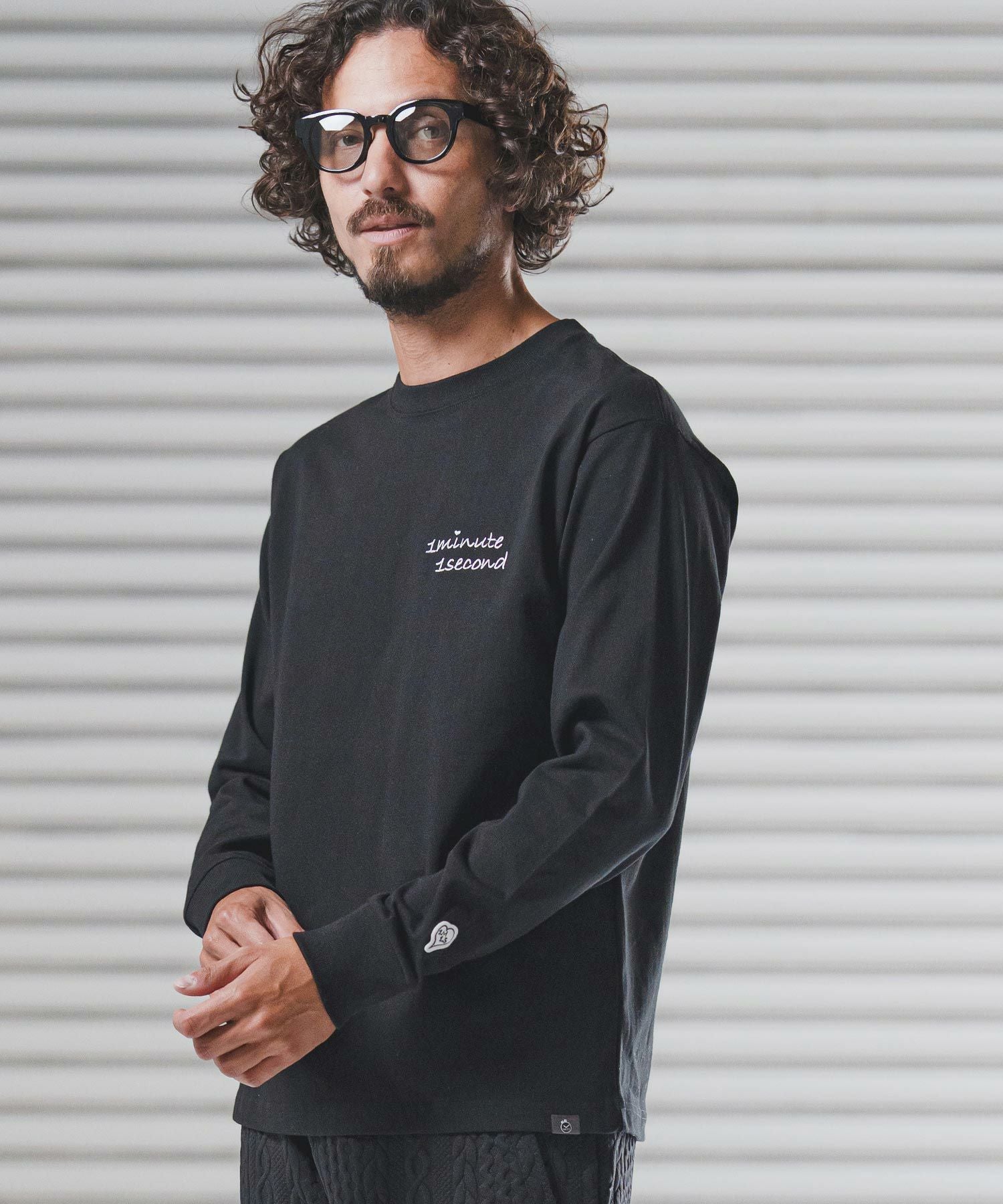 1minute 1second 【1minute 1second(ワンミニットワンセカンド)】9oz USA cotton long sleeve cut&sewn with cursive embroidery ロングスリーブTシャツ(1M25F340)