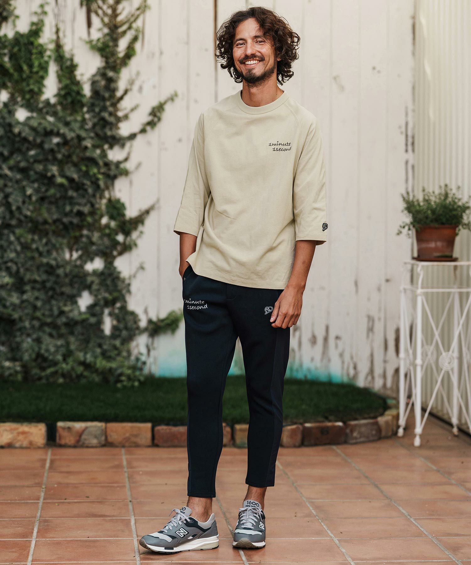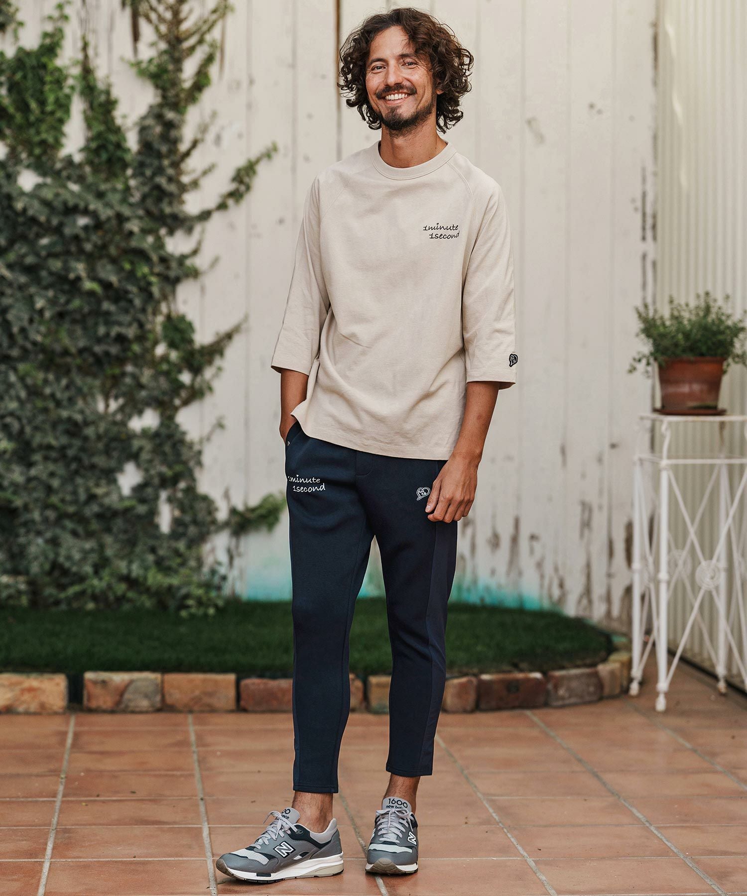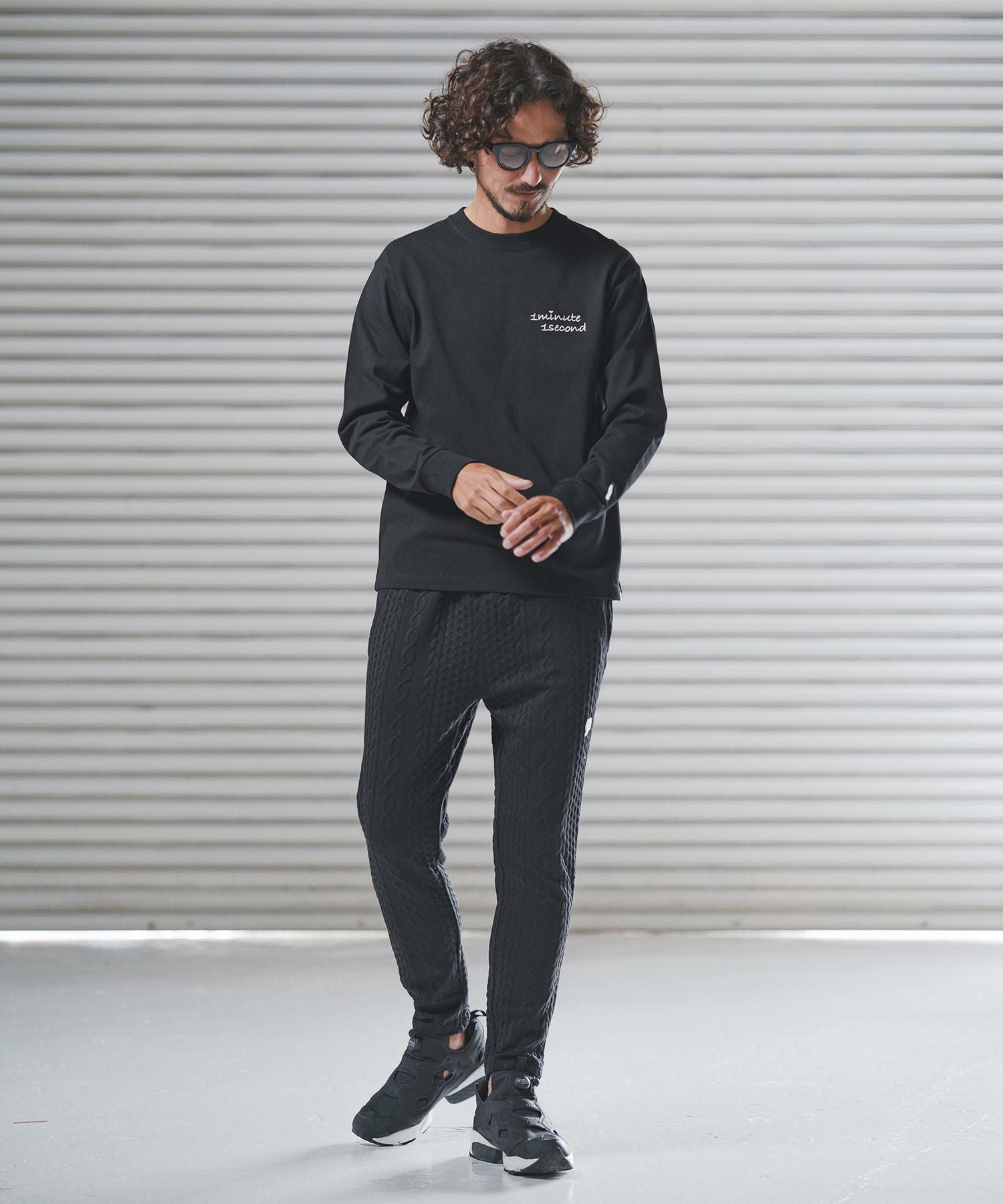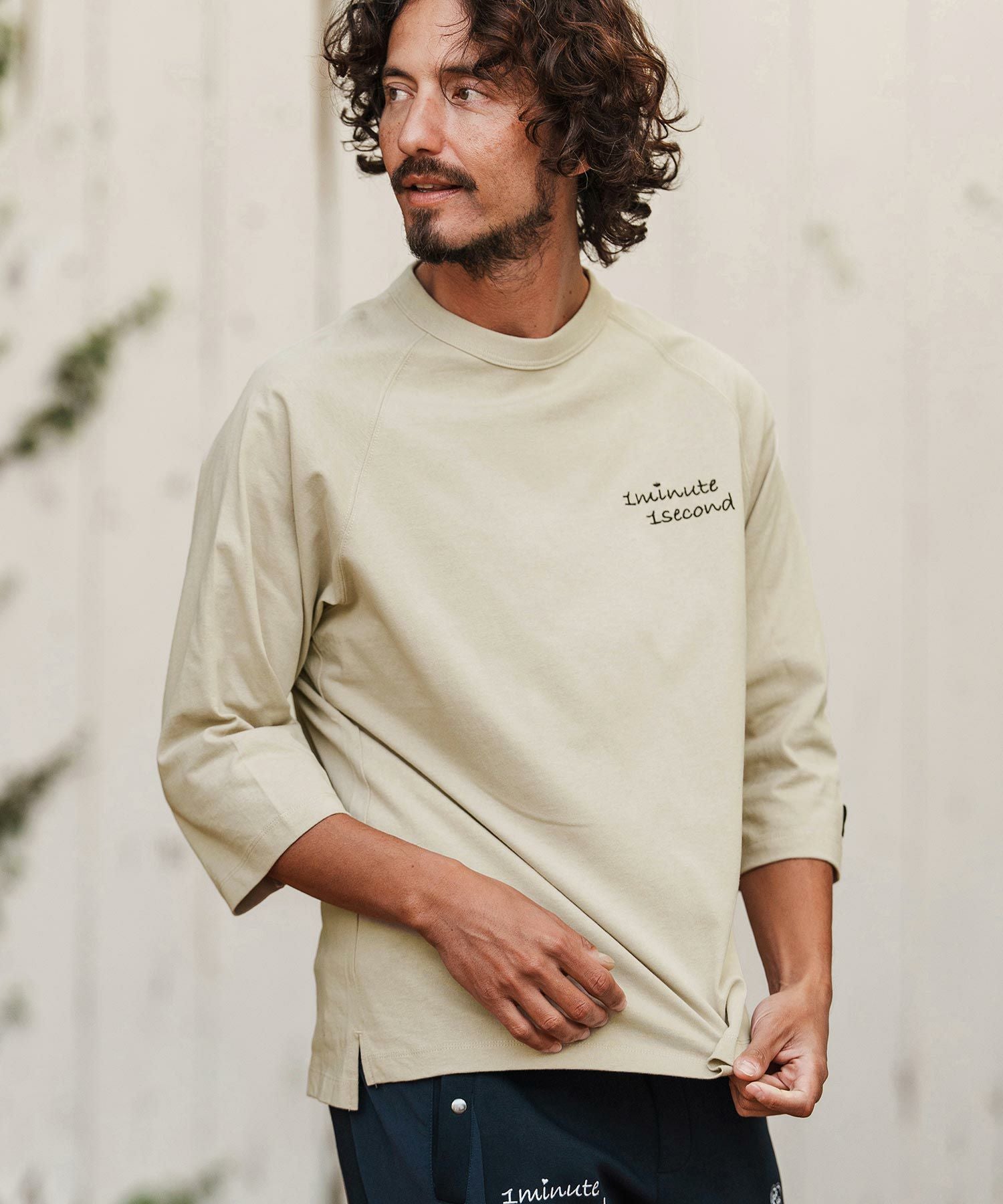 1minute 1second 【1minute 1second(ワンミニットワンセカンド)】cursive embroidery pigment long sleeve cut&sewn ロングスリーブTシャツ(1M26H330)