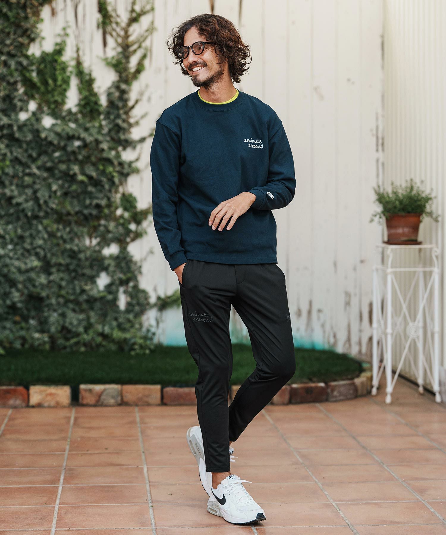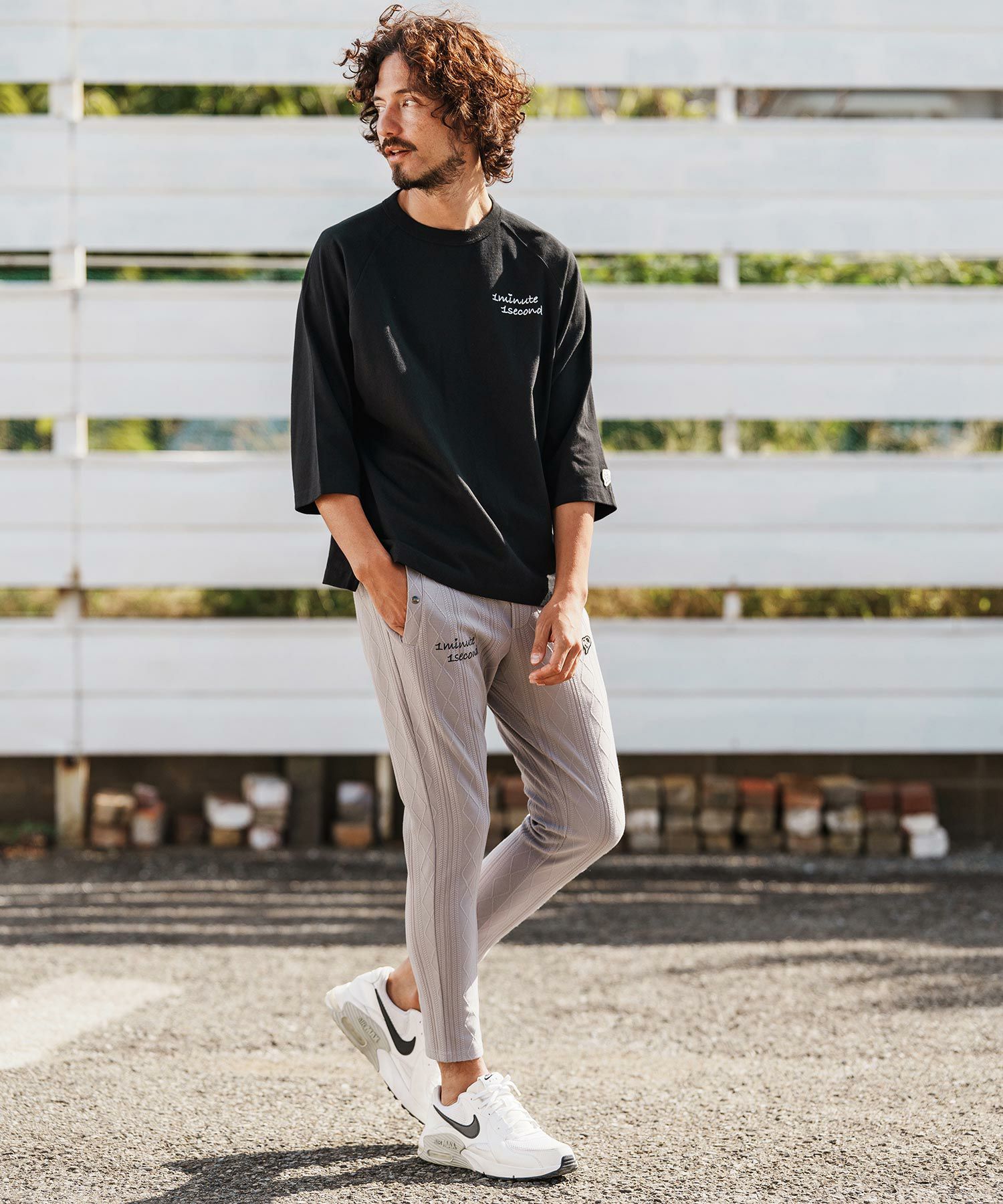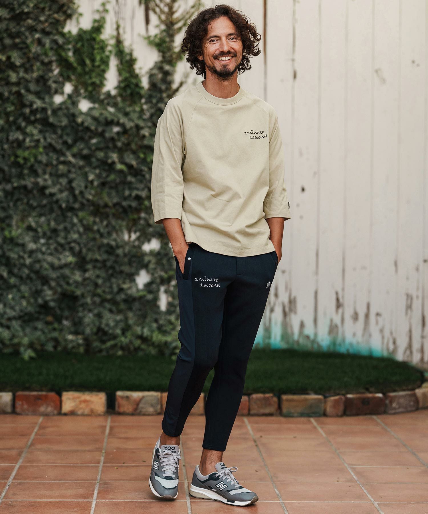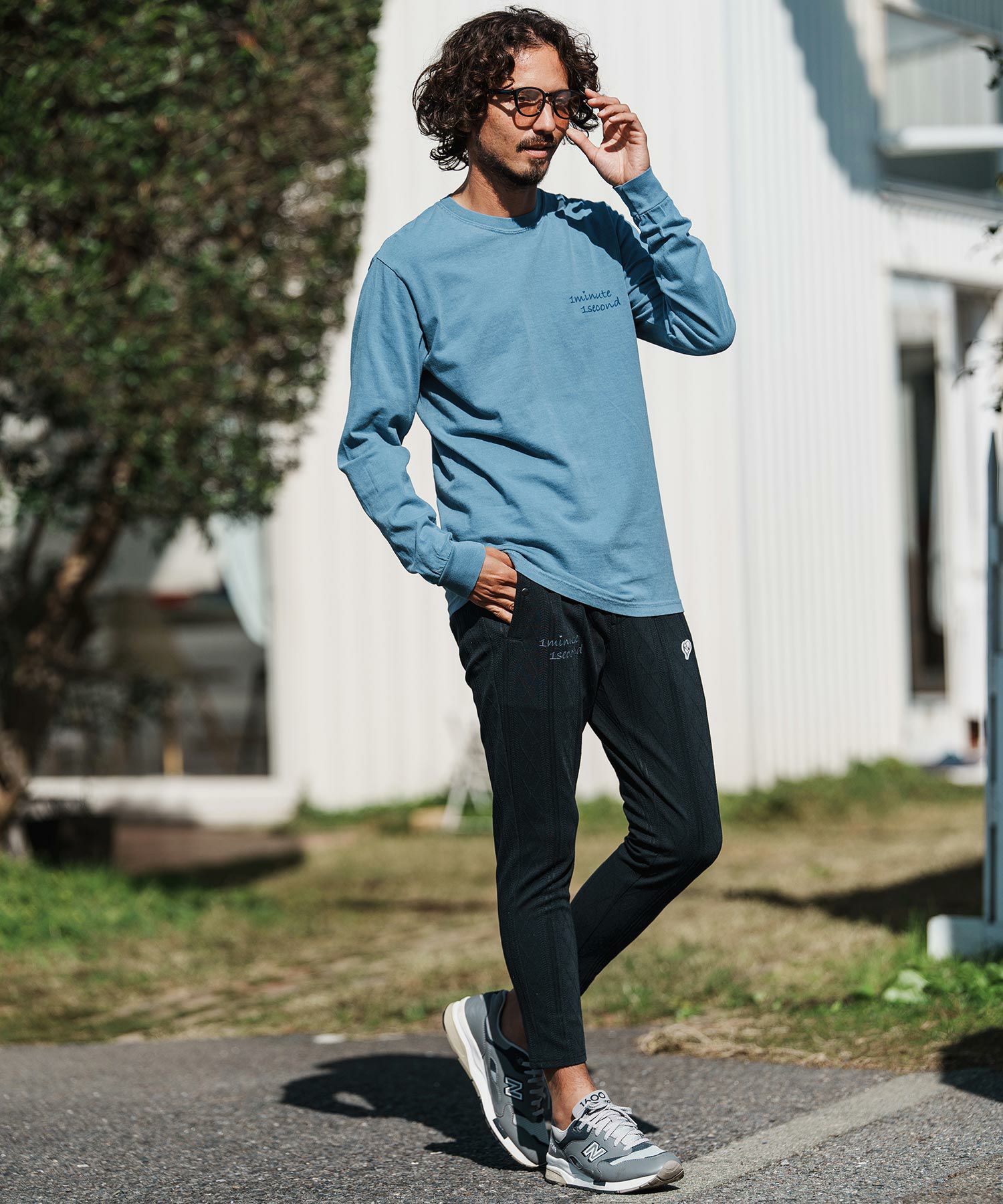 1minute 1second 【1minute 1second(ワンミニットワンセカンド)】cursive embroidery pigment long sleeve cut&sewn ロングスリーブTシャツ(1M26H330)