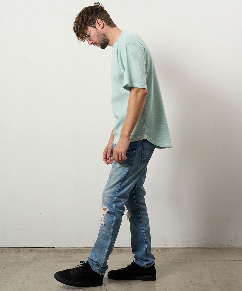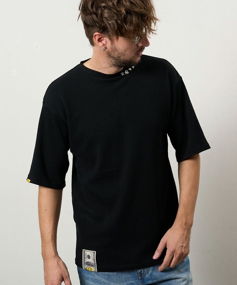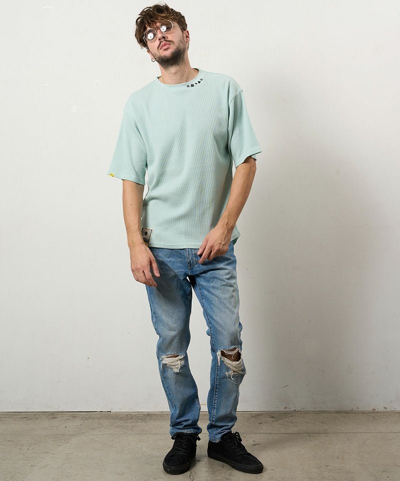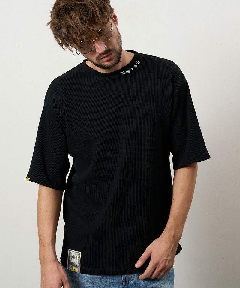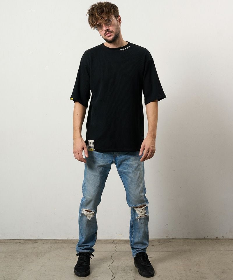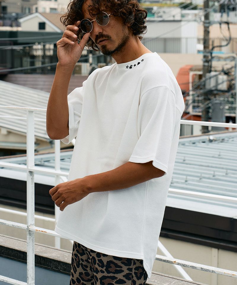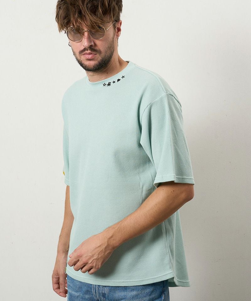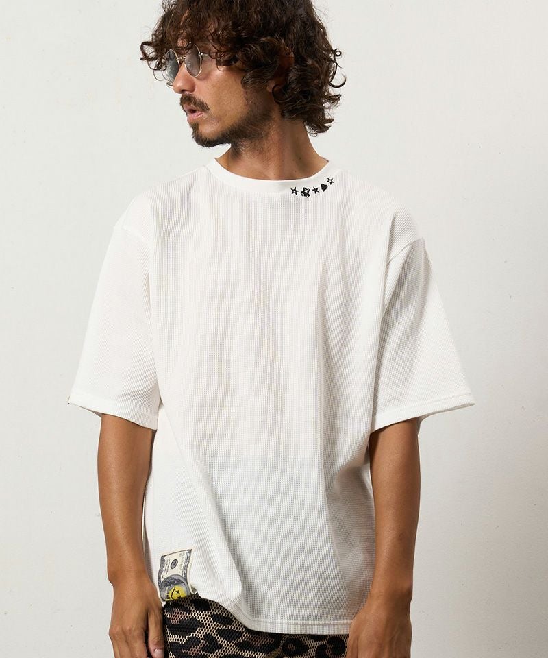 STUD MUFFIN 【STUD MUFFIN(スタッドマフィン)】【予約販売4月中旬~下旬入荷】コットンヘビーワッフル ワンポイント刺繍オーバーサイズSSシャツ Tシャツ(614-02878)
