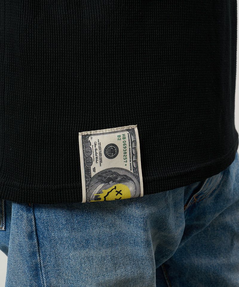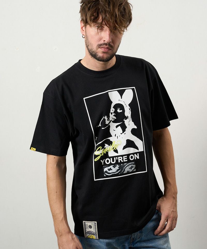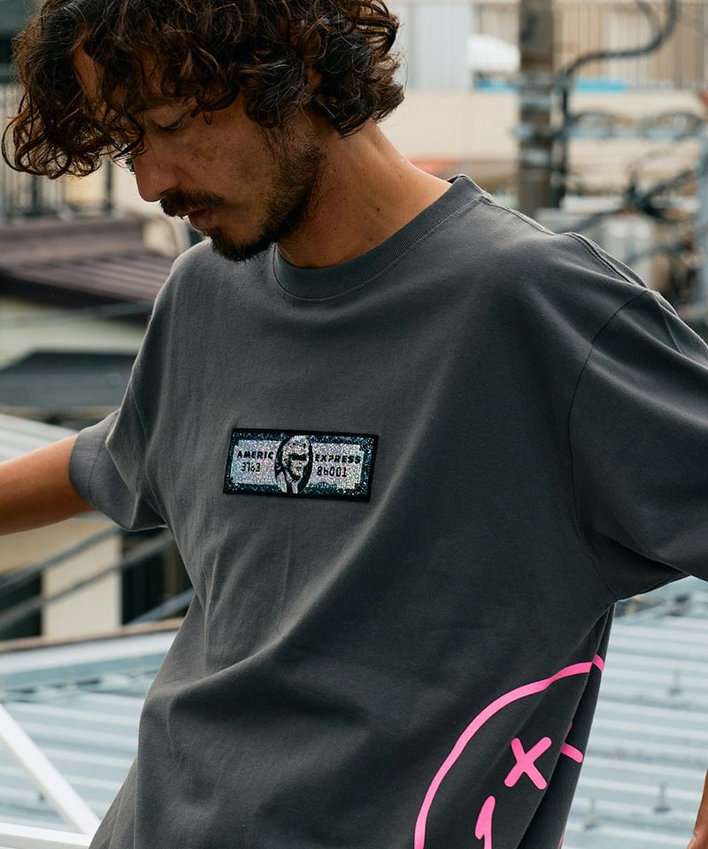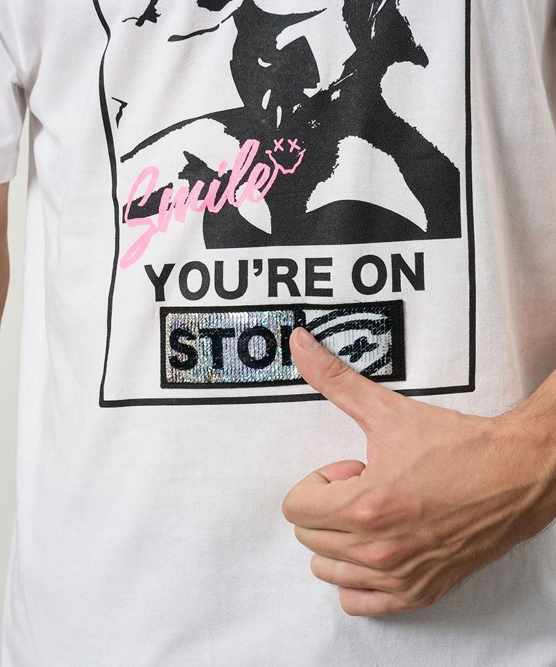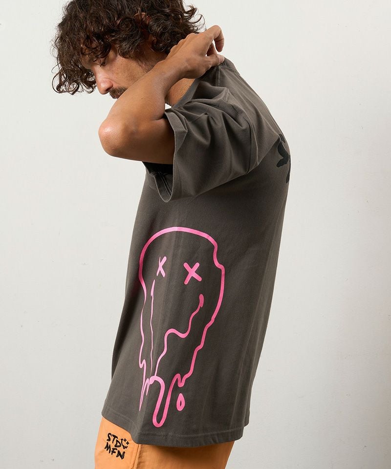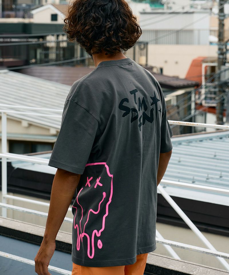 STUD MUFFIN 【STUD MUFFIN(スタッドマフィン)】【予約販売4月中旬~下旬入荷】5.6ozコットン天竺 クレジットシークイン&ドリップスマイル SSシャツ Tシャツ(614-02882)