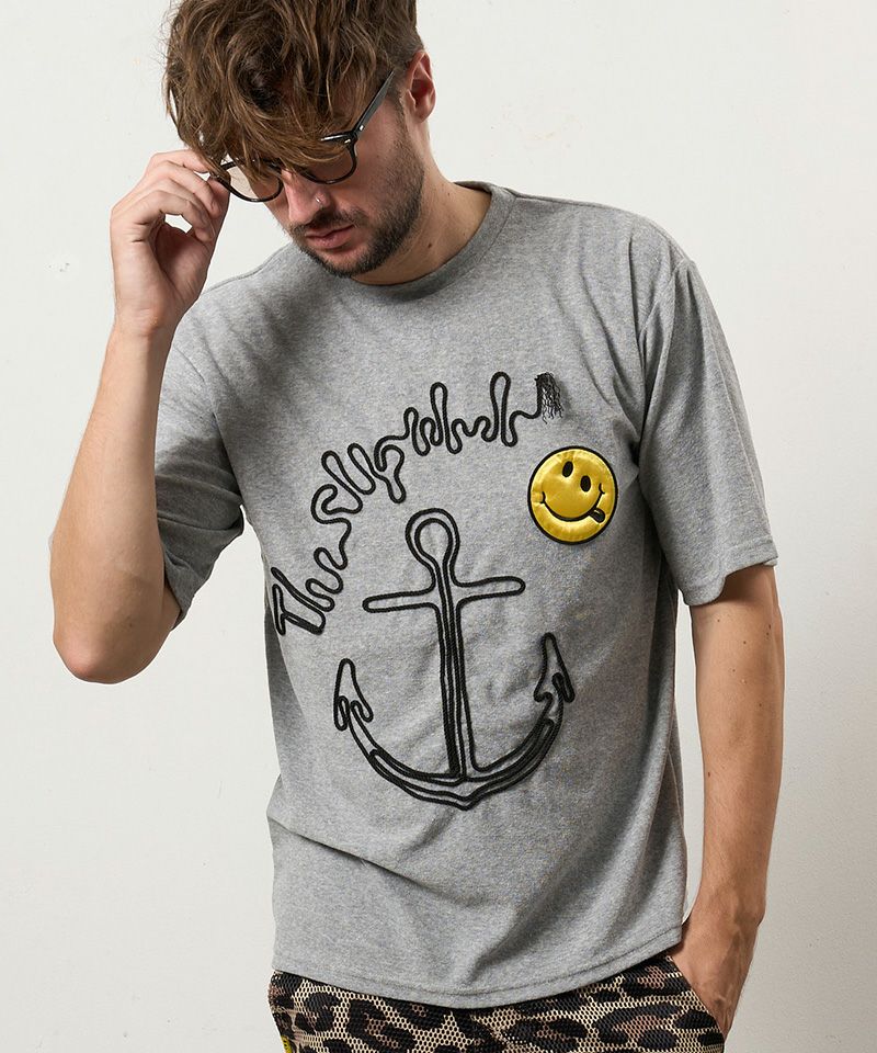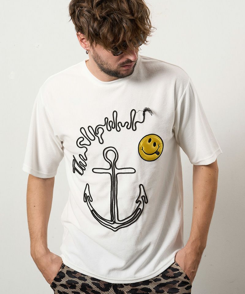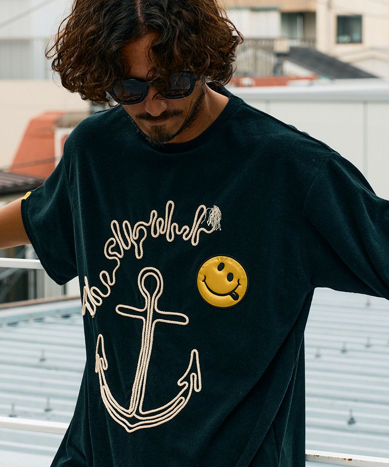 STUD MUFFIN 【STUD MUFFIN(スタッドマフィン)】【予約販売4月中旬~下旬入荷】TCパイル アンカーロープ刺繍スマイルパフパッチオーバーサイズSSシャツ Tシャツ(614-02880)