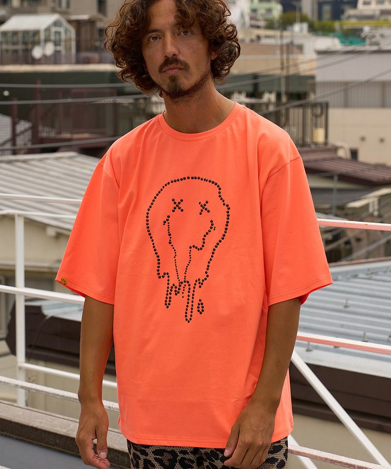 STUD MUFFIN 【STUD MUFFIN(スタッドマフィン)】【予約販売4月中旬~下旬入荷】7ozコットン天竺 メタルスタッズスマイル SSシャツ Tシャツ(614-02877)
