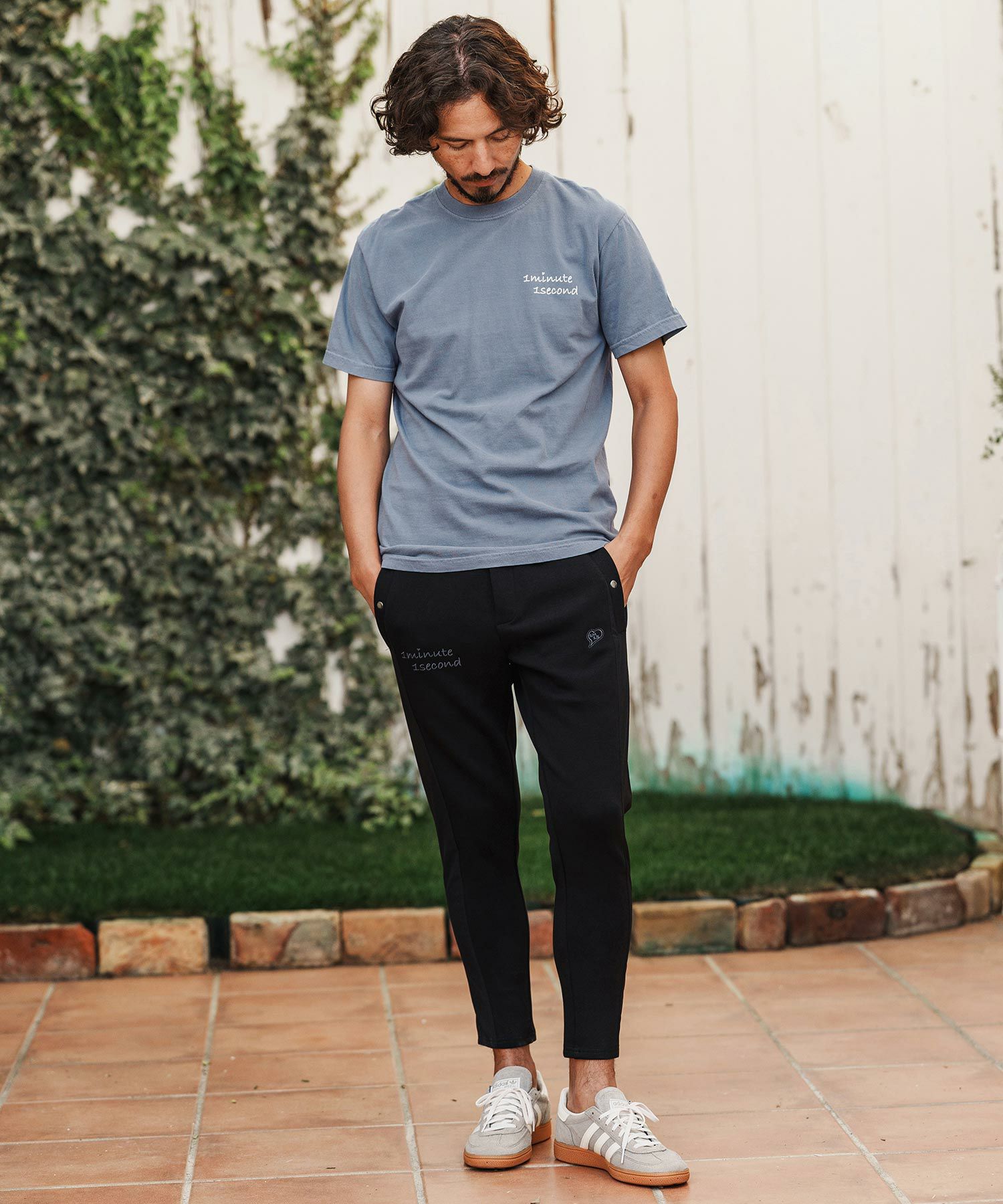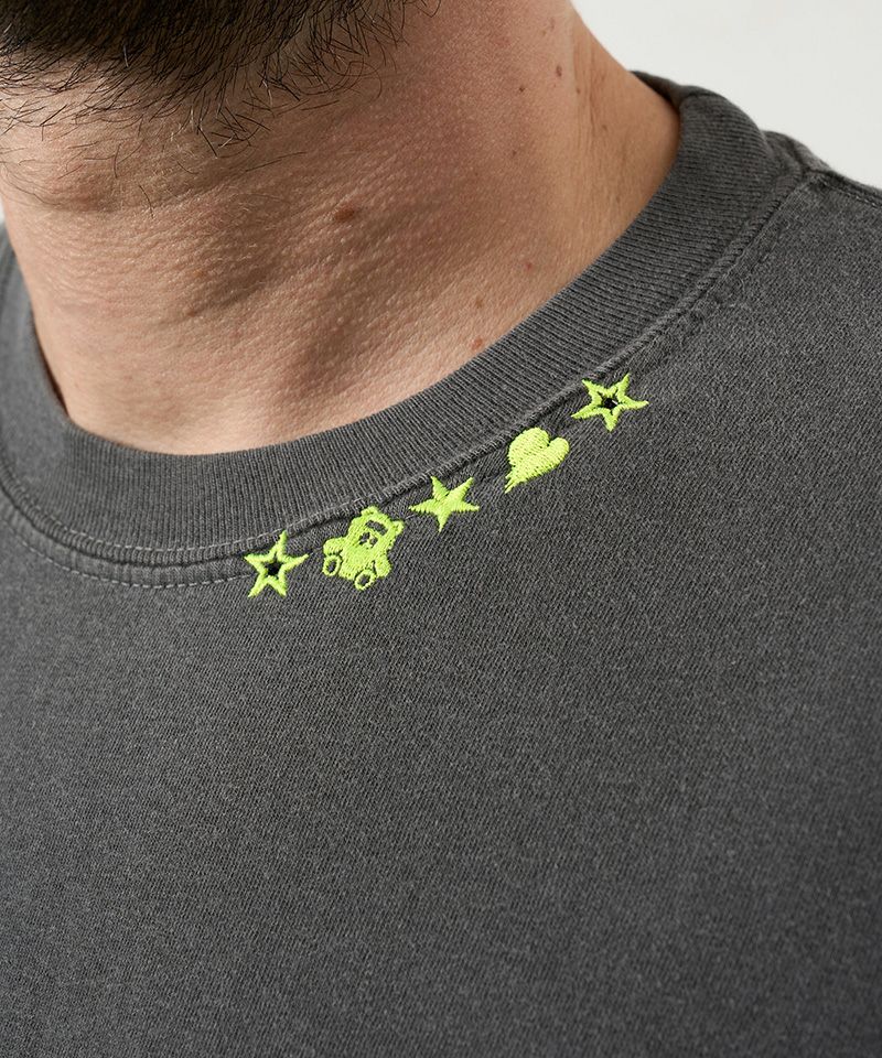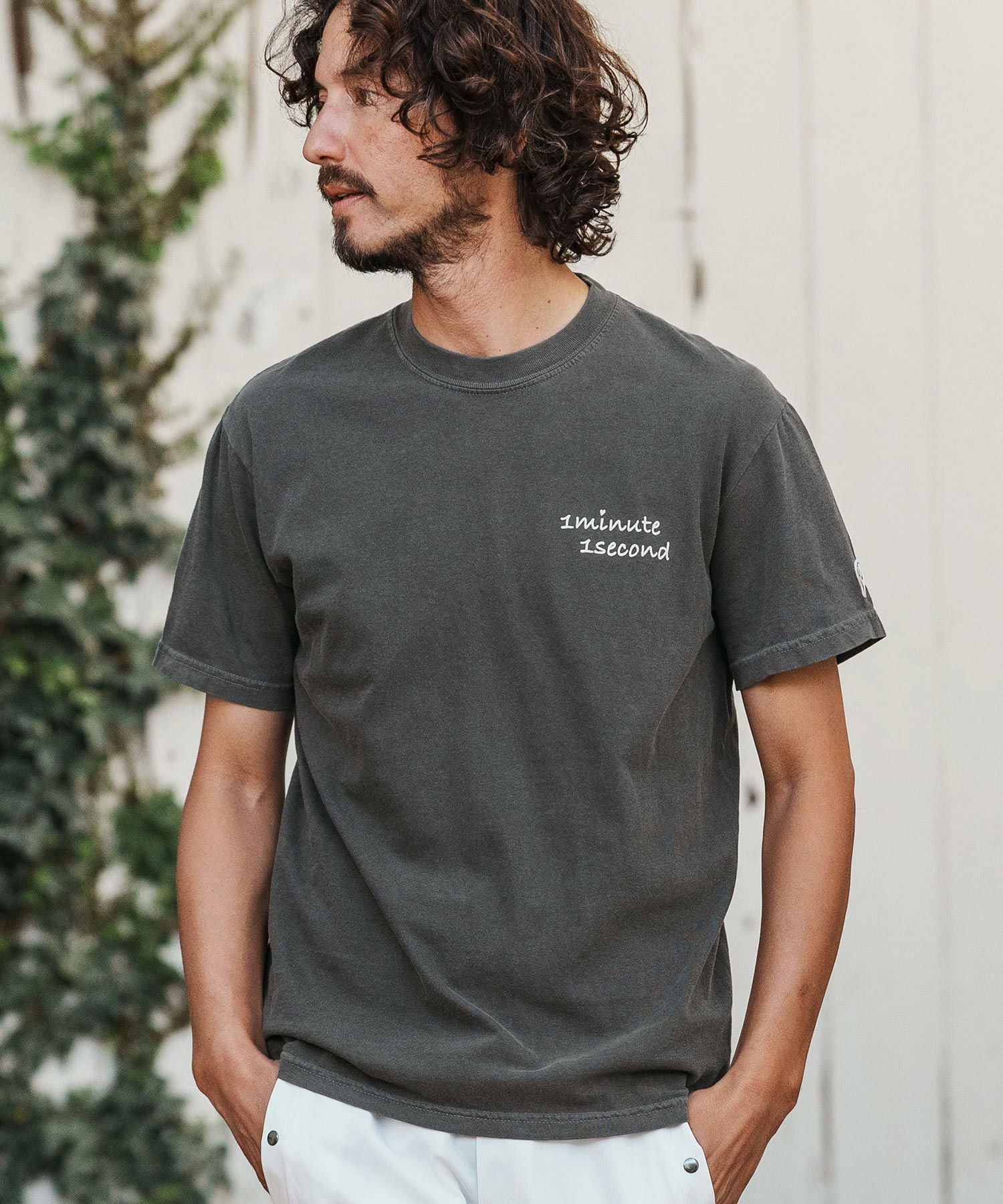 1minute 1second 【1minute 1second(ワンミニットワンセカンド)】cursive embroidery pigment T-shirt Tシャツ(1M26H340)