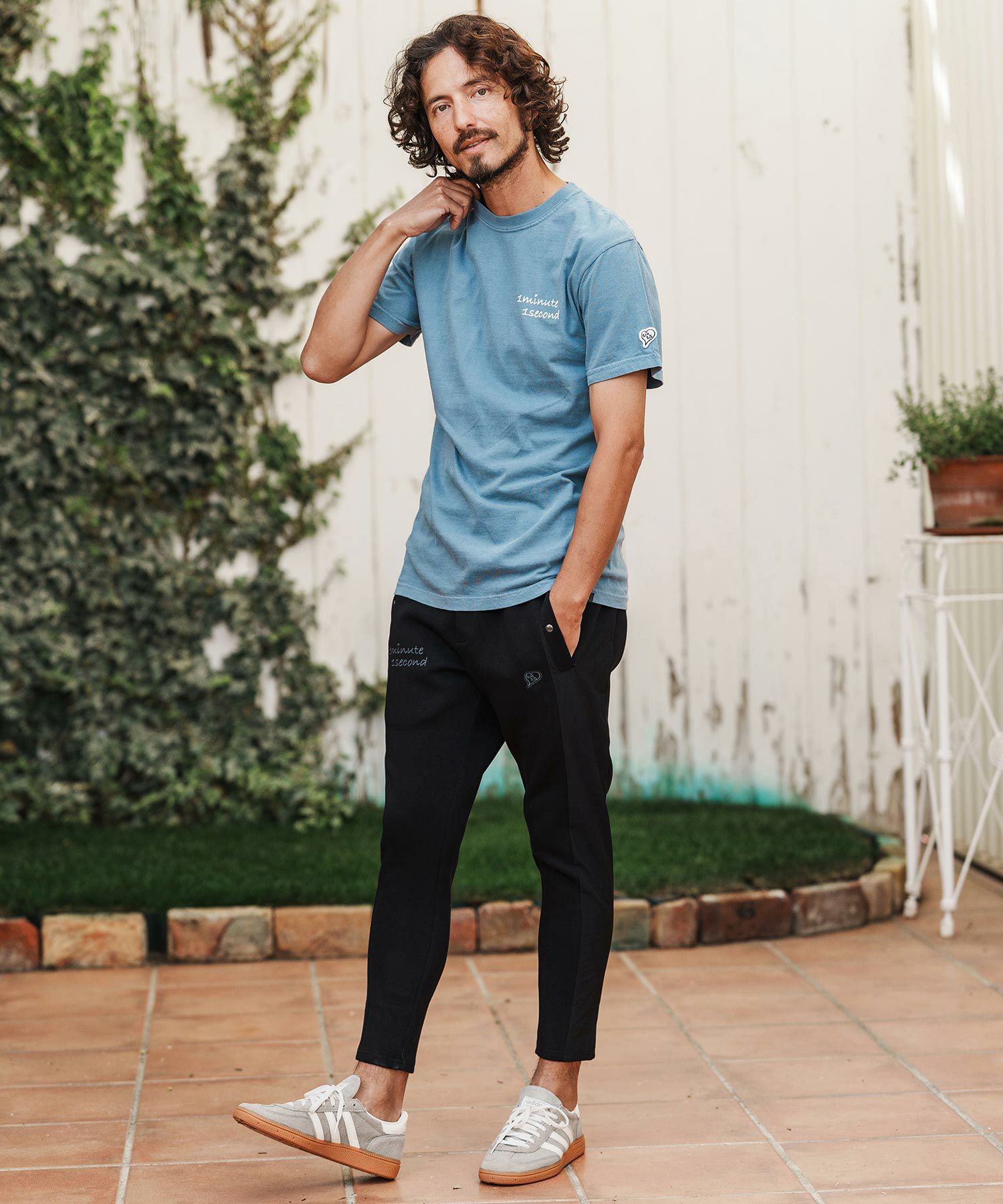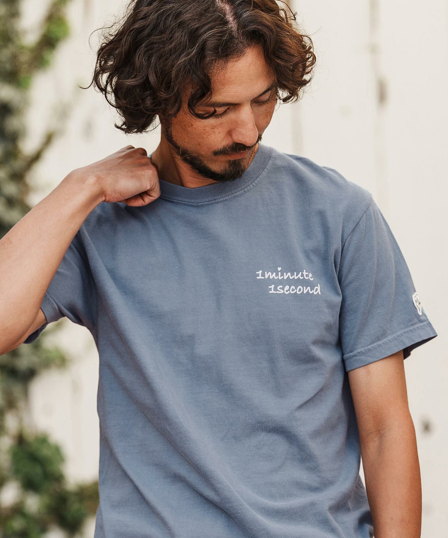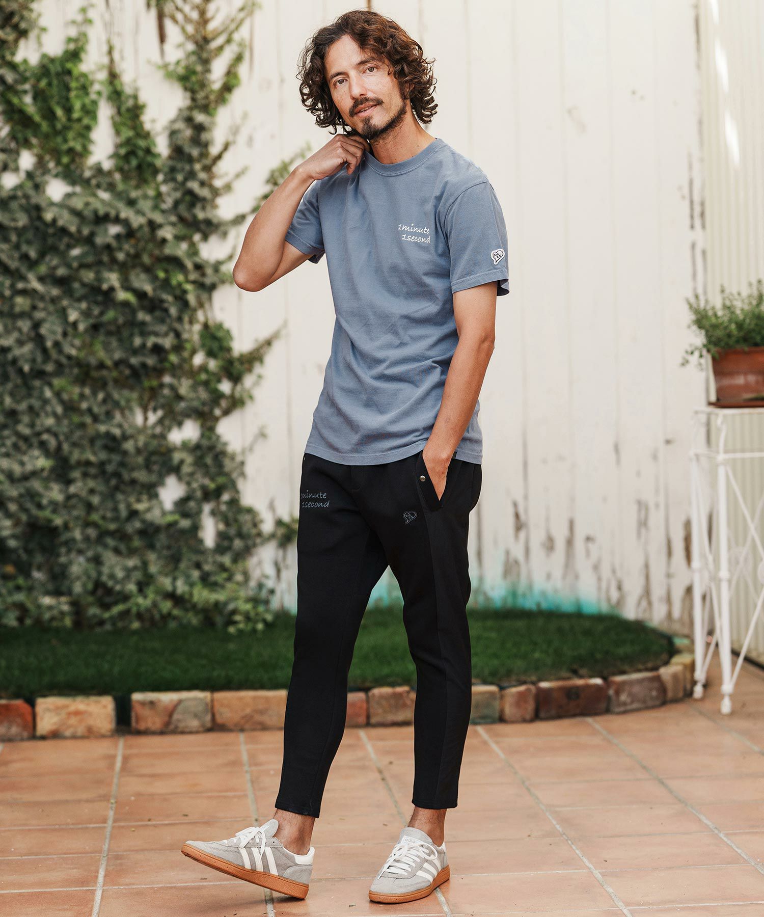 1minute 1second 【1minute 1second(ワンミニットワンセカンド)】cursive embroidery pigment T-shirt Tシャツ(1M26H340)