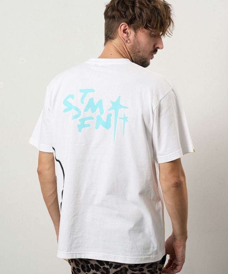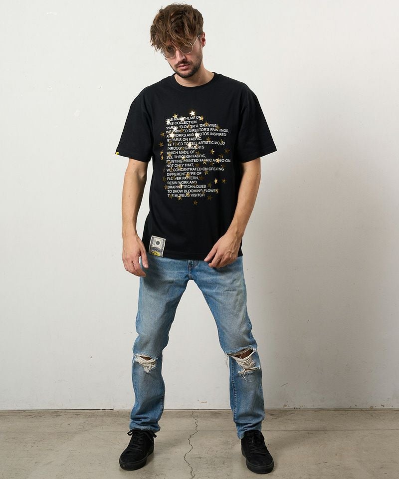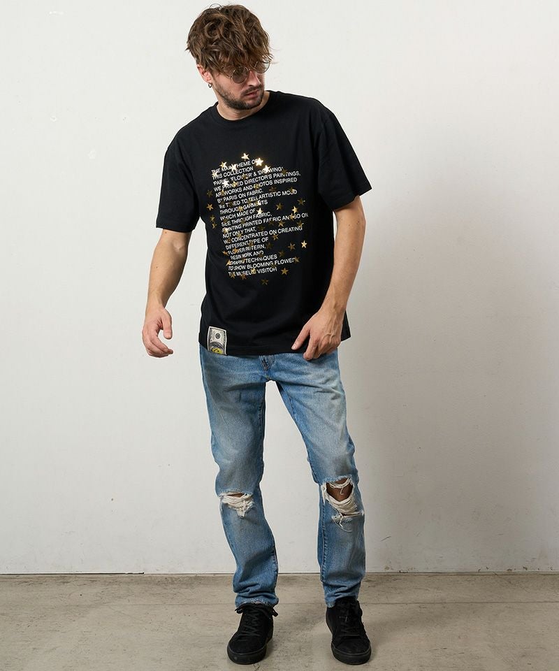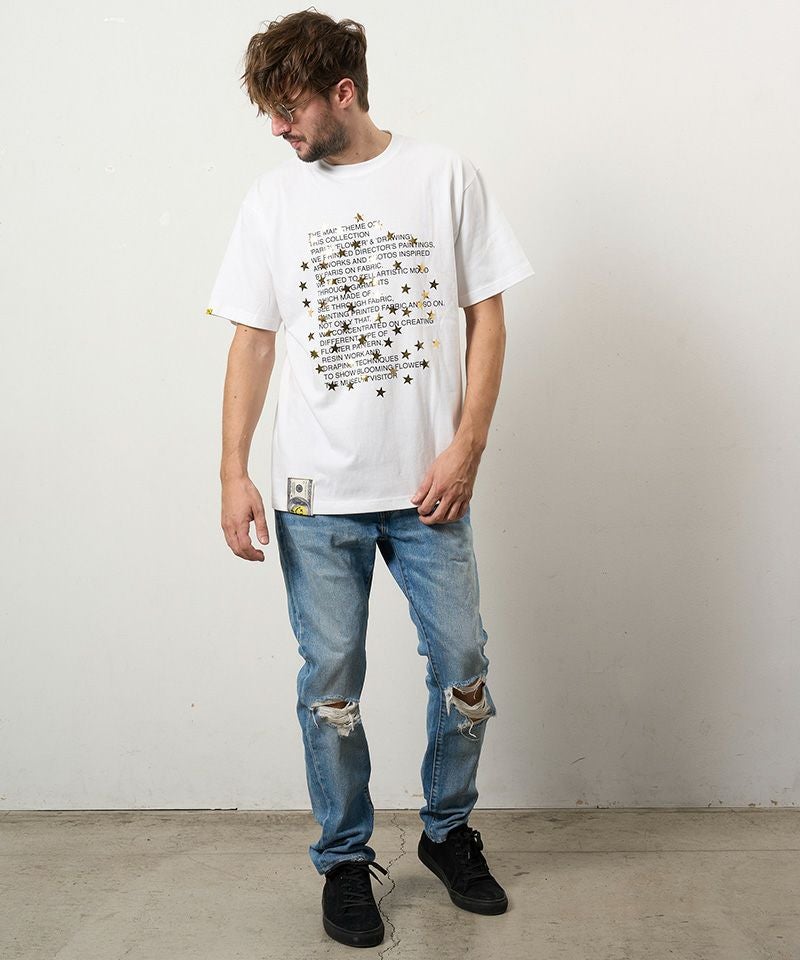STUD MUFFIN 【STUD MUFFIN(スタッドマフィン)】【予約販売3月中旬~下旬入荷】5.6ozコットン天竺 メッセージスター箔プリント SSシャツ Tシャツ(614-02876)