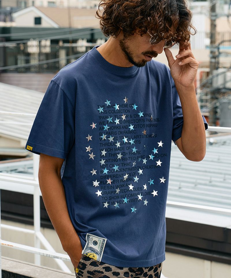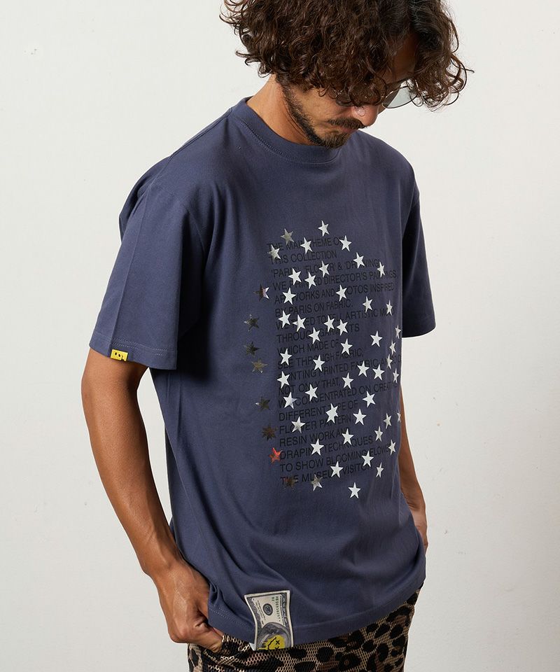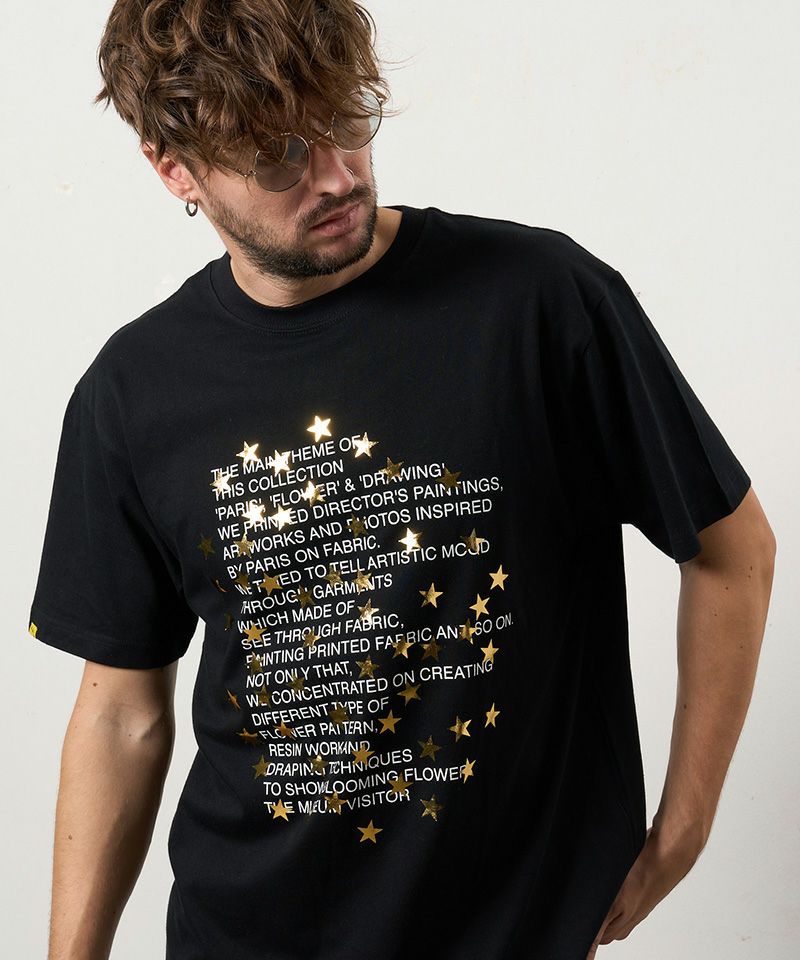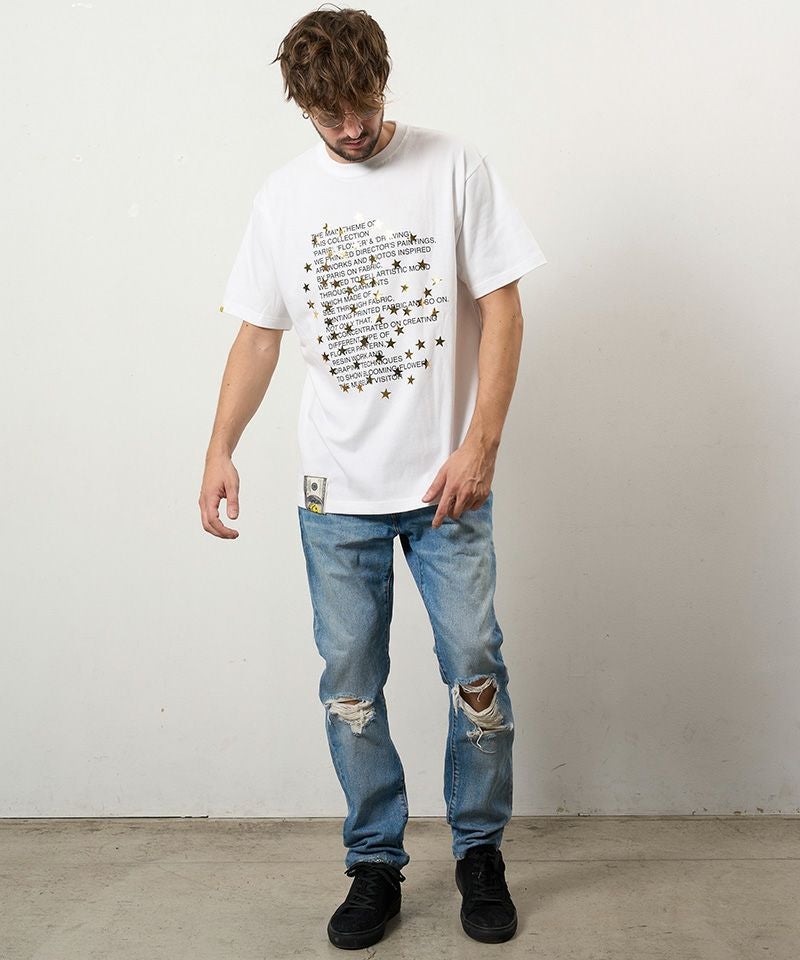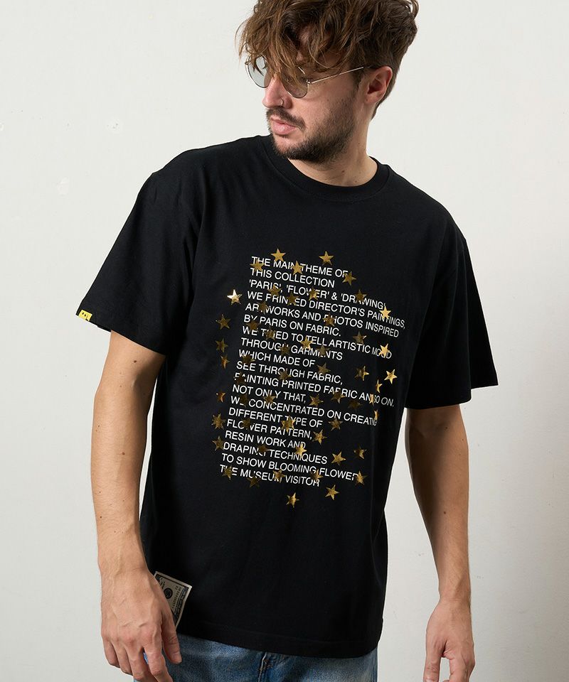 STUD MUFFIN 【STUD MUFFIN(スタッドマフィン)】【予約販売3月中旬~下旬入荷】5.6ozコットン天竺 メッセージスター箔プリント SSシャツ Tシャツ(614-02876)