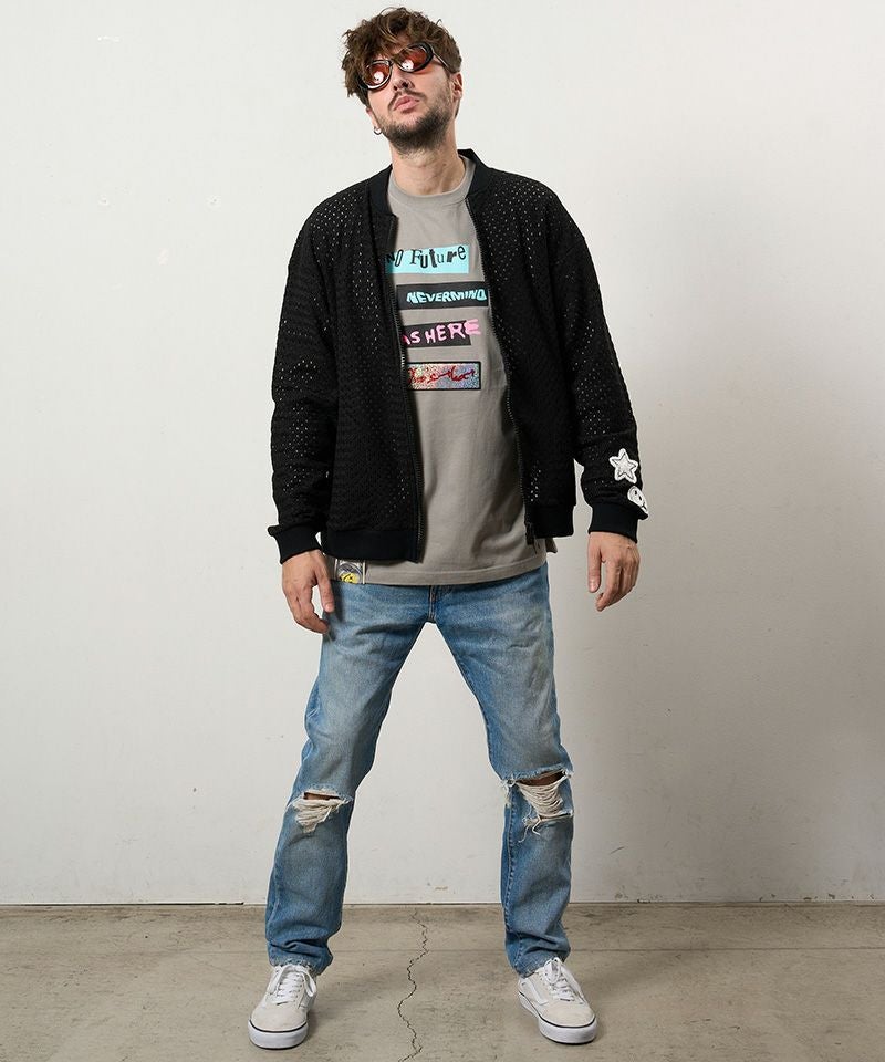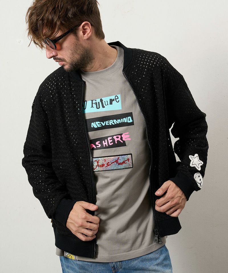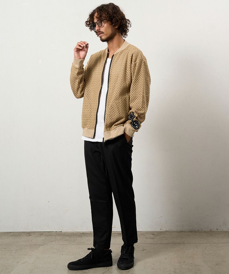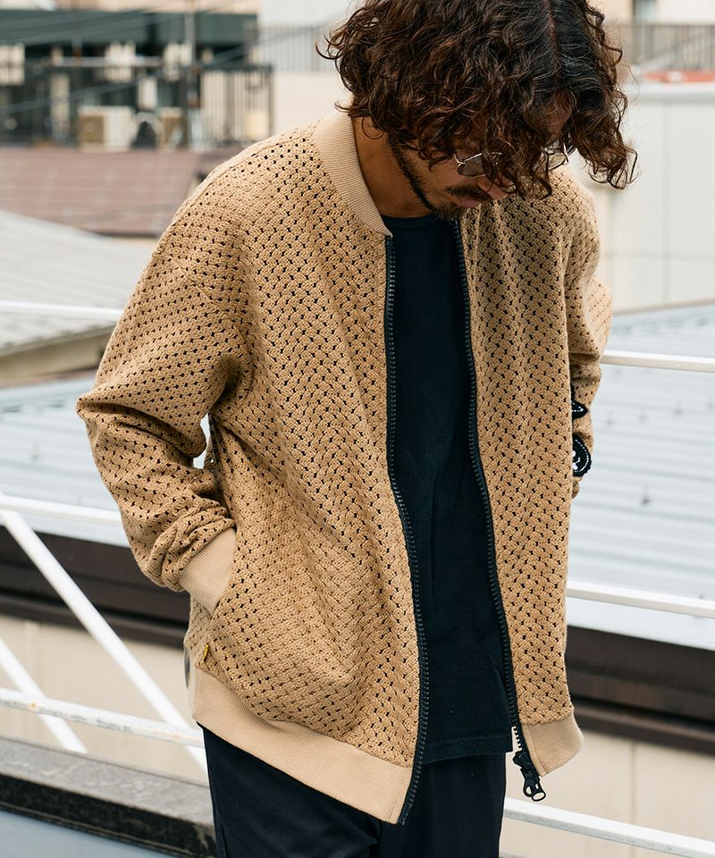 STUD MUFFIN 【STUD MUFFIN(スタッドマフィン)】コットンラッセルメッシュ ハンドニットワッペンビックジップブルゾン(614-09217)