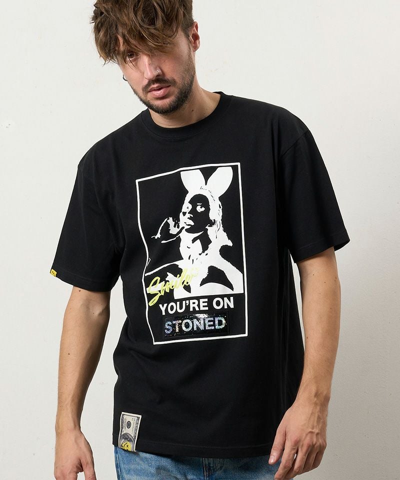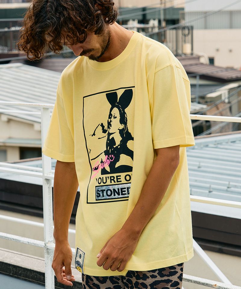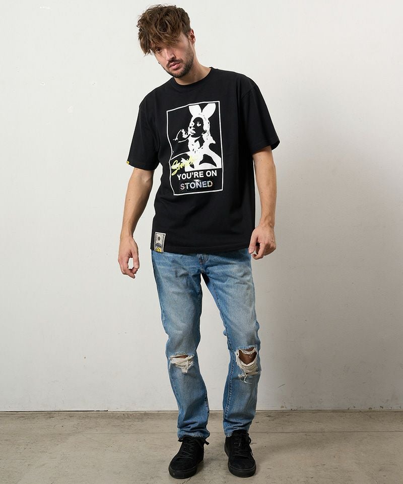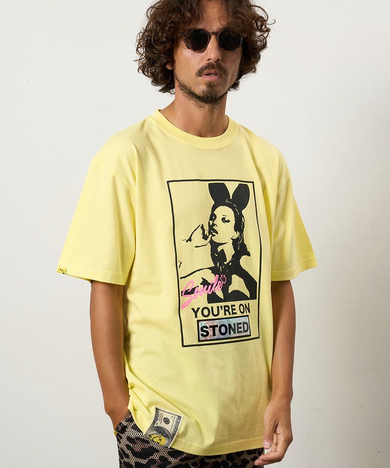 STUD MUFFIN 【STUD MUFFIN(スタッドマフィン)】【予約販売3月中旬~下旬入荷】5.6ozコットン天竺YOURE ON STONEDシークインSSシャツ Tシャツ(614-02875)