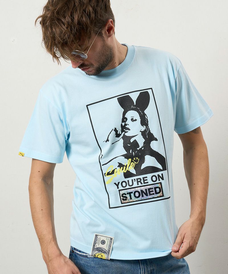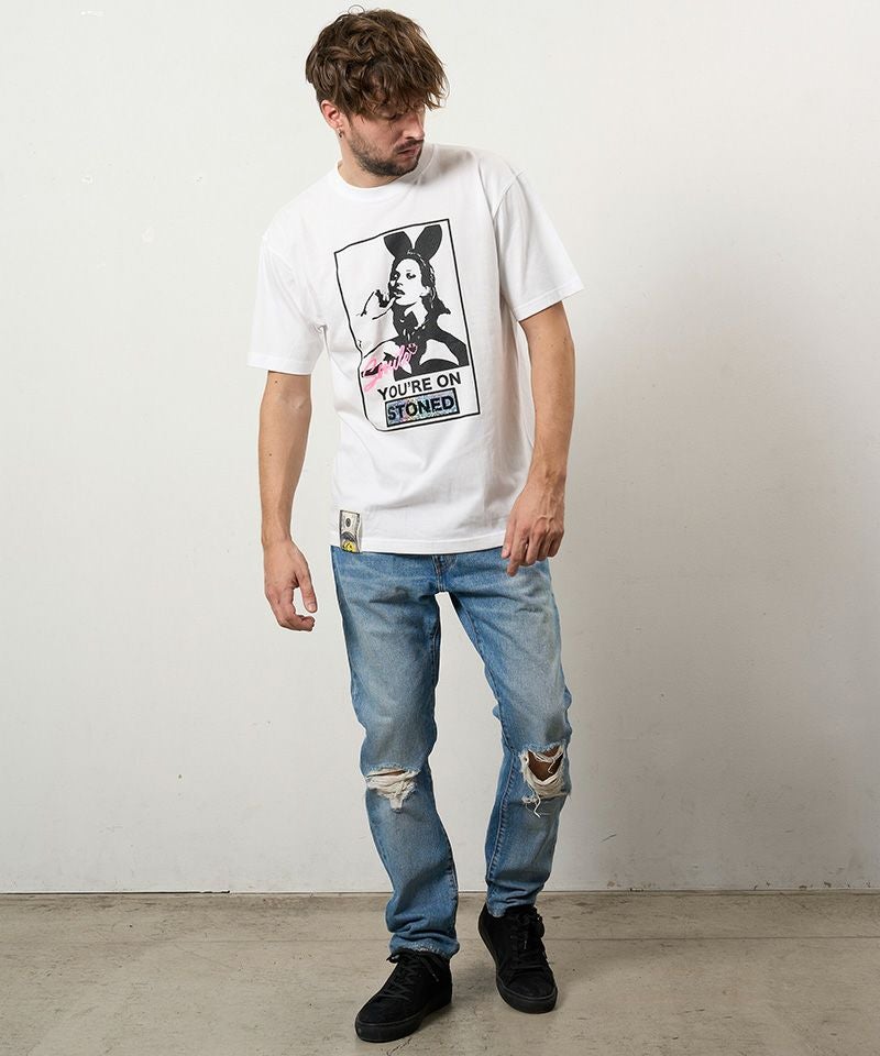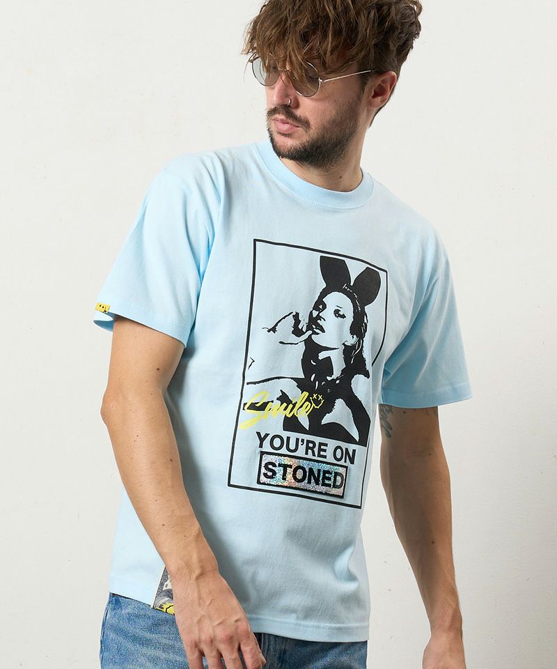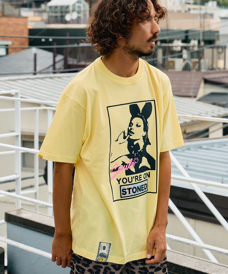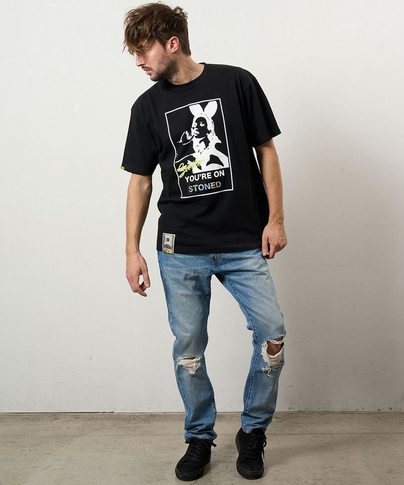 STUD MUFFIN 【STUD MUFFIN(スタッドマフィン)】【予約販売3月中旬~下旬入荷】5.6ozコットン天竺YOURE ON STONEDシークインSSシャツ Tシャツ(614-02875)