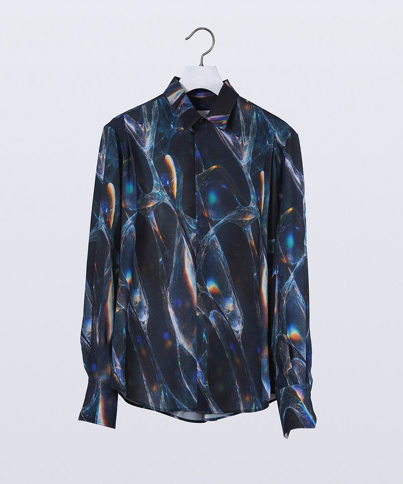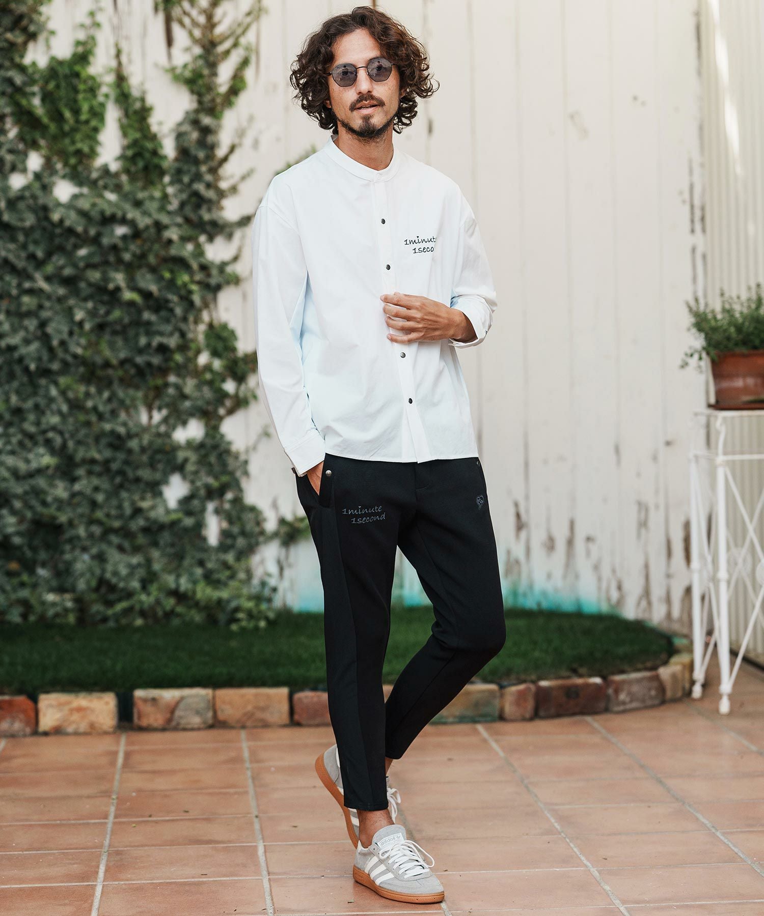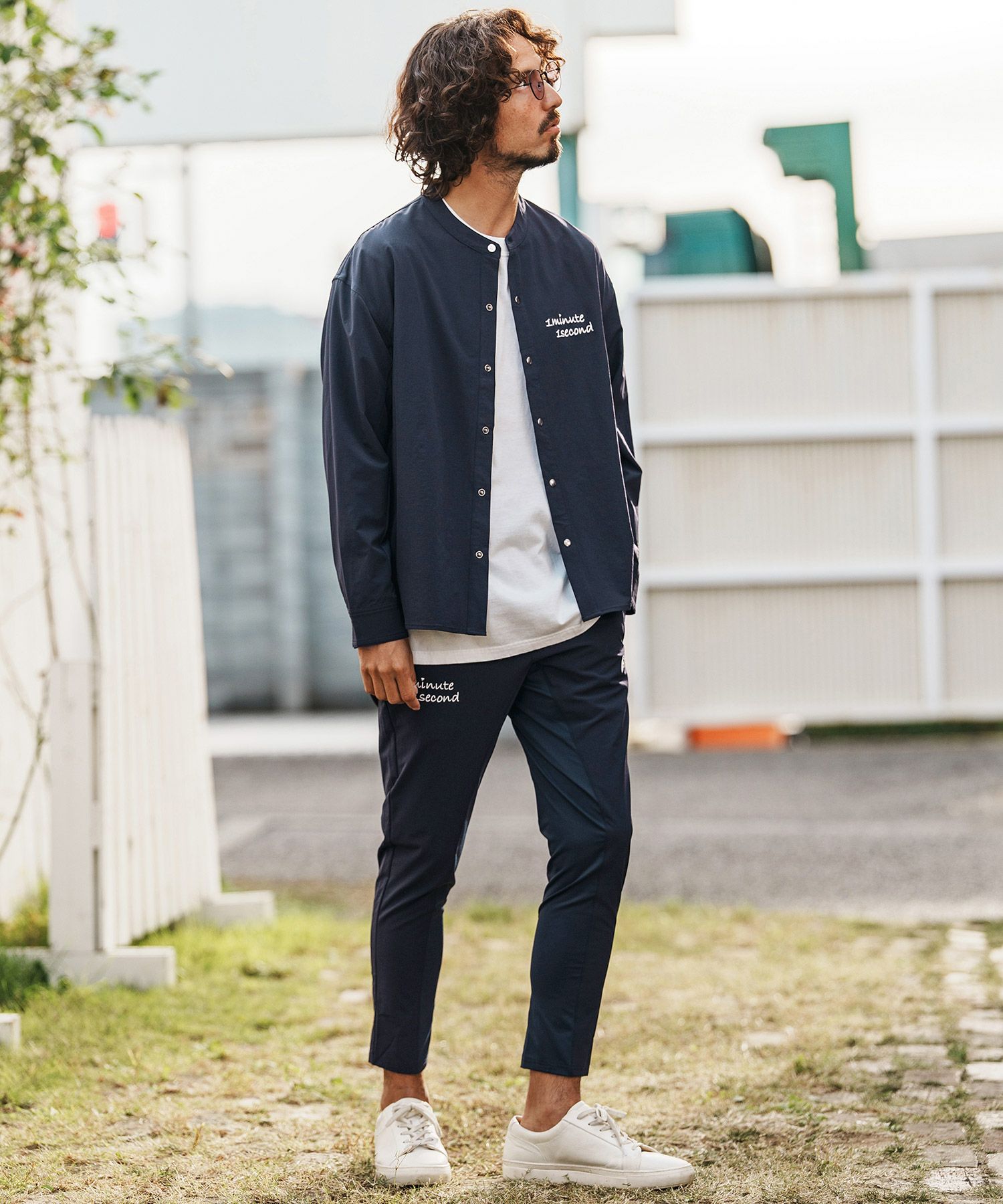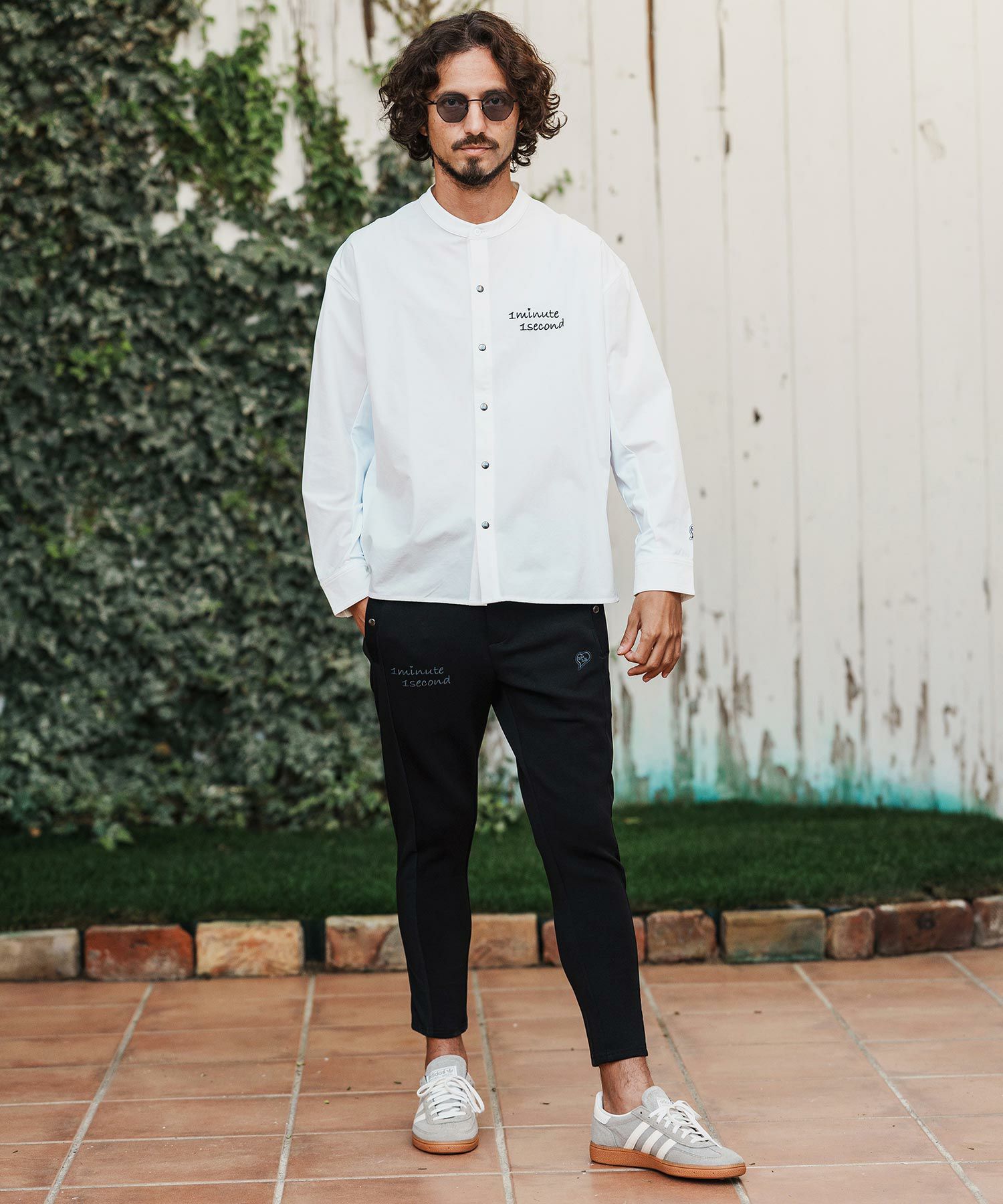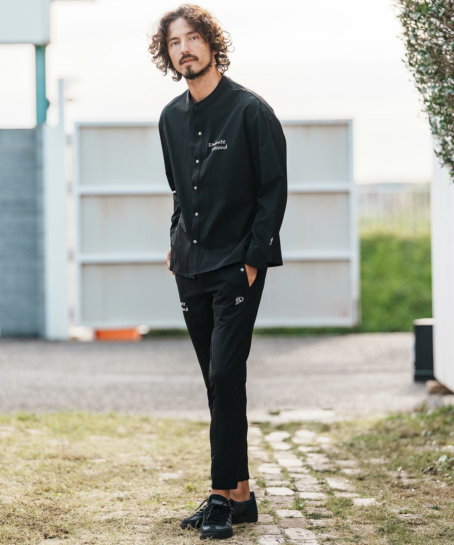 1minute 1second 【1minute 1second(ワンミニットワンセカンド)】cursive embroidery nylon jersey shirt スタンドカラーシャツ(1M26H020)