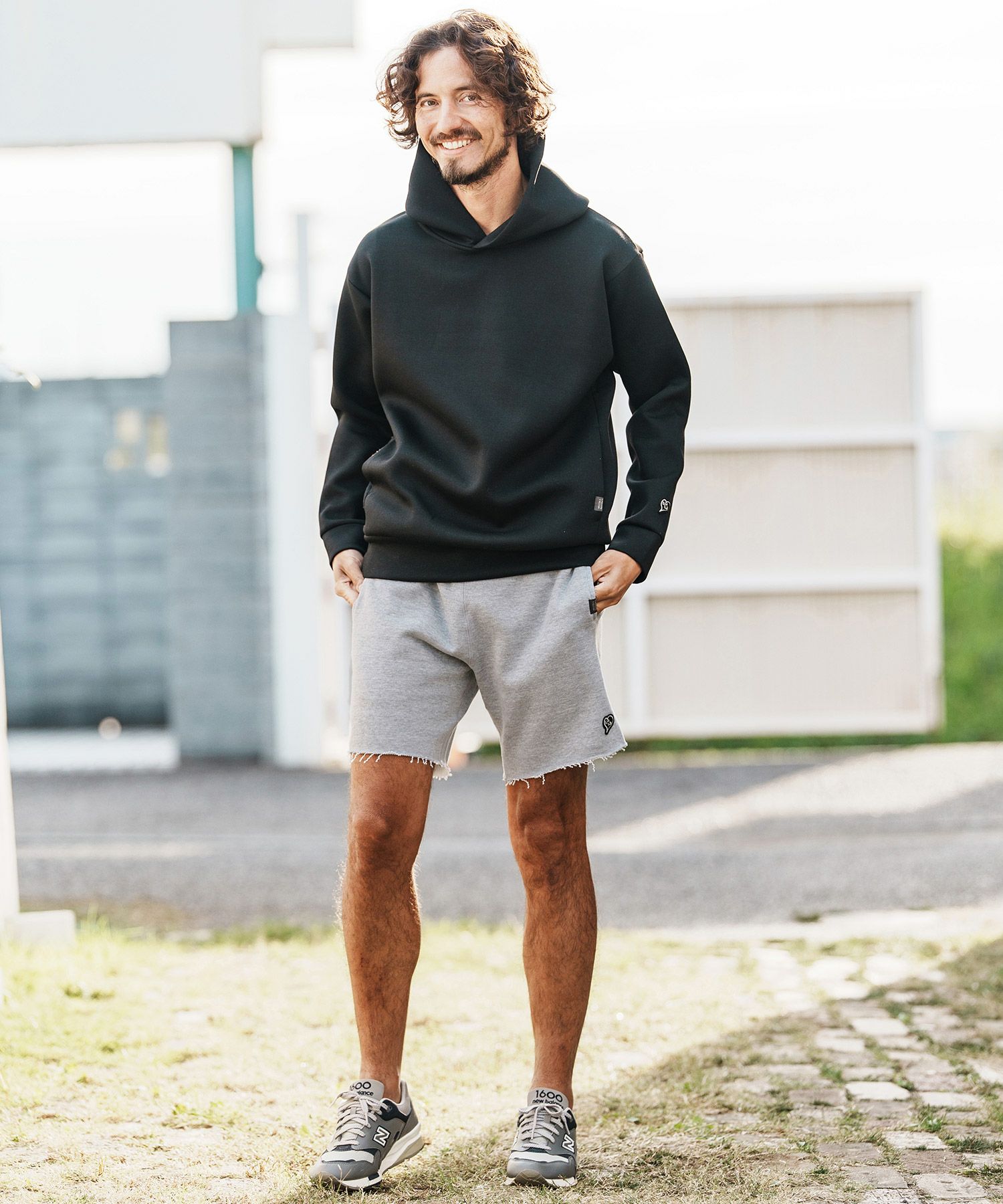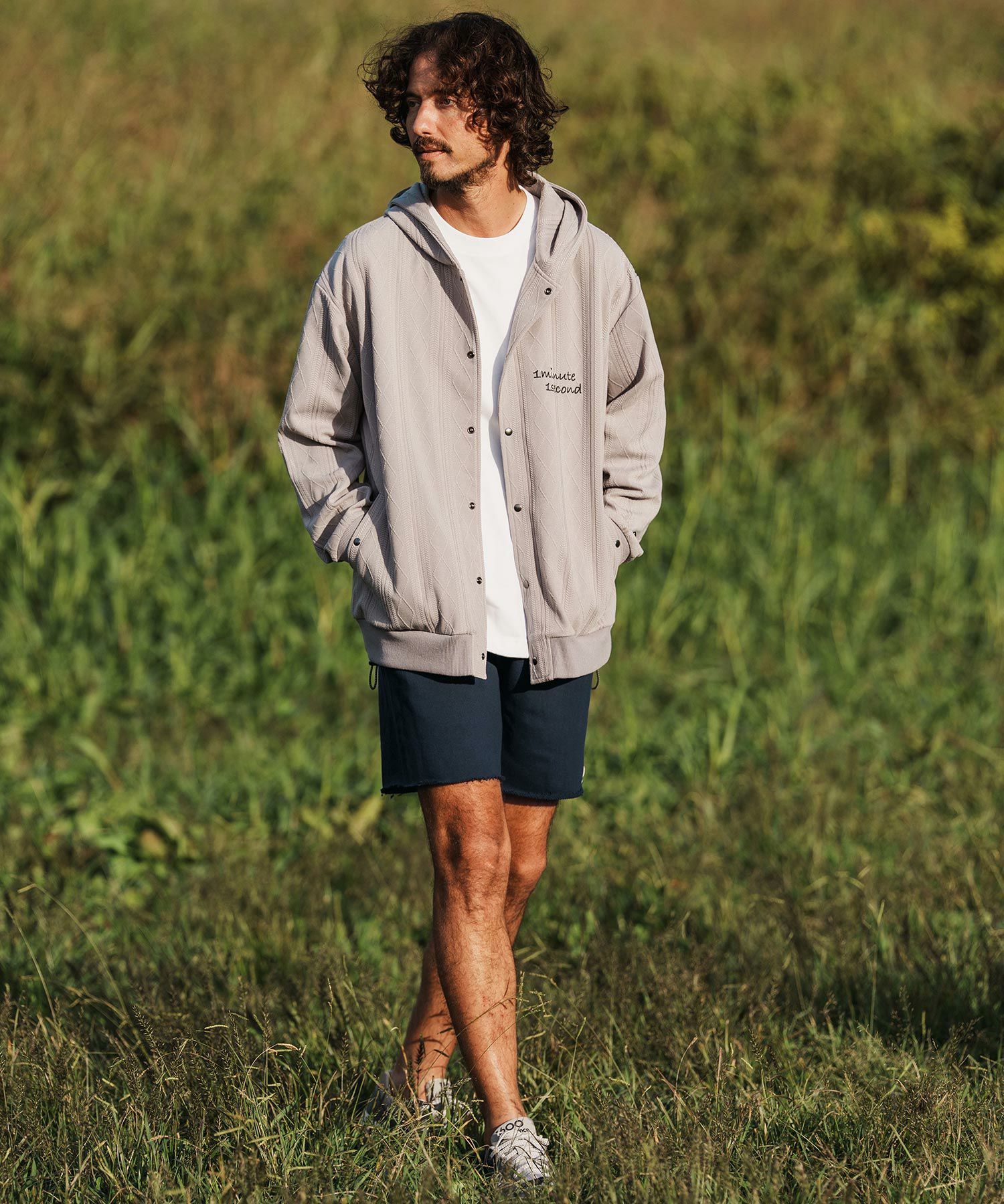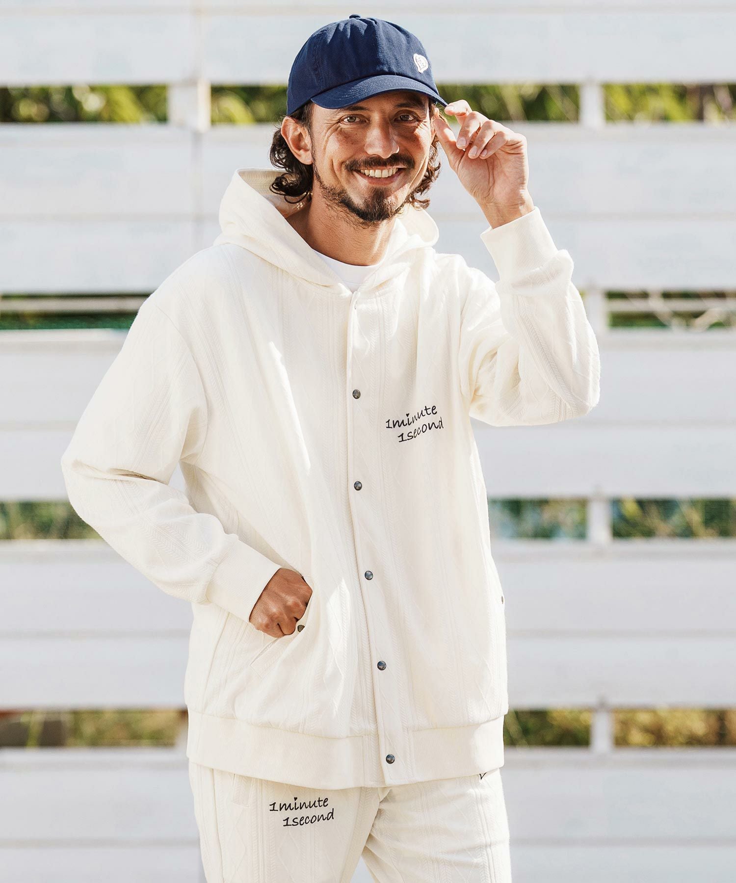 1minute 1second 【1minute 1second(ワンミニットワンセカンド)】cursive embroidery cardboard knit nylon hoodie パーカー(1M26H040)