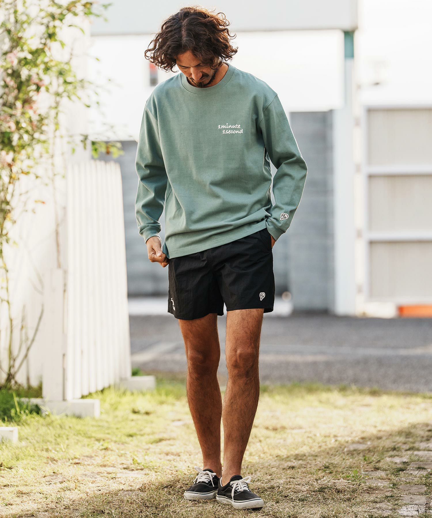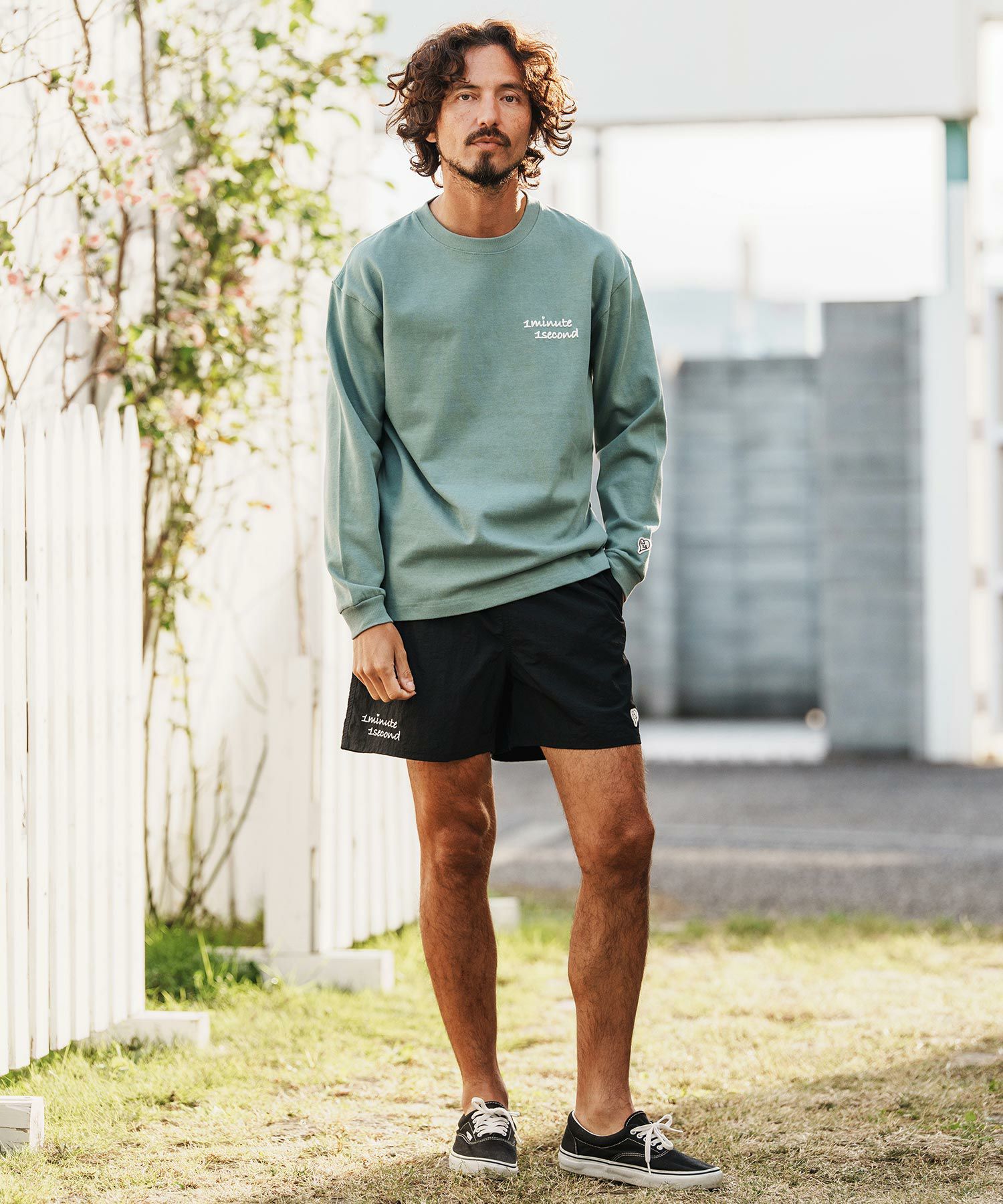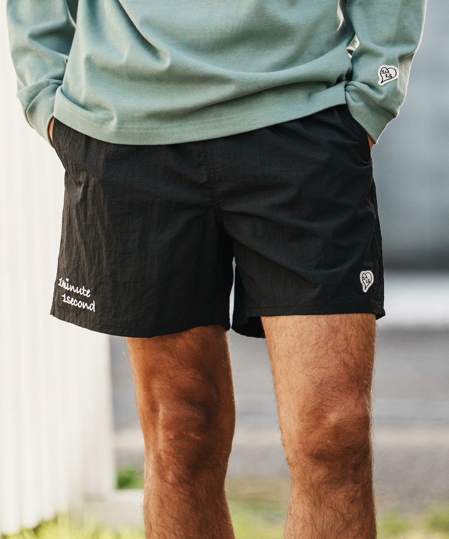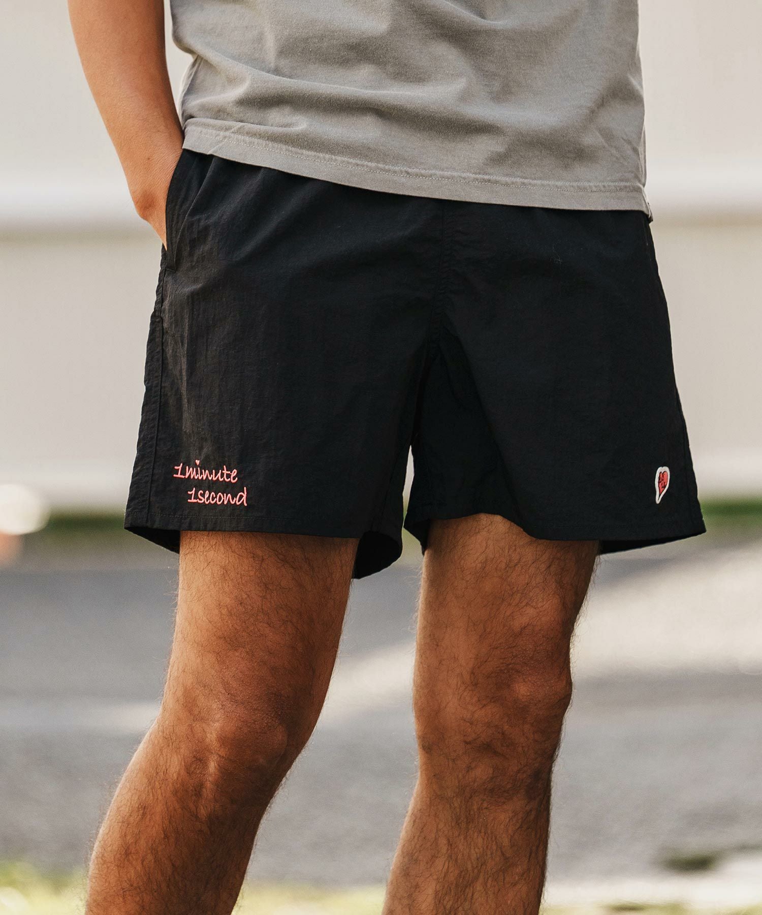 1minute 1second 【1minute 1second(ワンミニットワンセカンド)】cursive embroidery nylon shorts ショートパンツ(1M26H240)