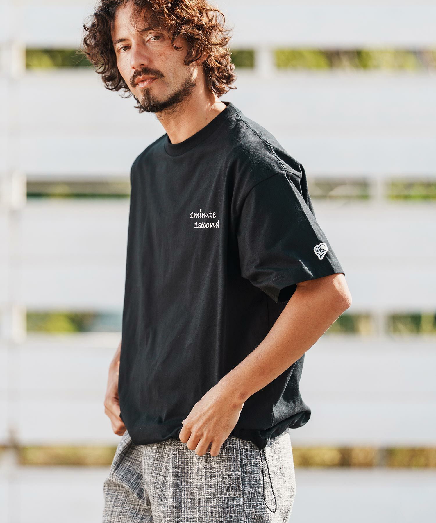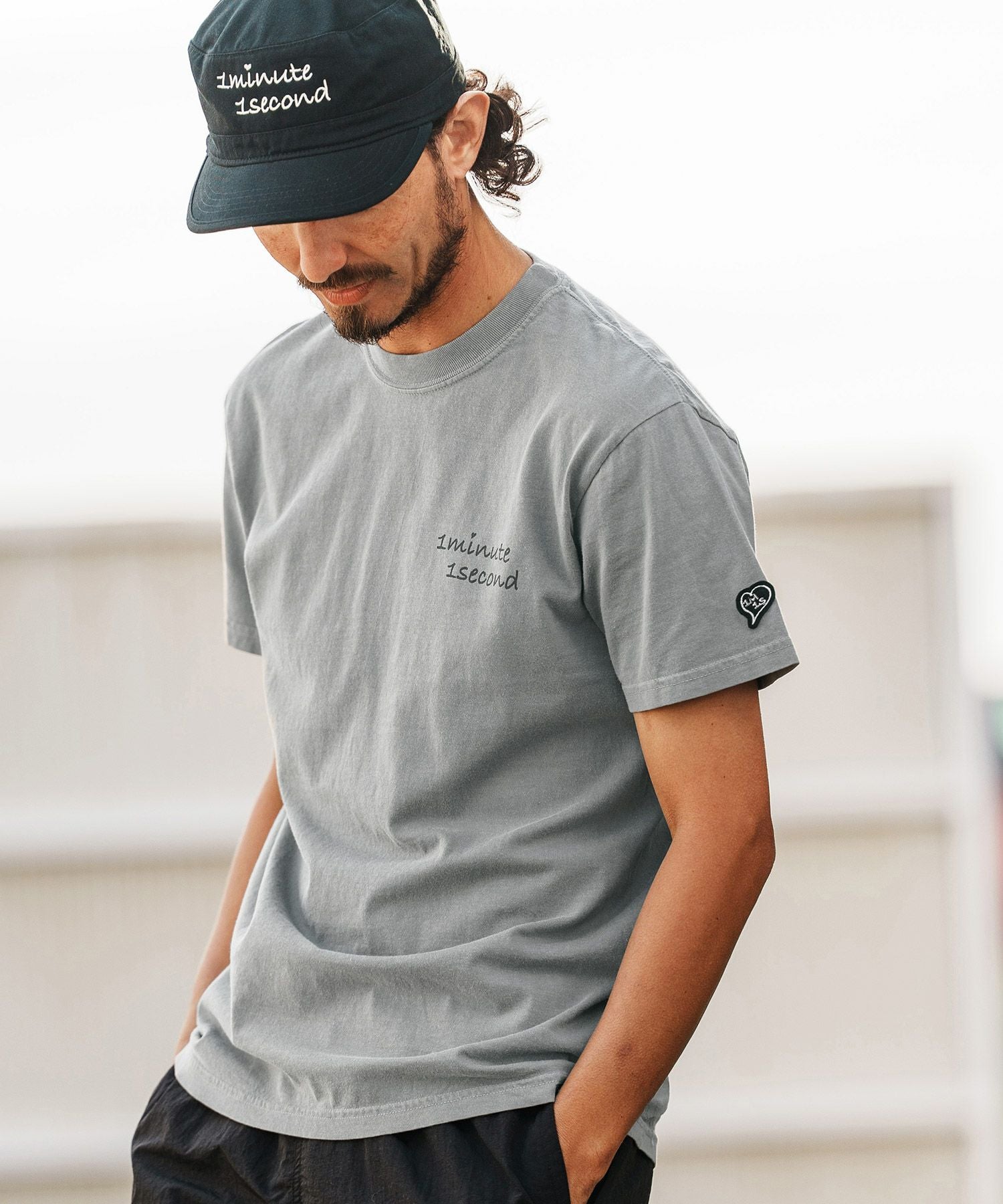 1minute 1second 【一部サイズカラー予約販売3月下旬~4月上旬入荷】【1minute 1second(ワンミニットワンセカンド)】10oz t-shirt with heart patch Tシャツ(1M26H260)