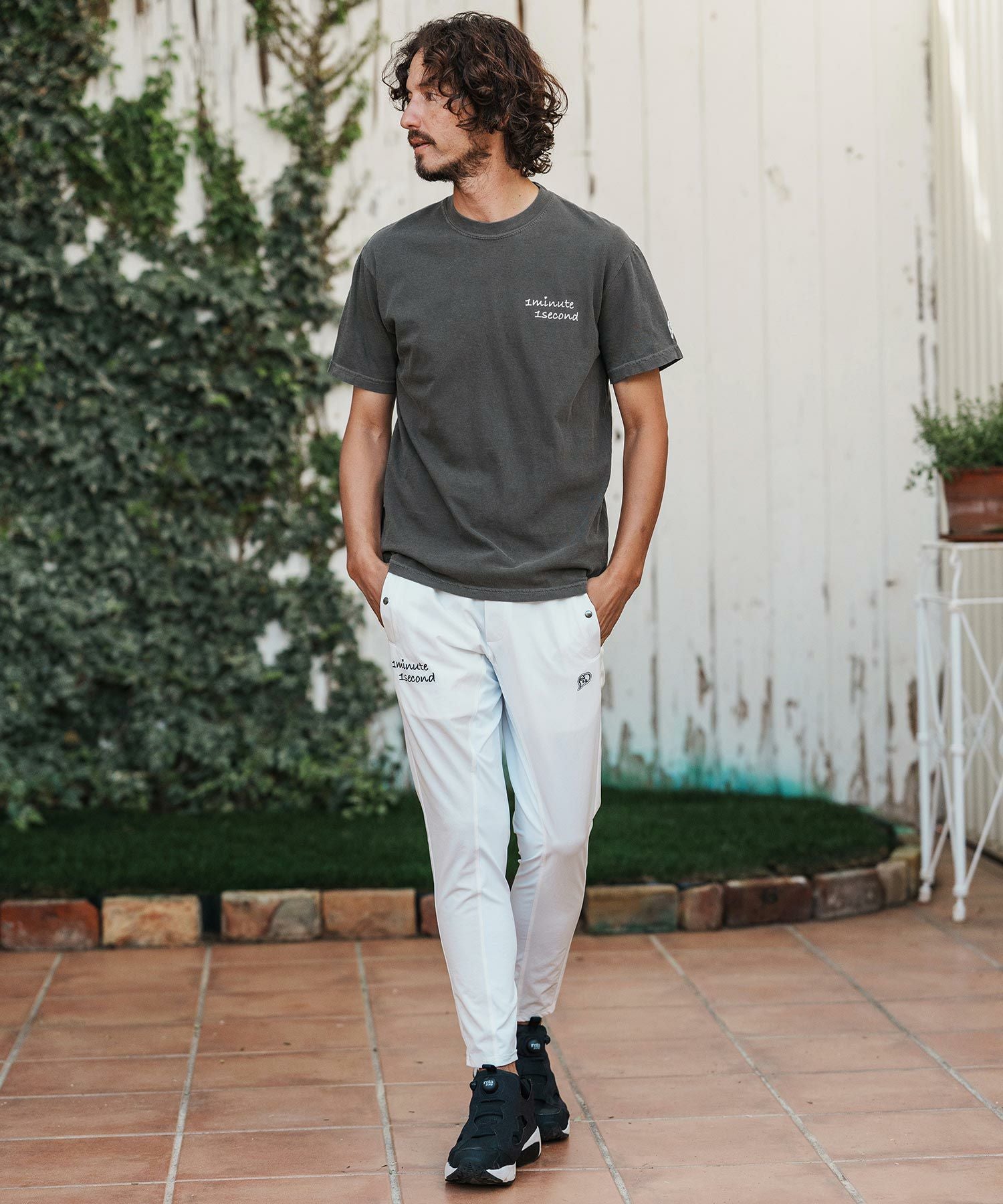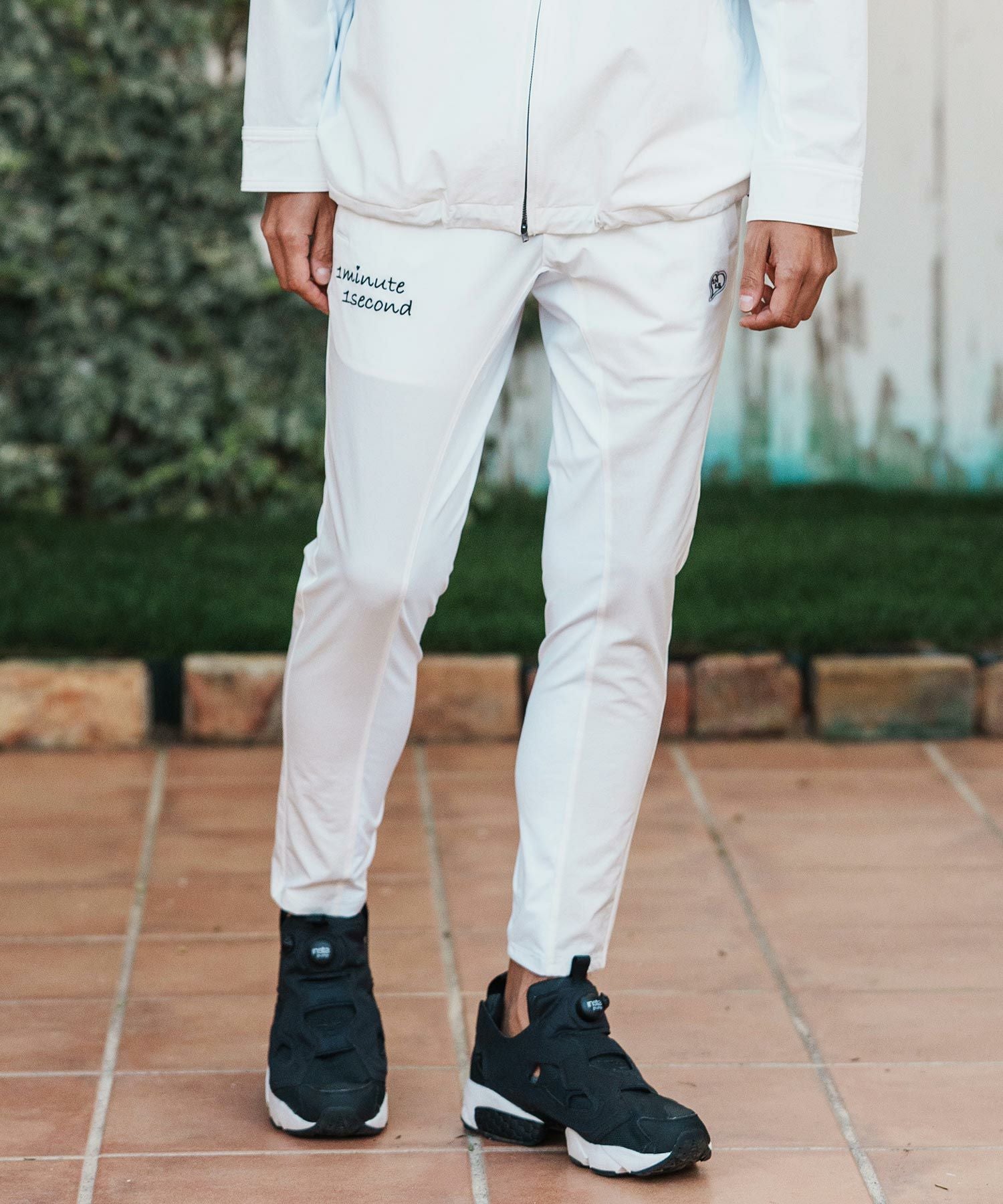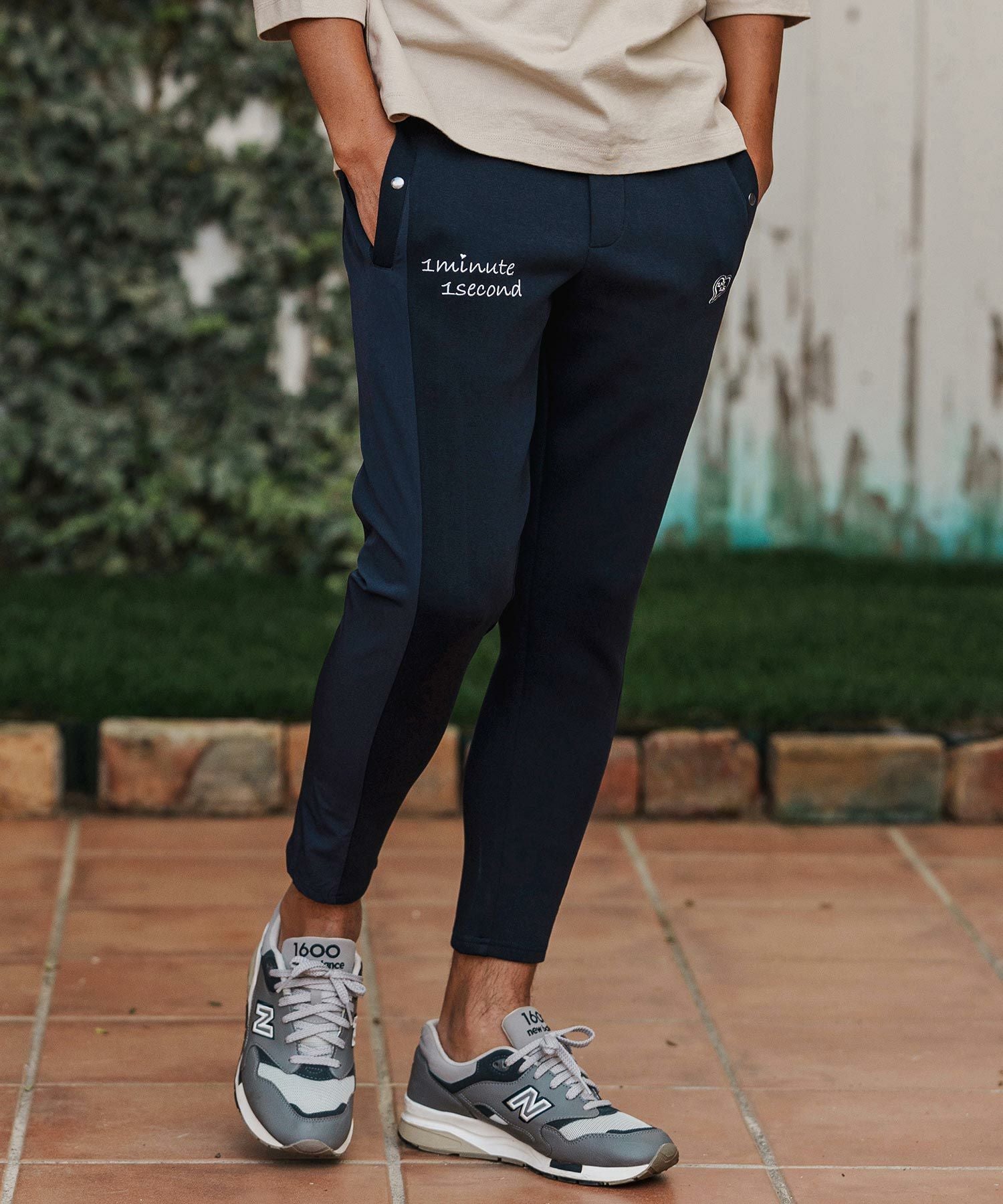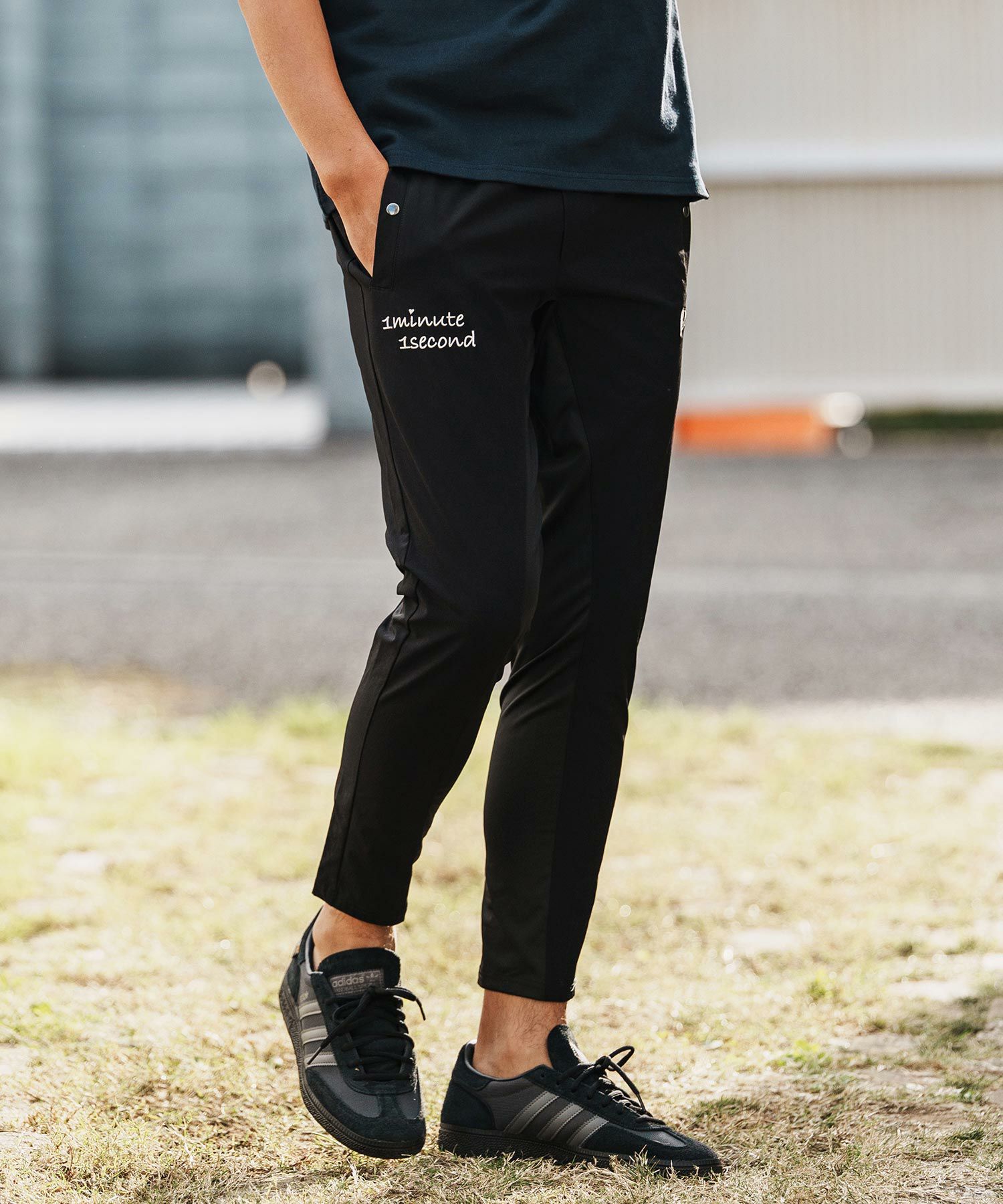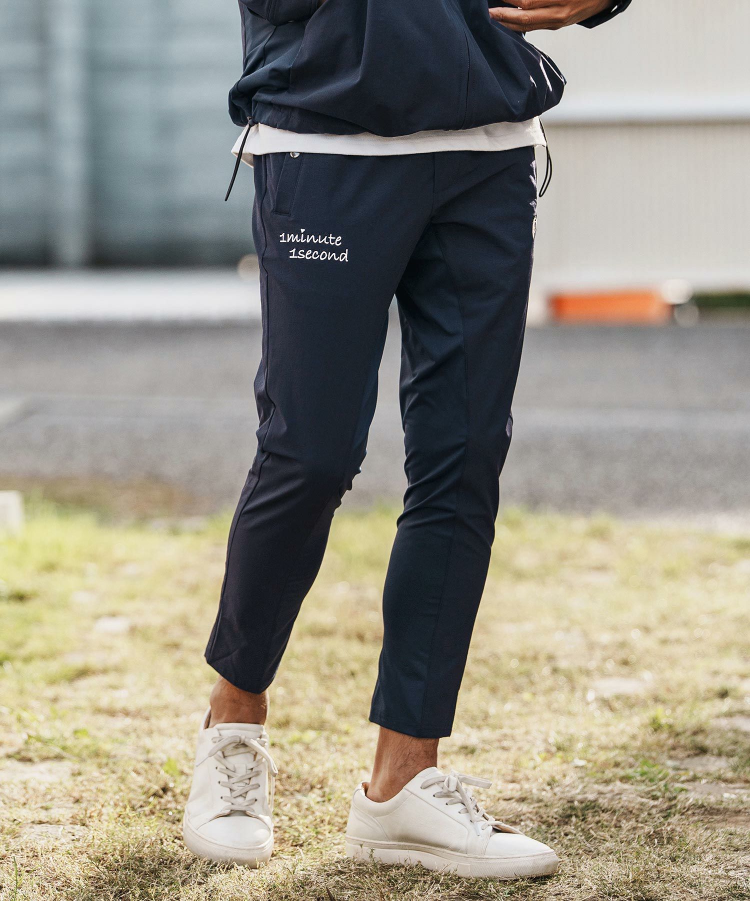 1minute 1second 【1minute 1second(ワンミニットワンセカンド)】cursive embroidery nylon jersey pants イージーパンツ(1M26H030)