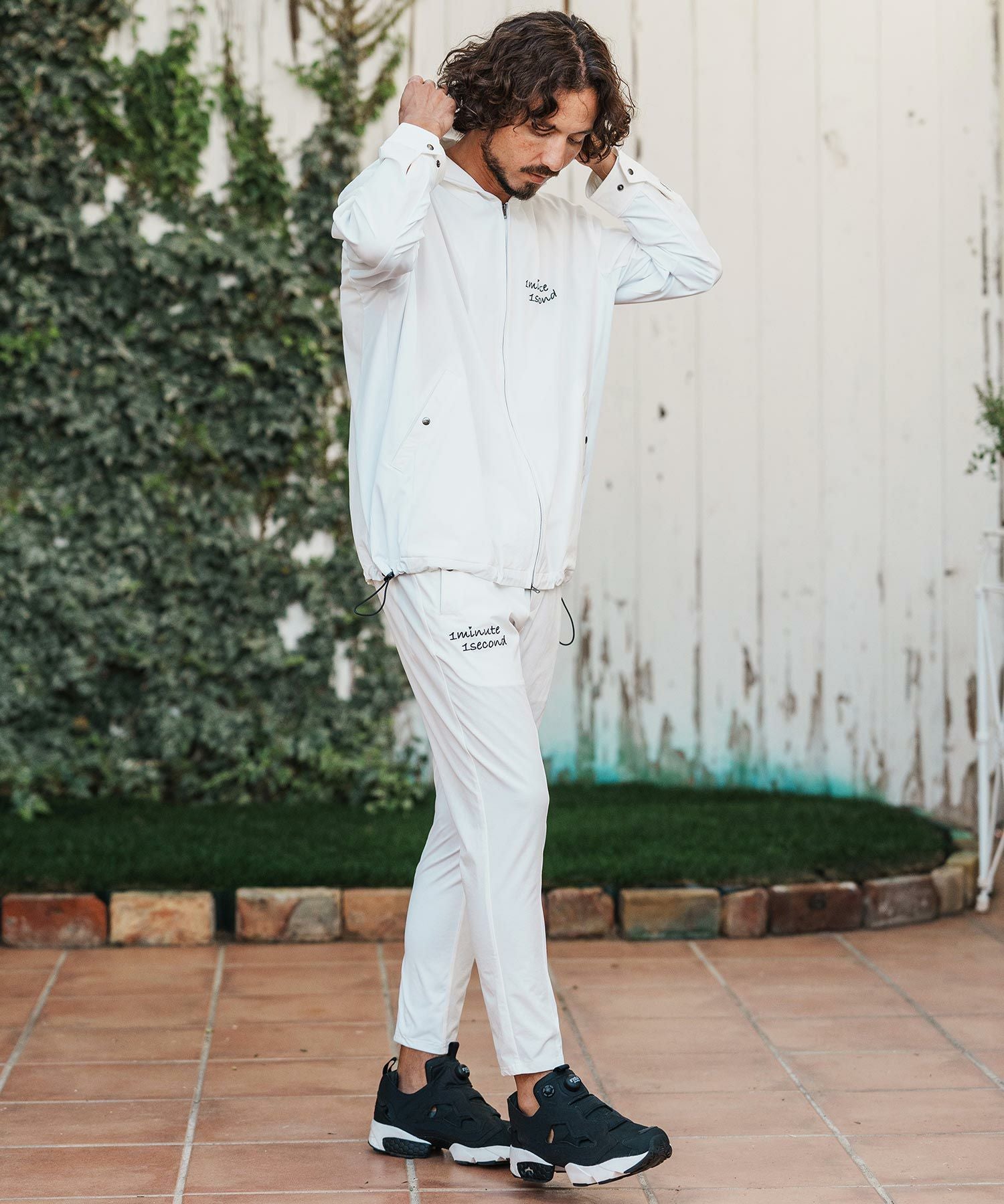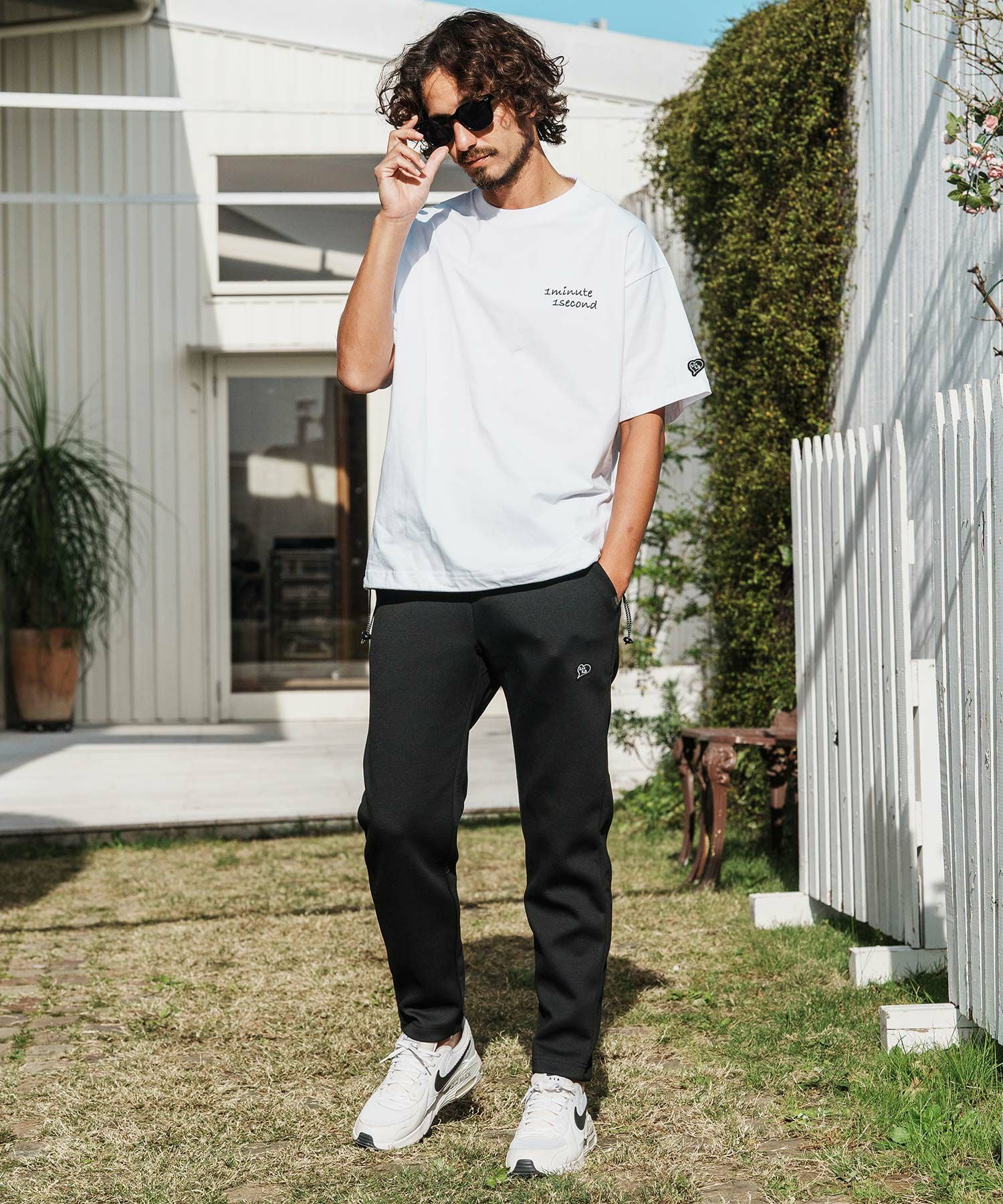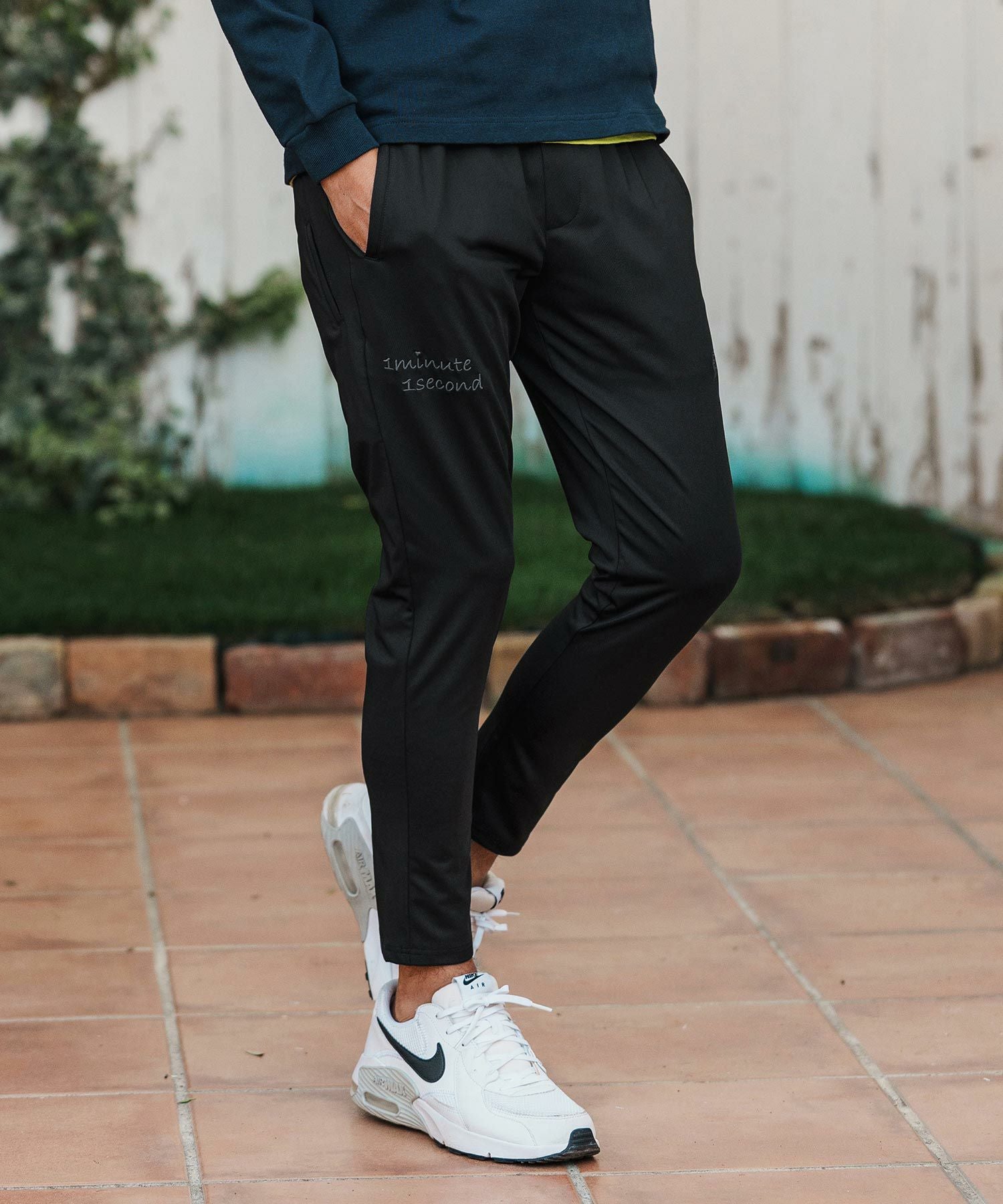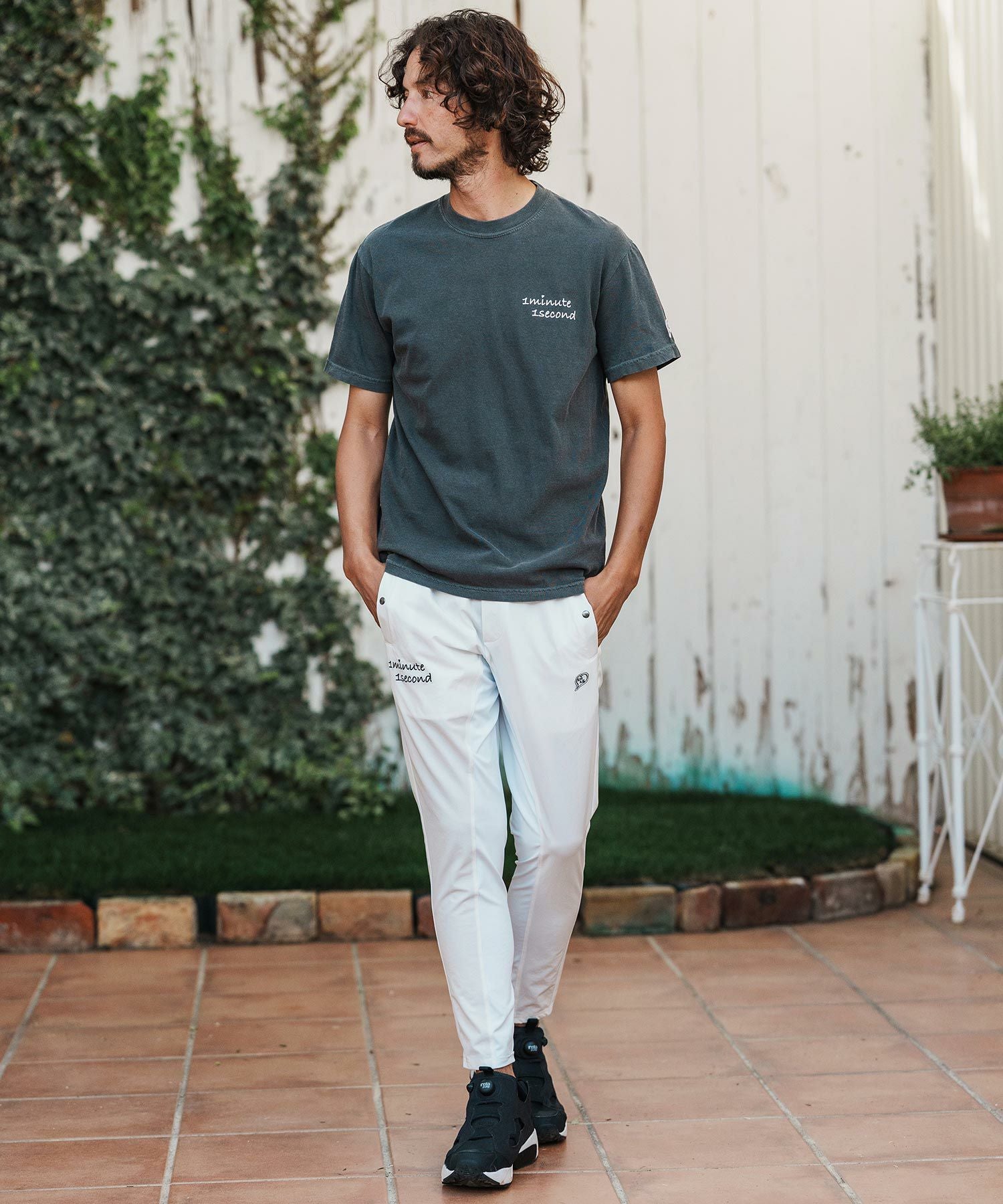 1minute 1second 【1minute 1second(ワンミニットワンセカンド)】cursive embroidery nylon jersey pants イージーパンツ(1M26H030)