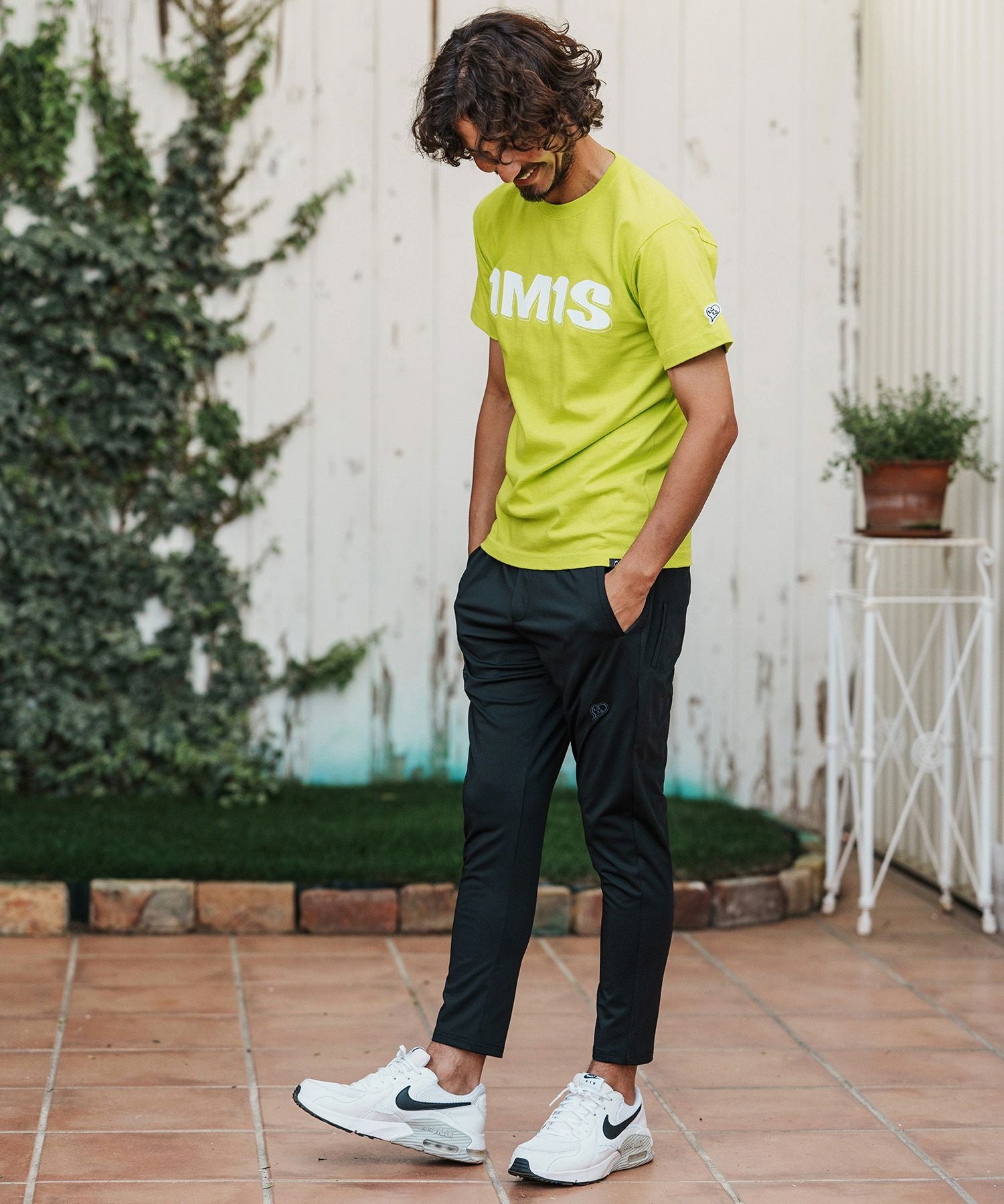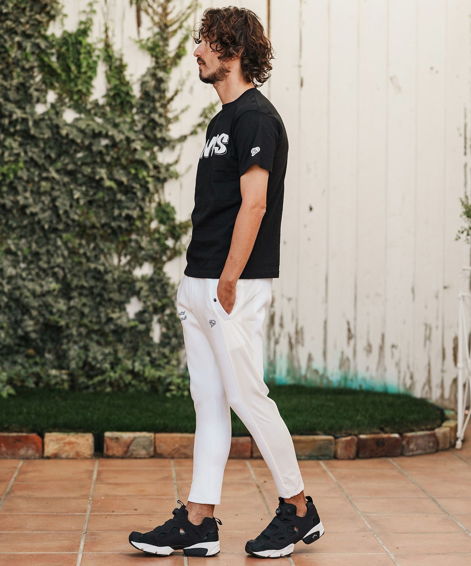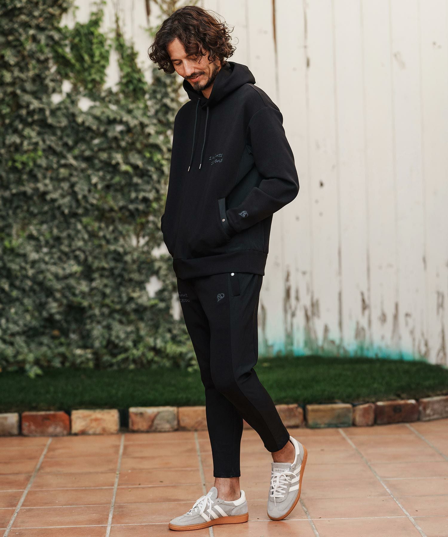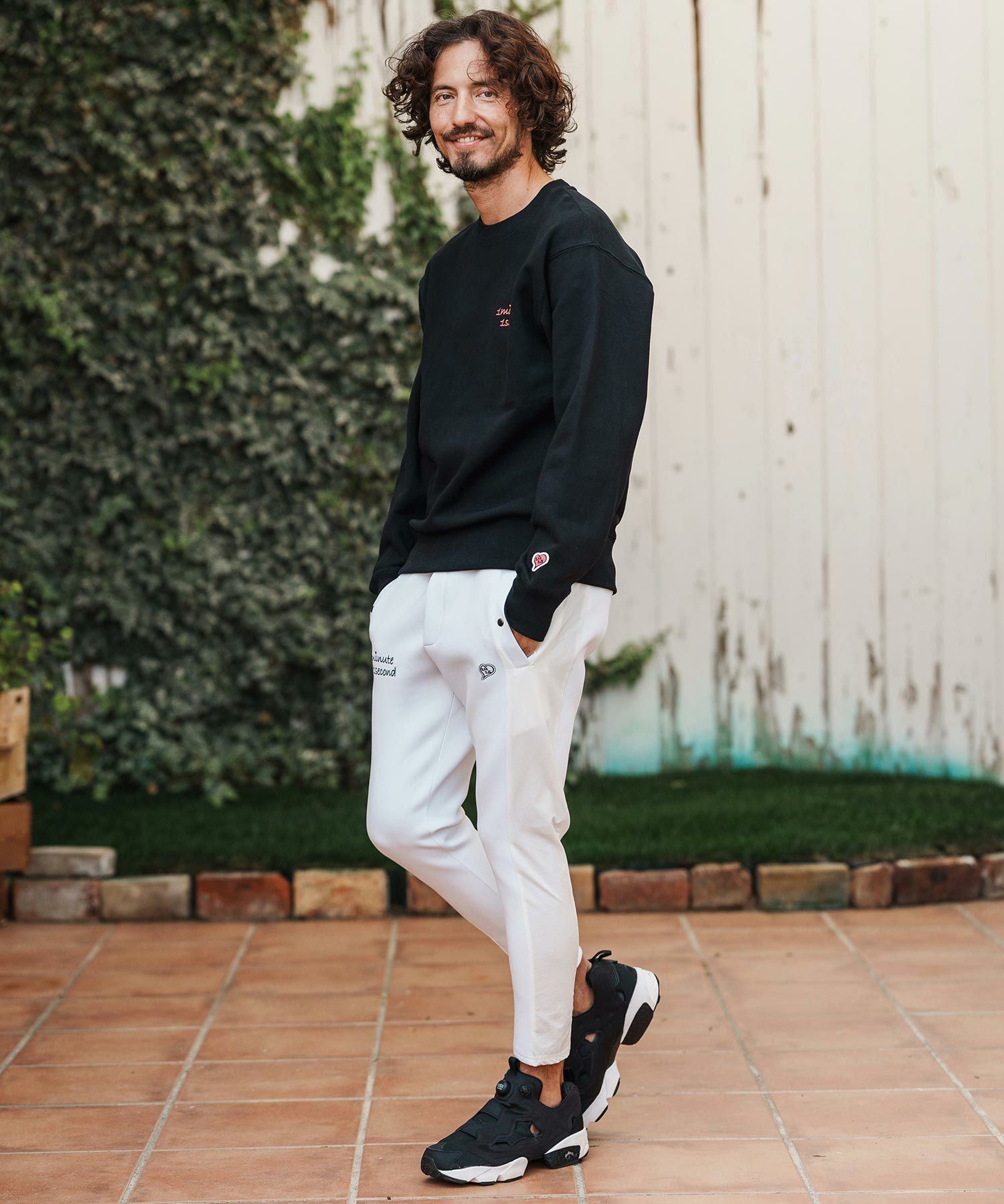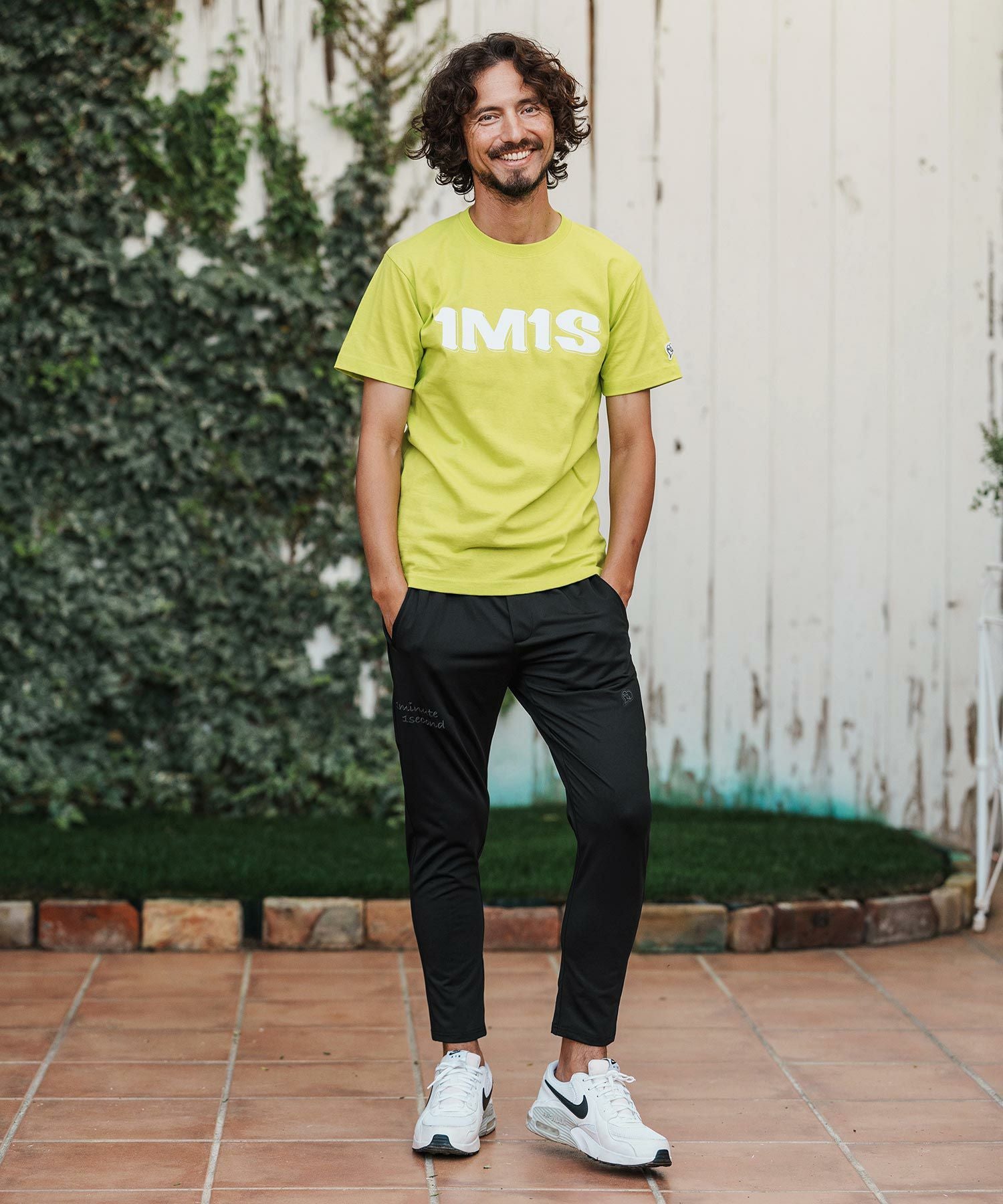 1minute 1second 【1minute 1second(ワンミニットワンセカンド)】cursive embroidery nylon jersey pants イージーパンツ(1M26H030)