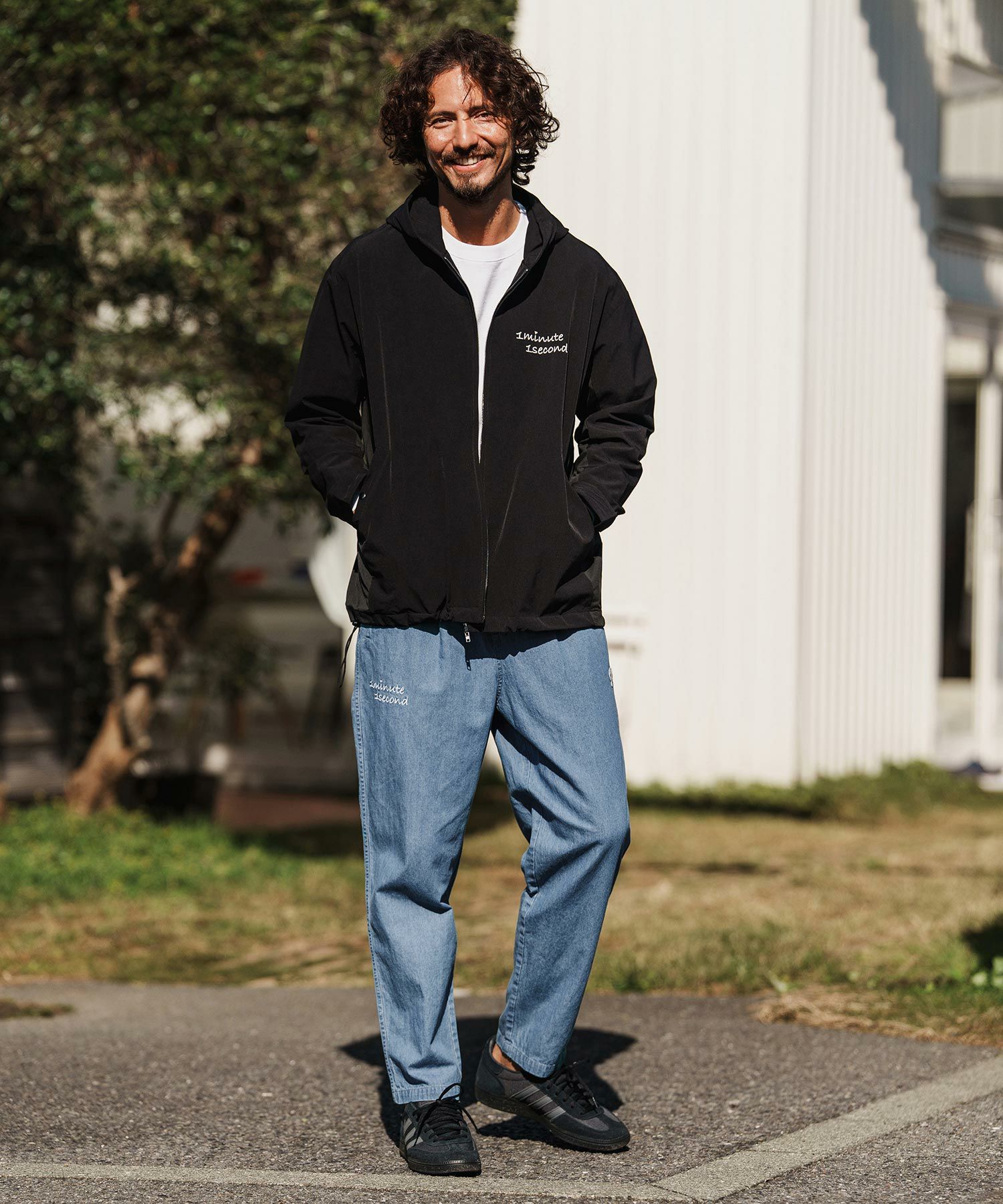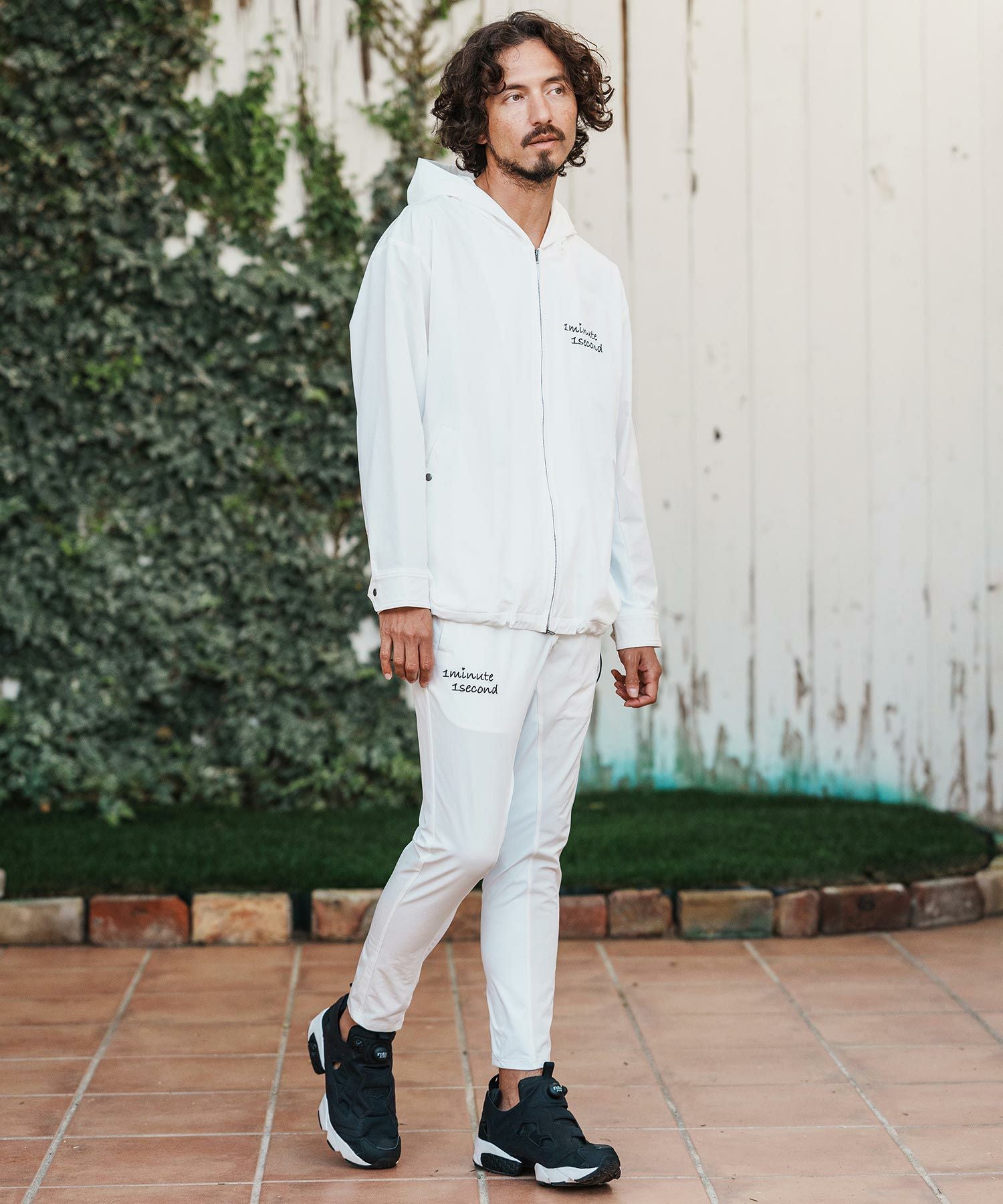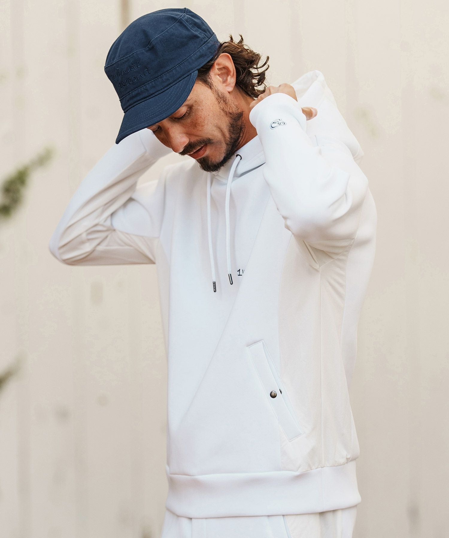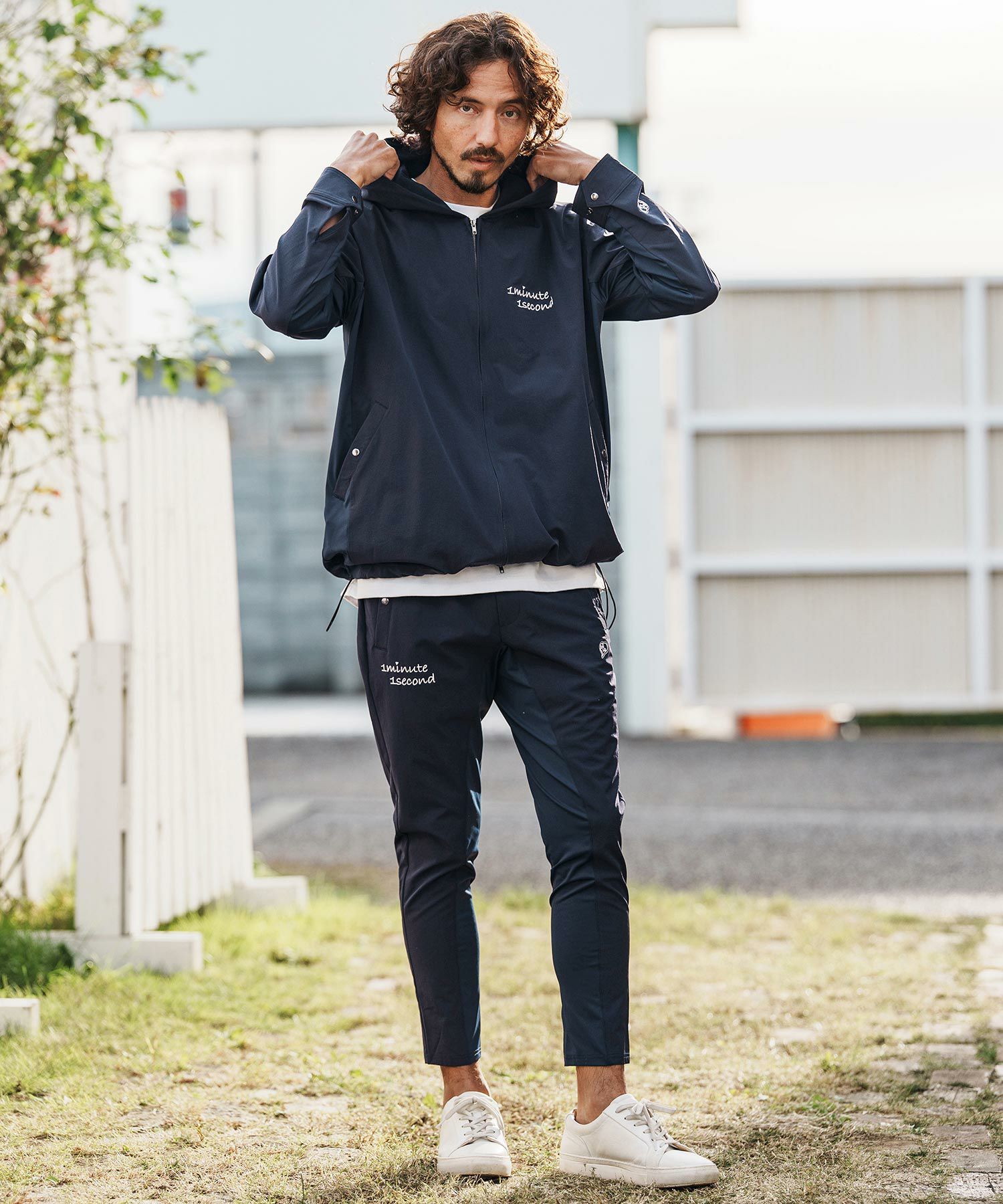 1minute 1second 【1minute 1second(ワンミニットワンセカンド)】cursive embroidery nylon jersey hoodie パーカー(1M26H010)