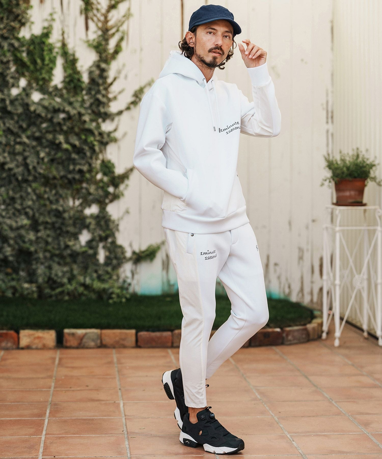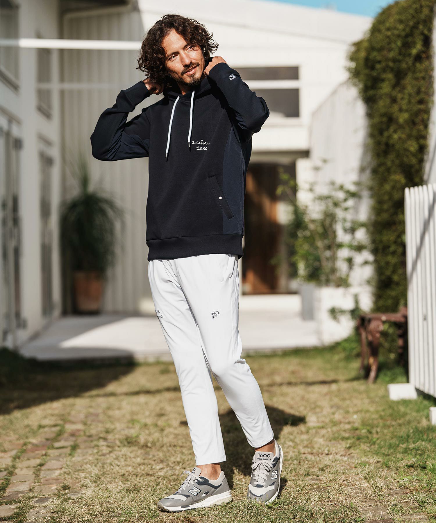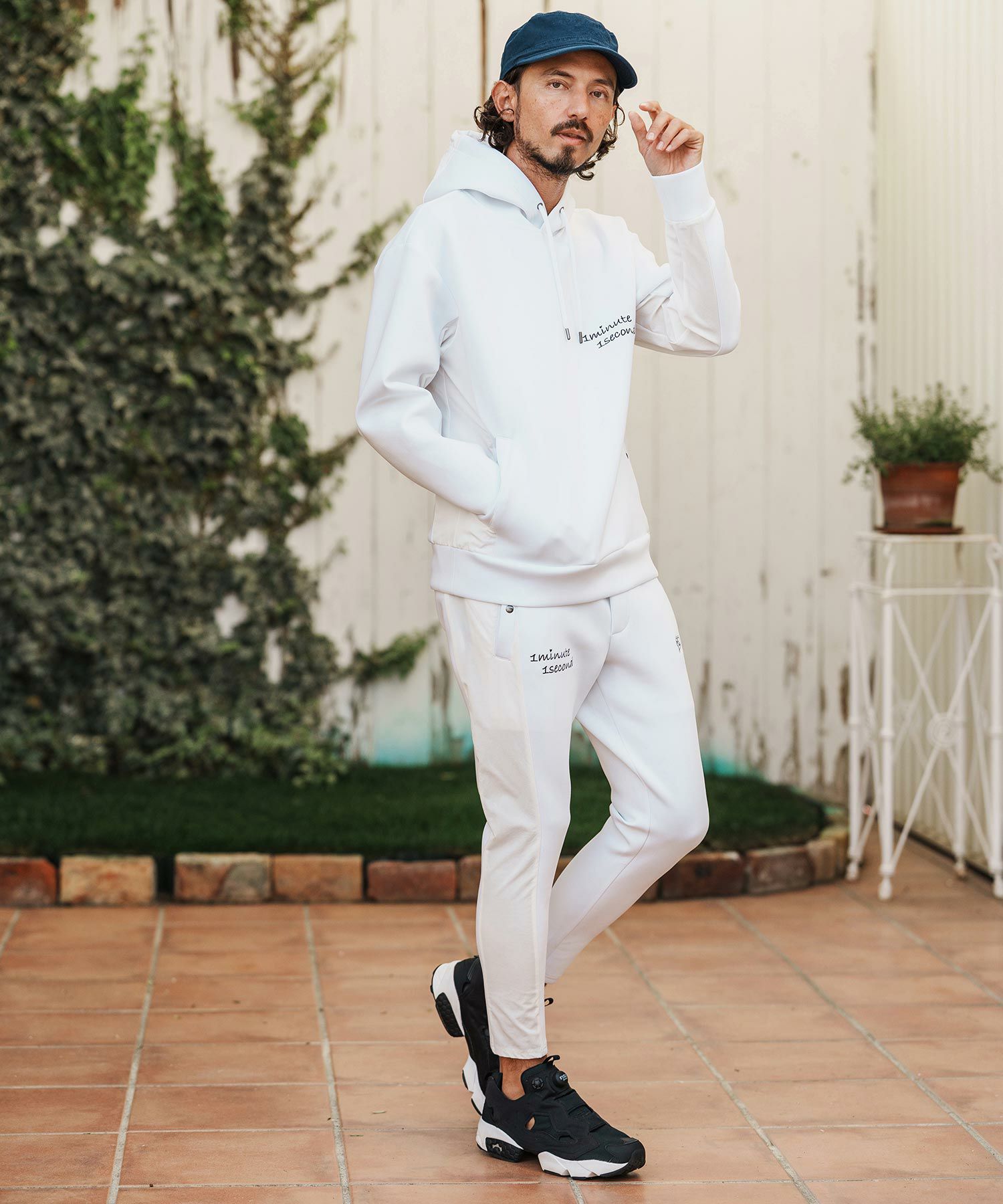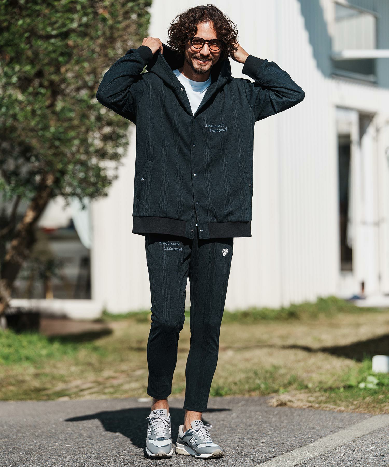 1minute 1second 【1minute 1second(ワンミニットワンセカンド)】cursive embroidery nylon jersey hoodie パーカー(1M26H010)