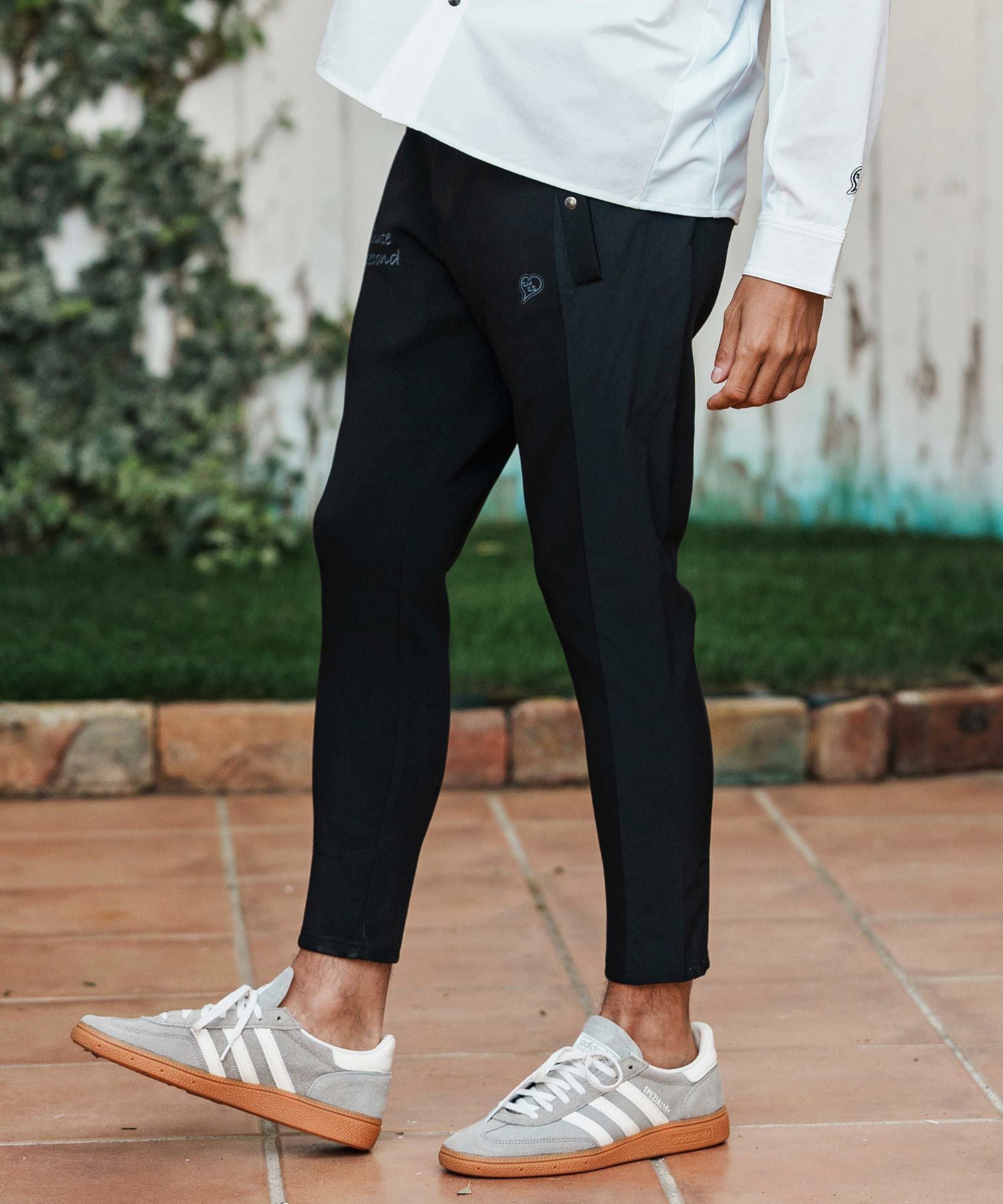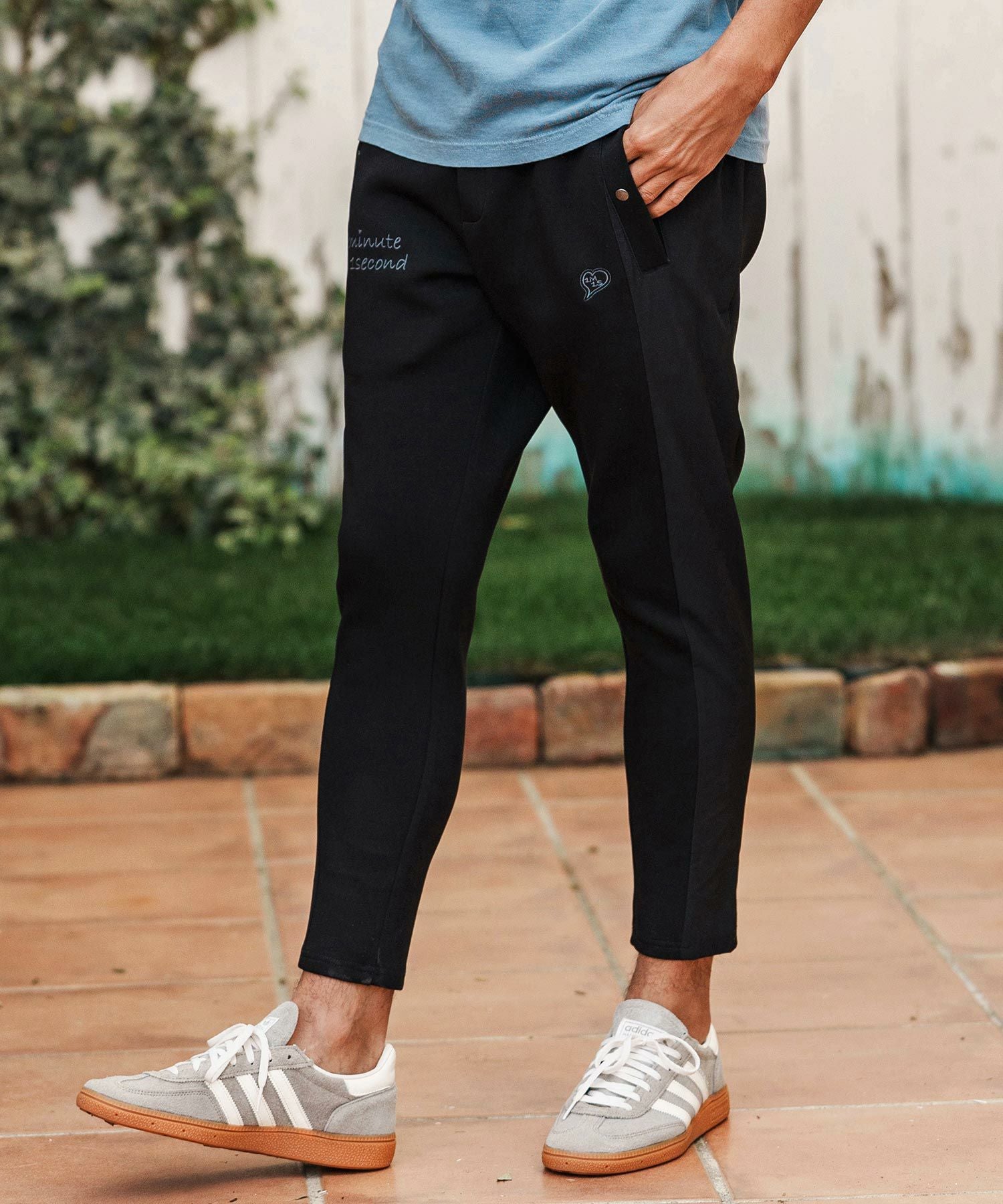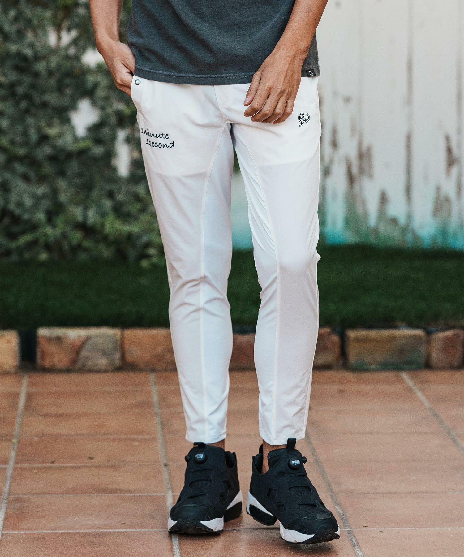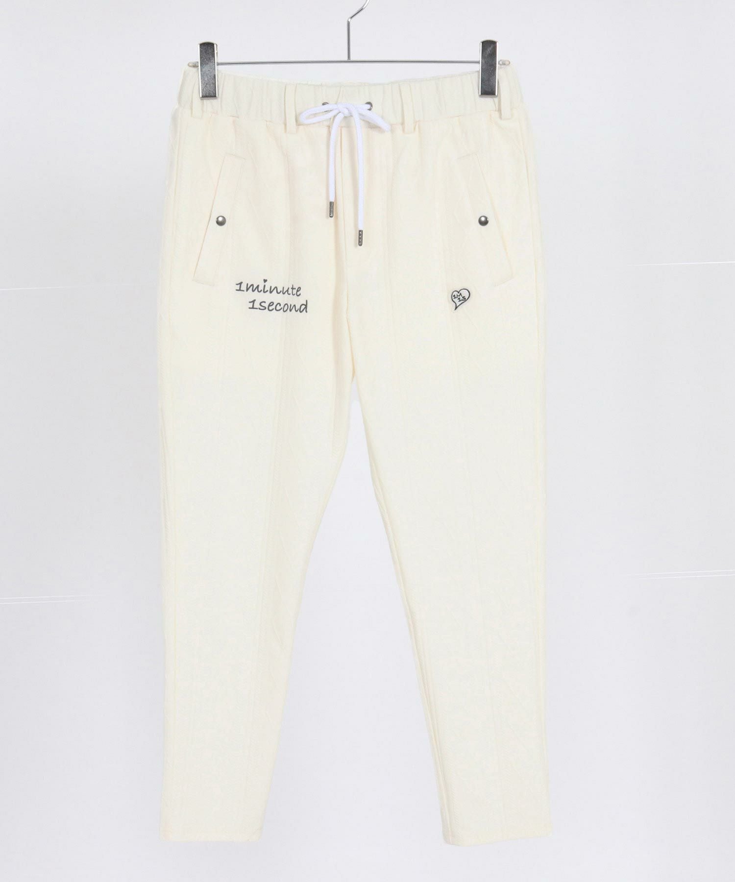 1minute 1second 【1minute 1second(ワンミニットワンセカンド)】heart embroidery high stretch fabric pants イージーパンツ(1M26H070)