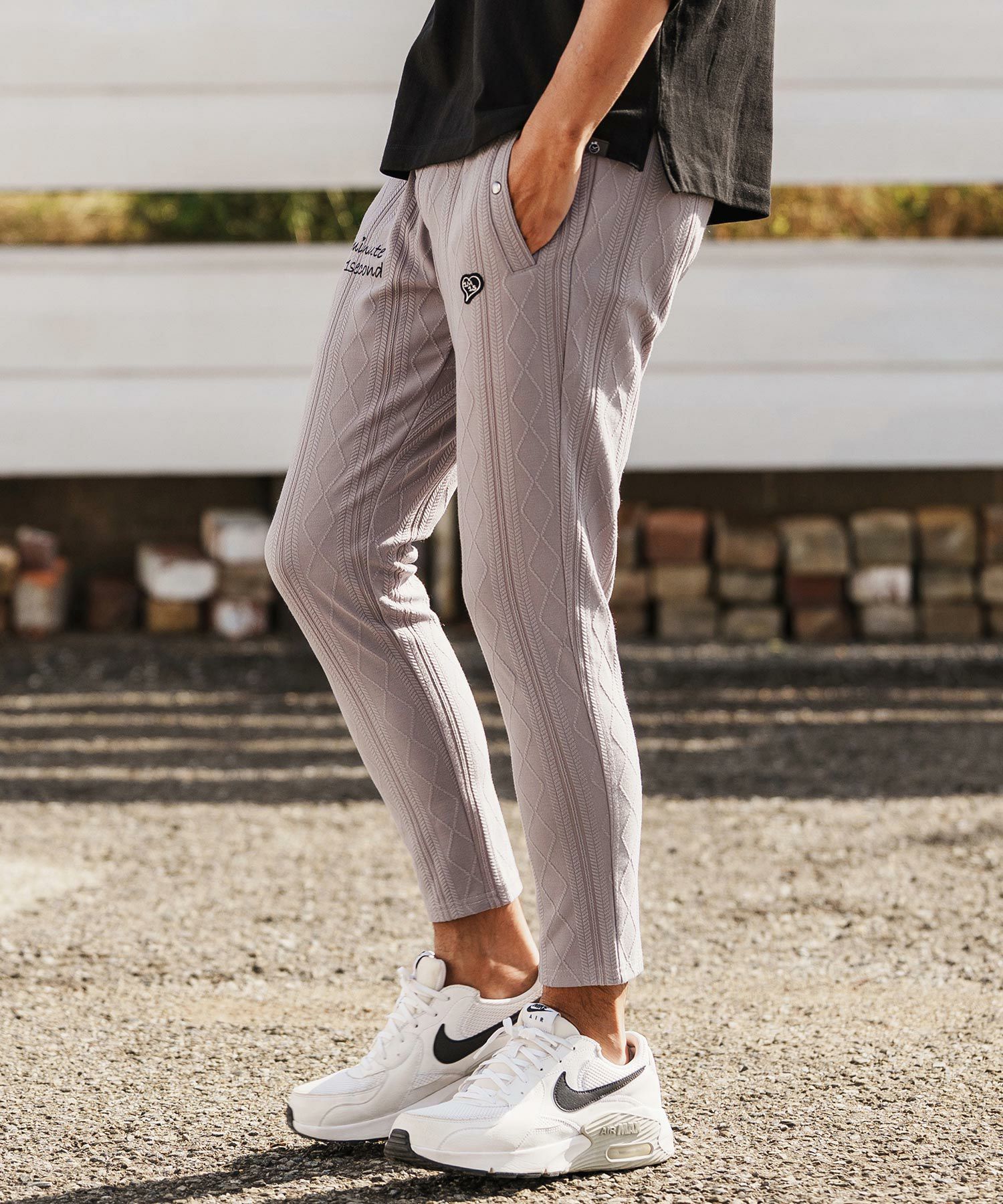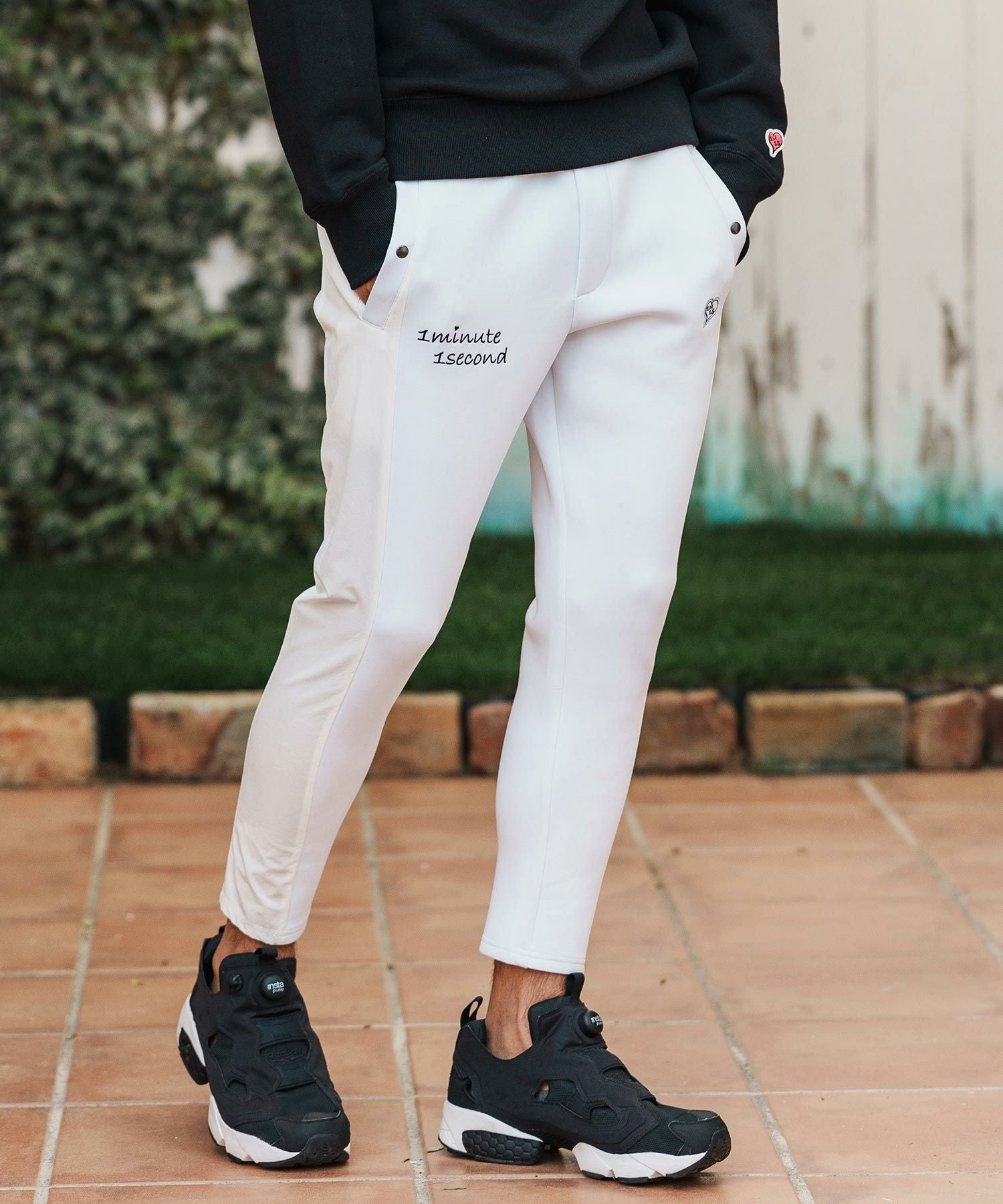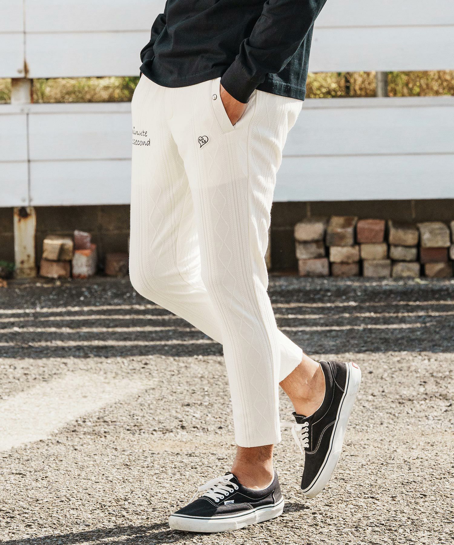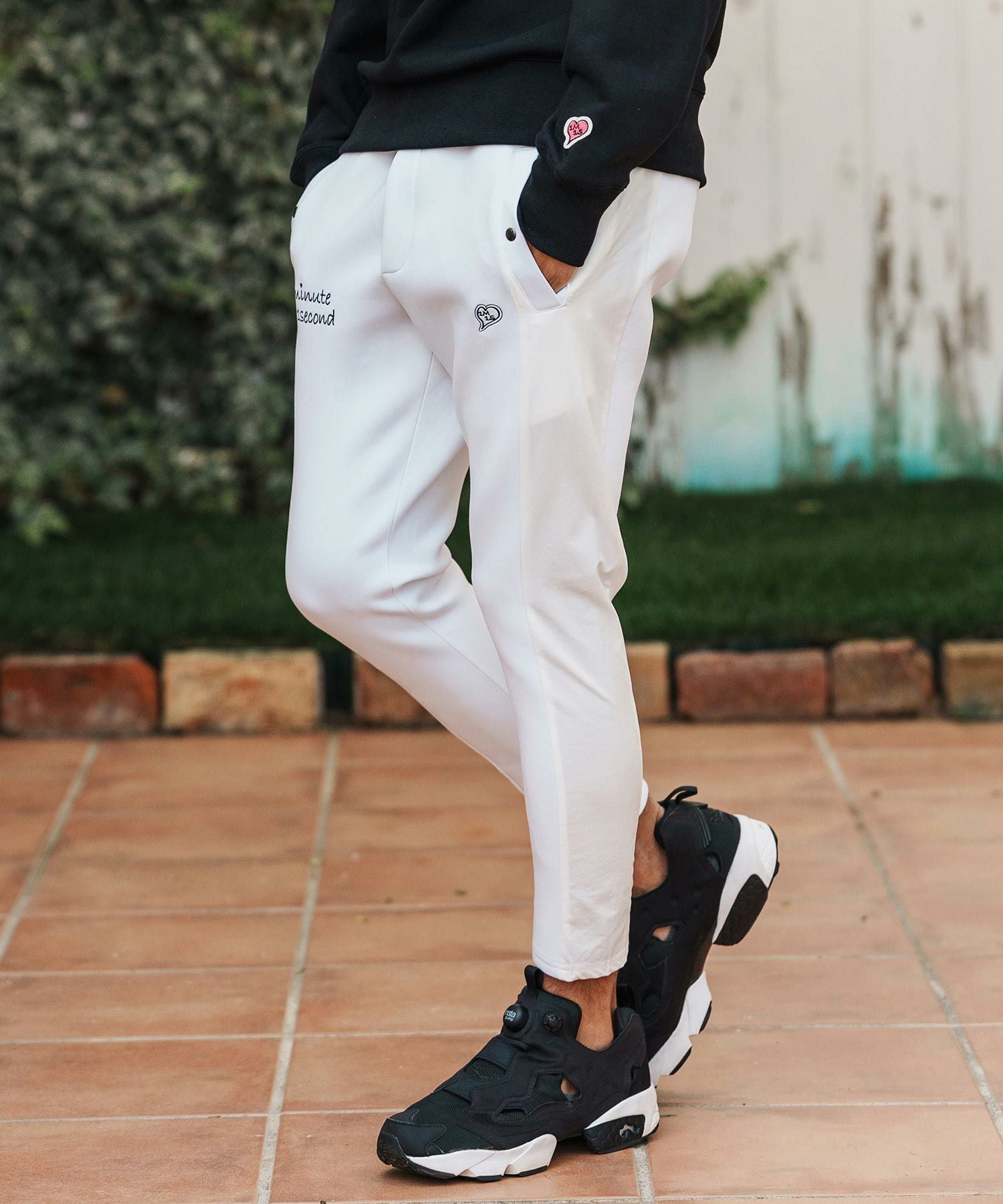 1minute 1second 【1minute 1second(ワンミニットワンセカンド)】heart embroidery high stretch fabric pants イージーパンツ(1M26H070)