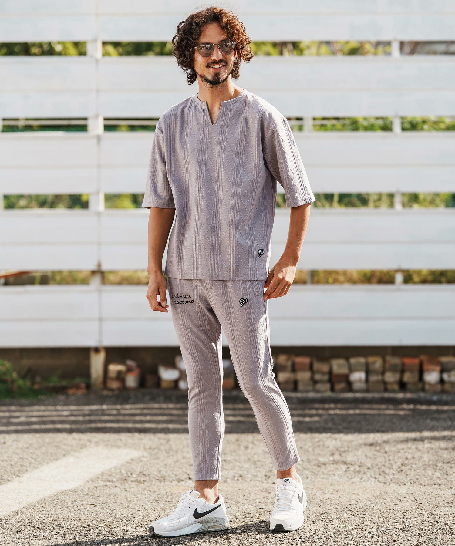 1minute 1second 【1minute 1second(ワンミニットワンセカンド)】diamond shaped jacquard knit pants イージーパンツ(1M26H100)