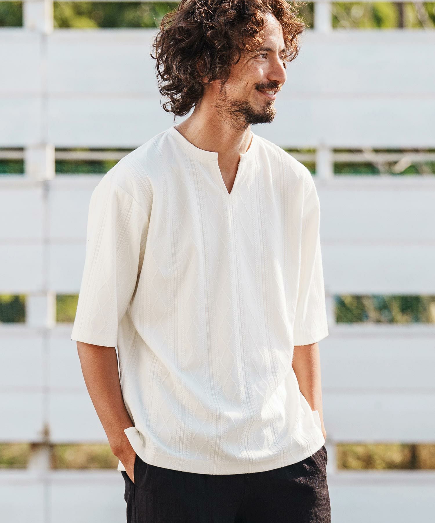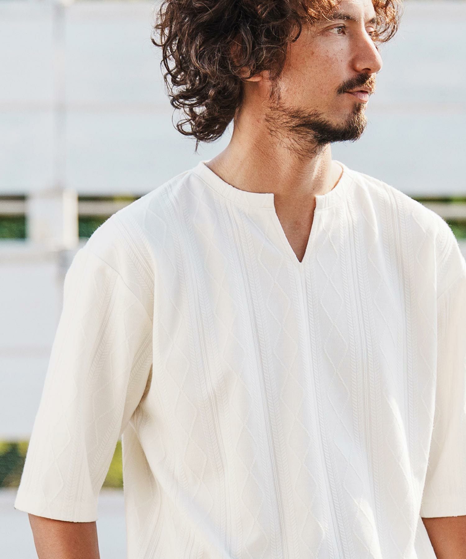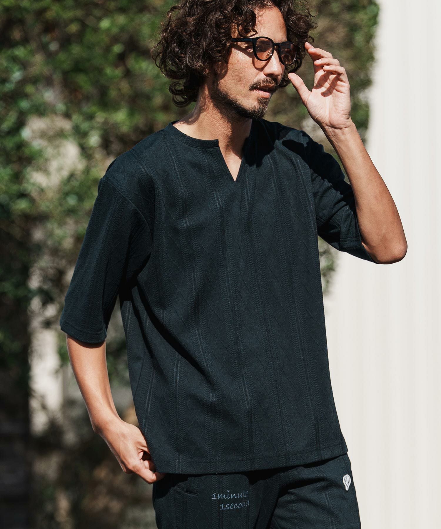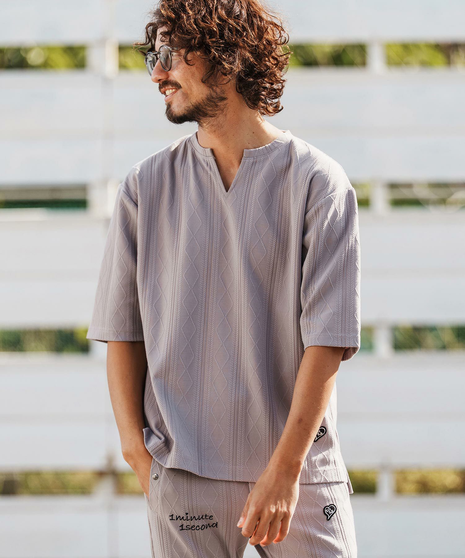 1minute 1second 【1minute 1second(ワンミニットワンセカンド)】diamond shaped jacquard half sleeve knit カットソー(1M26H090)