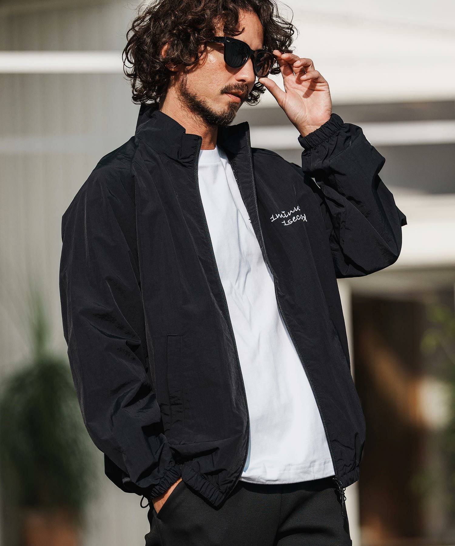 1minute 1second 【1minute 1second(ワンミニットワンセカンド)】cursive embroidery nylon zip blouson ブルゾン(1M26H230)