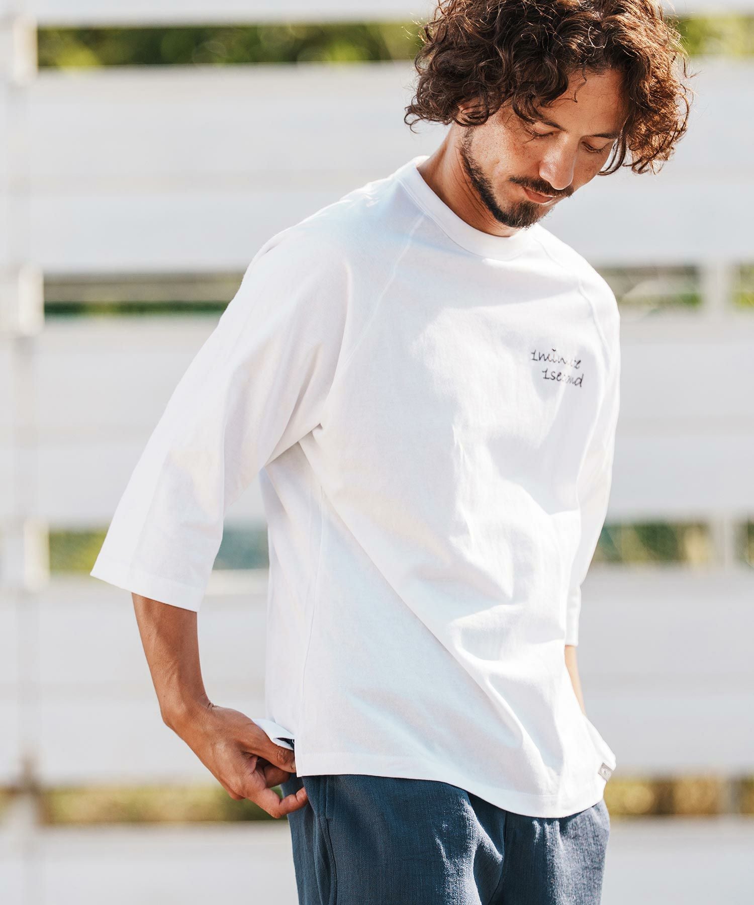 1minute 1second 【1minute 1second(ワンミニットワンセカンド)】6oz drawcord T-shirt with cursive print Tシャツ(1M26H280)