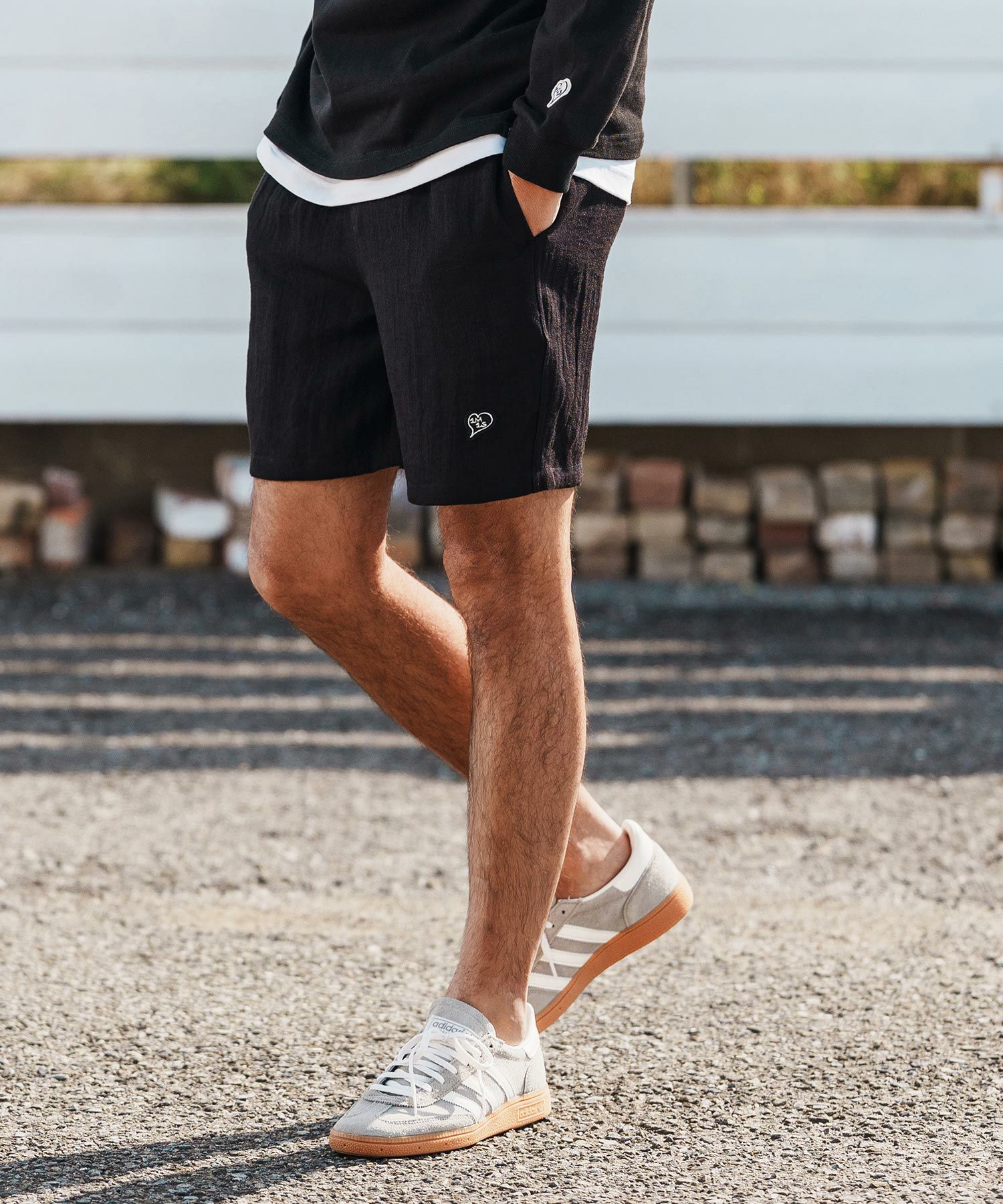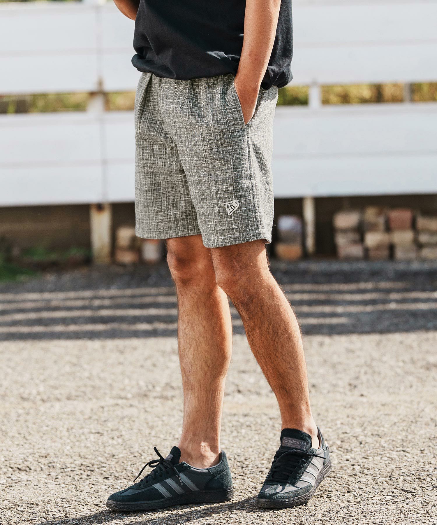 1minute 1second 【1minute 1second(ワンミニットワンセカンド)】heavy weight cut off shorts with heart patch カットオフショートパンツ(1M26H300)