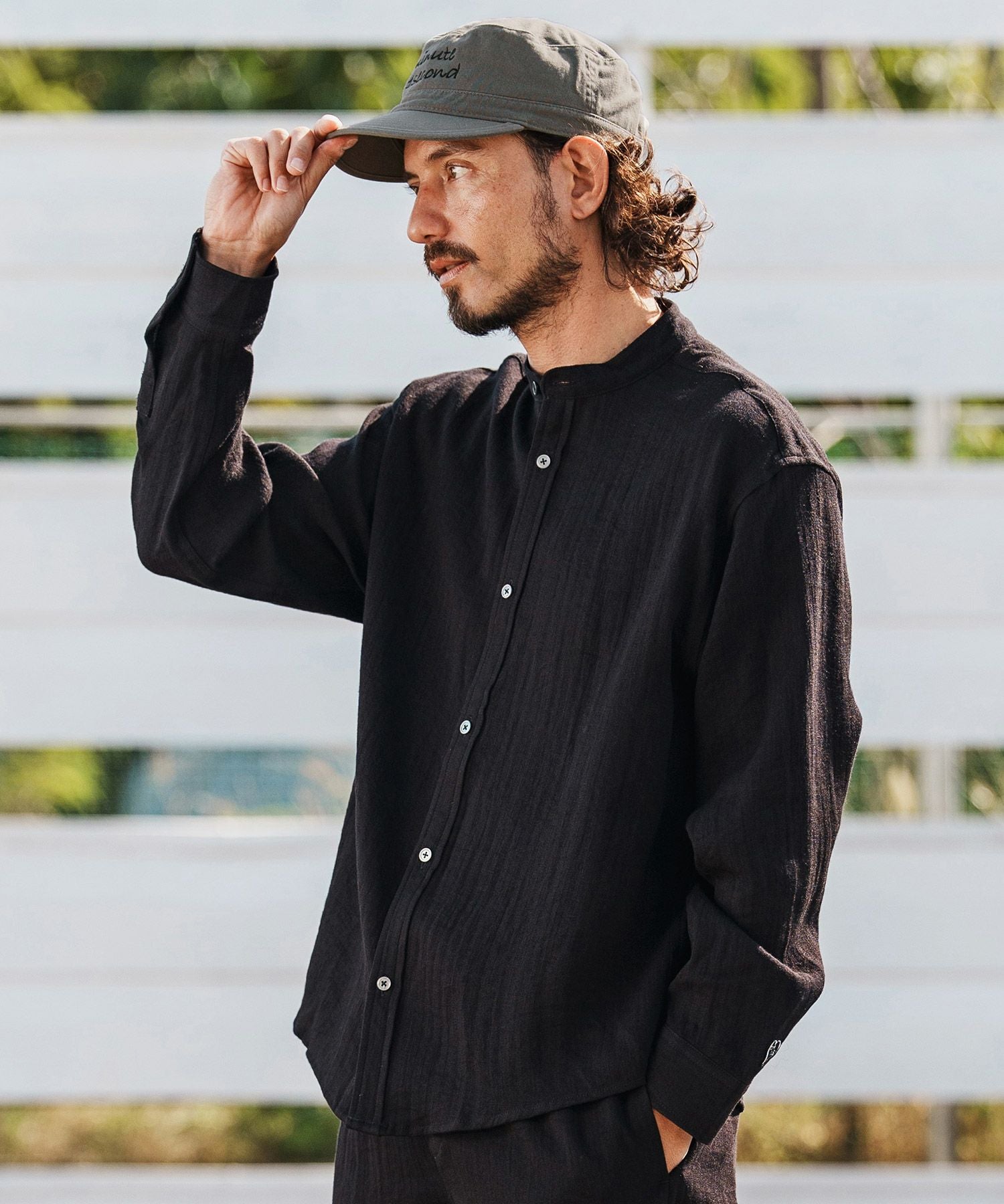 1minute 1second 【1minute 1second(ワンミニットワンセカンド)】long sleeve linen like shirt スタンドカラーシャツ(1M26H160)